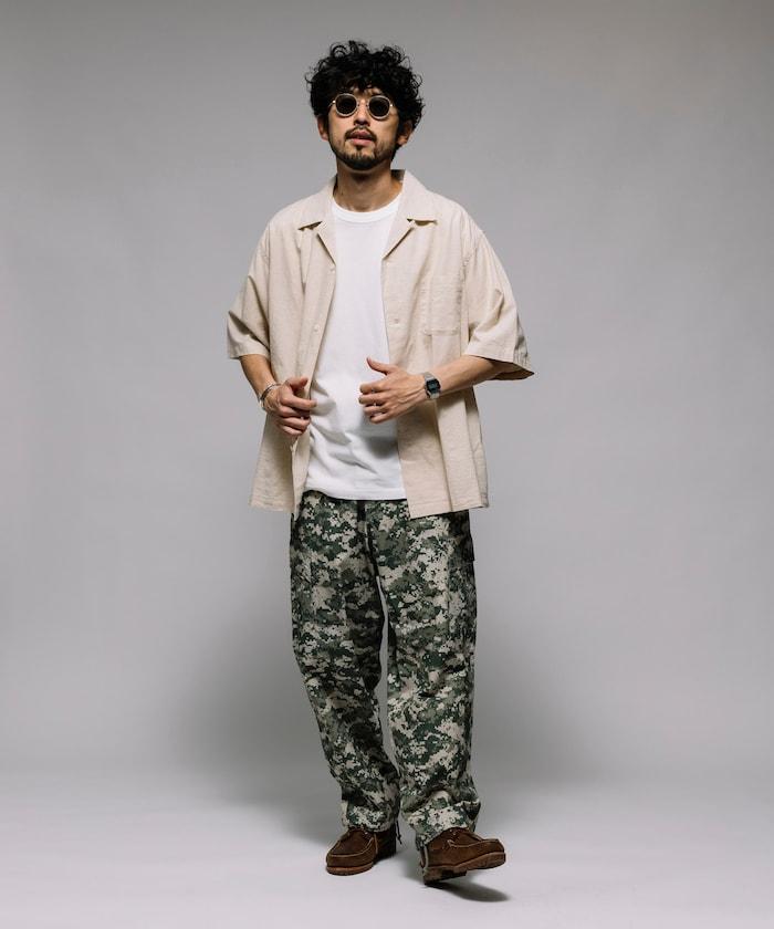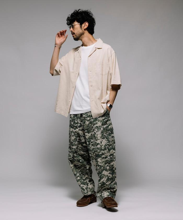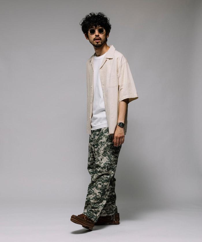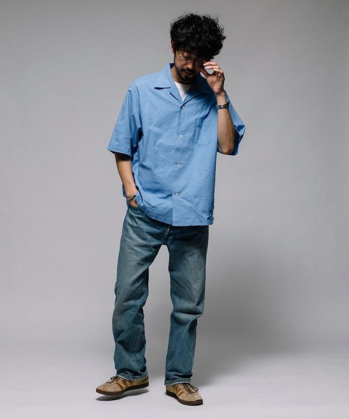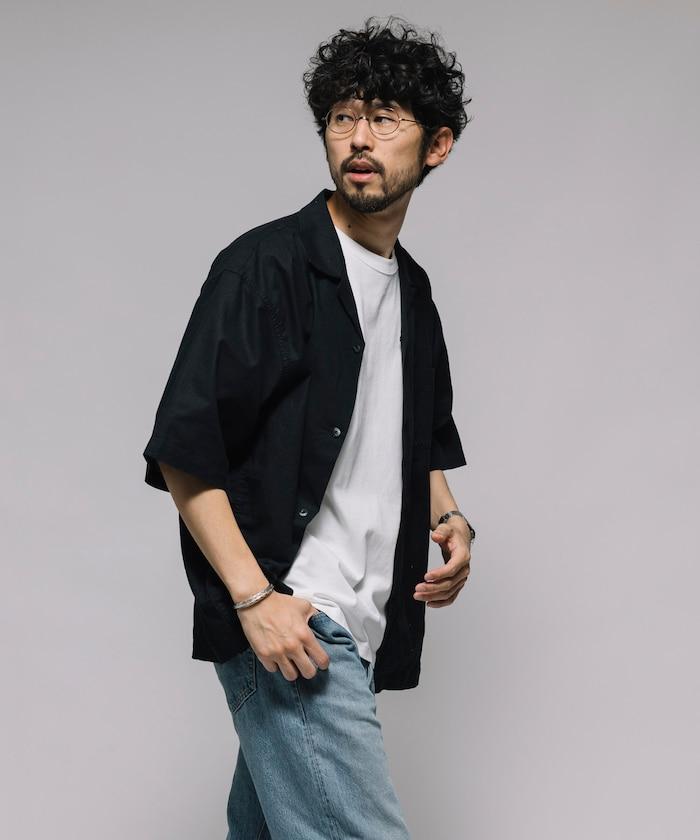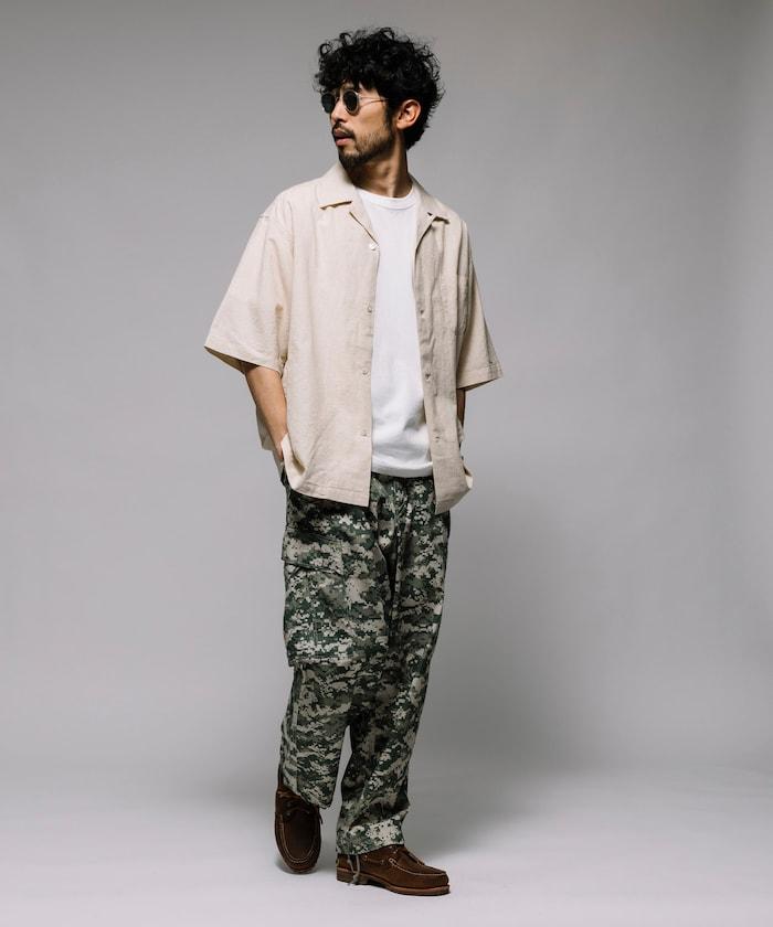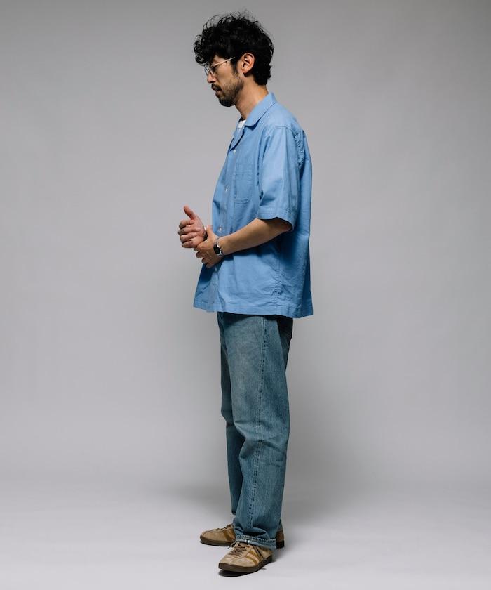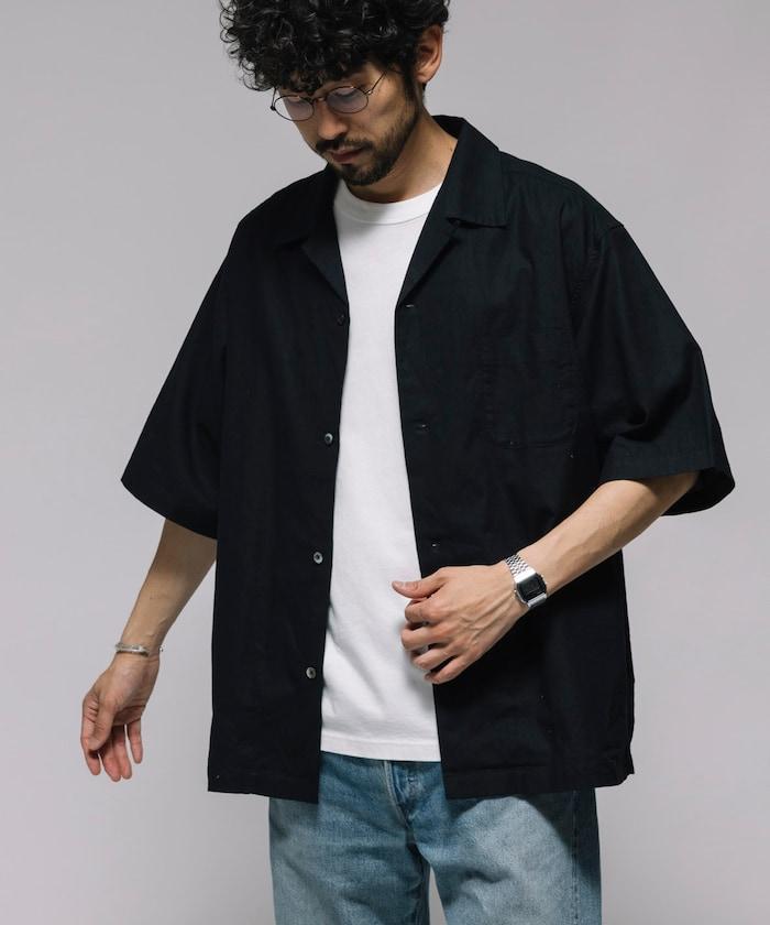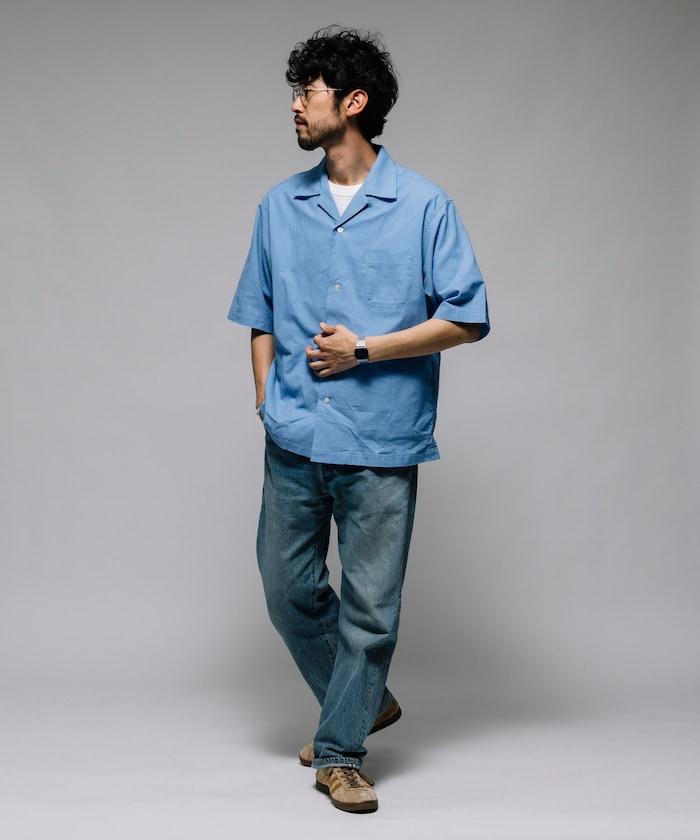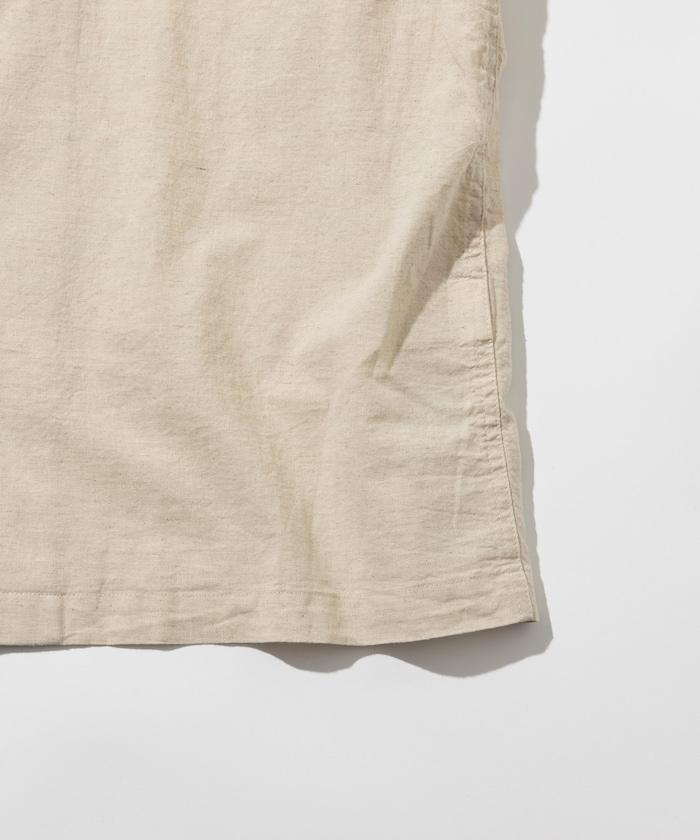 短袖開領襯衫由棉麻面料製成,手感涼爽乾爽。