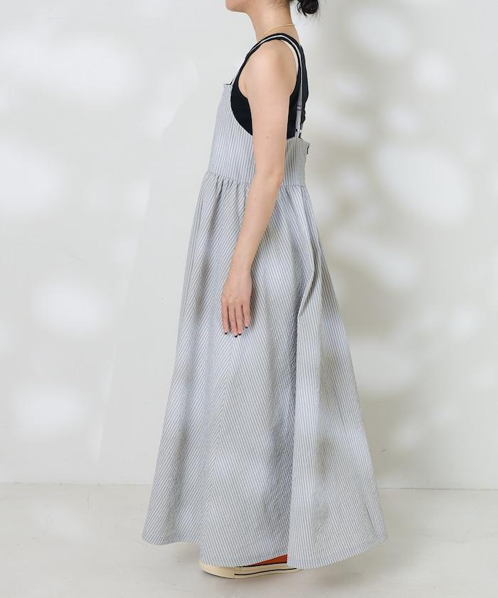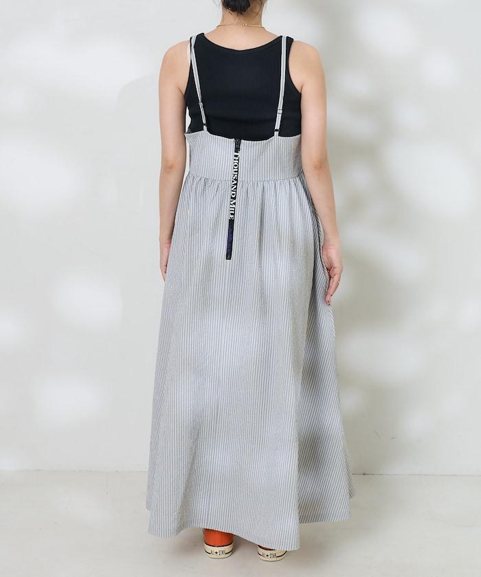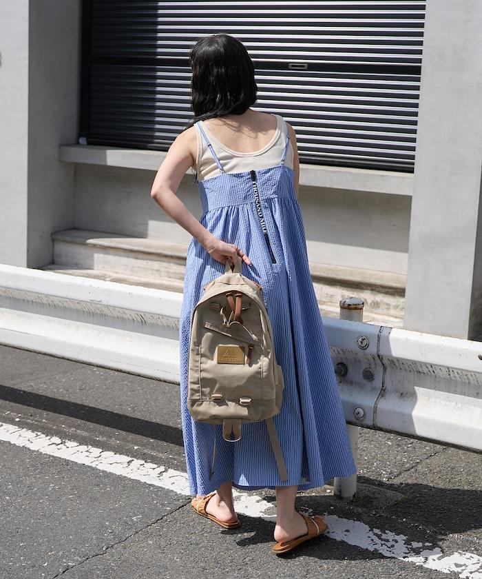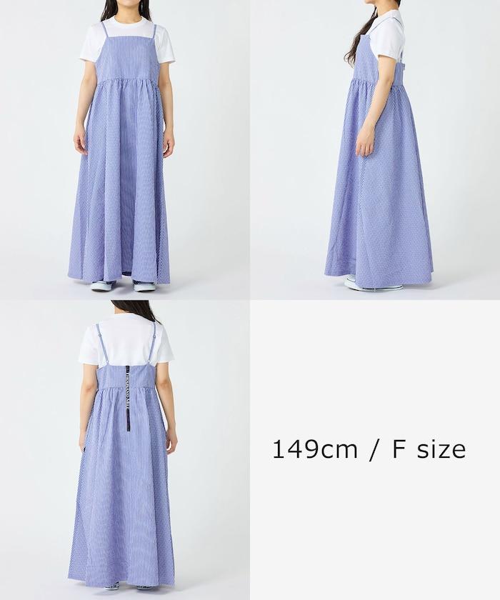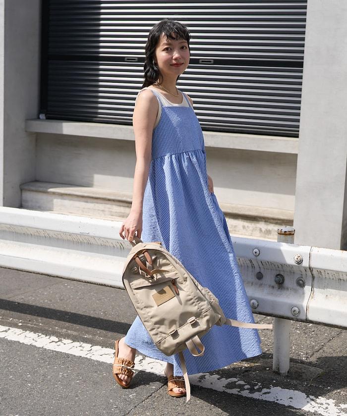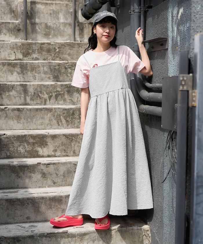 採用清涼的海魂衫面料的吊帶連衣裙。