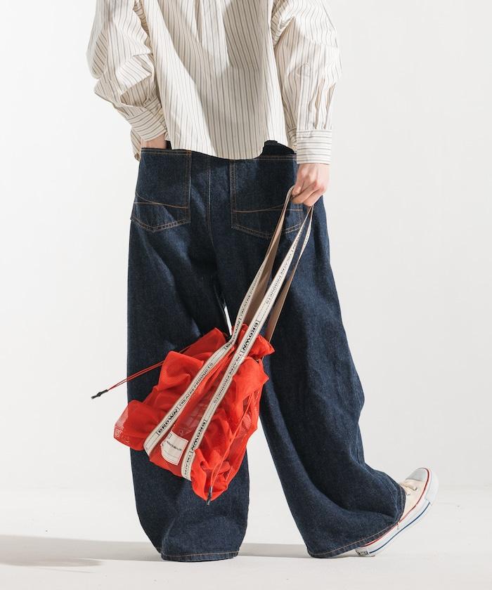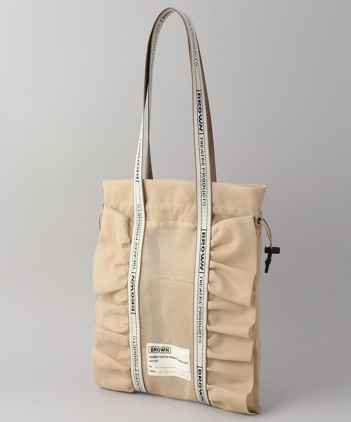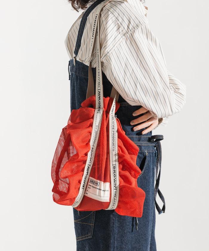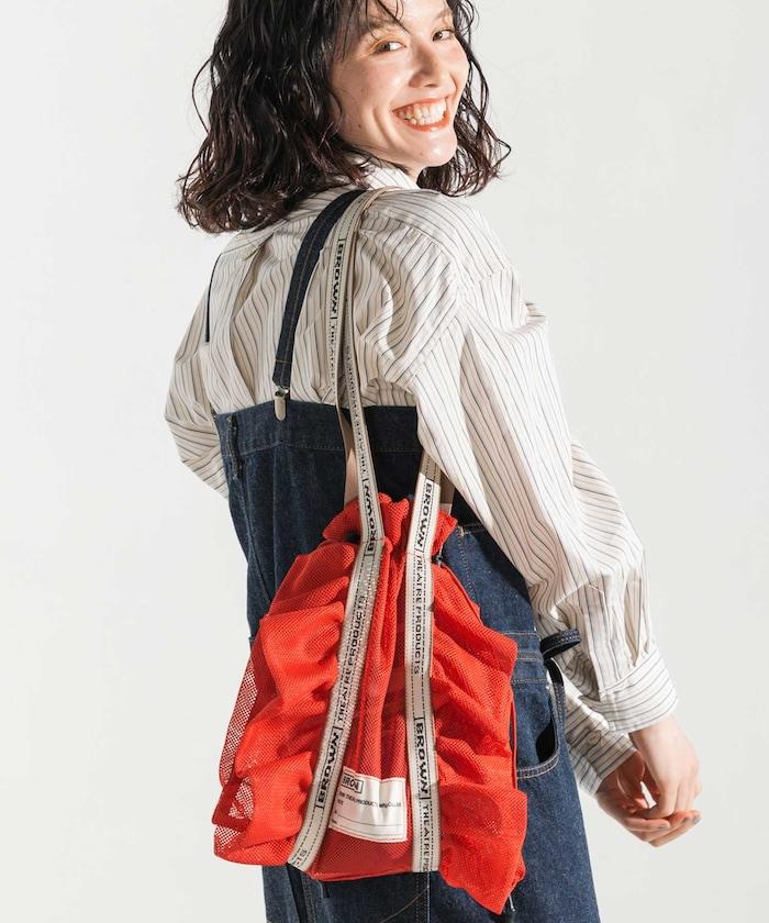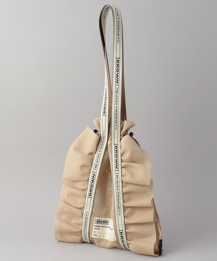與 BROWN THEATRE PRODUCTS 特別訂製的網眼材質流蘇包,增添了季節感。