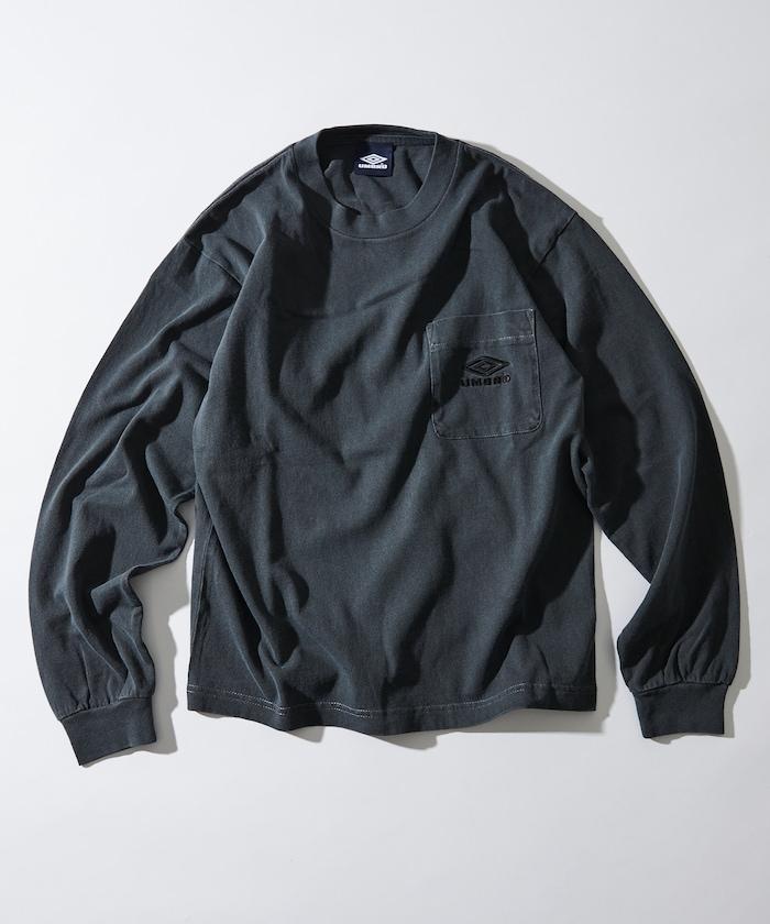 特別定製顏料染色單點徽標口袋長袖 T 恤