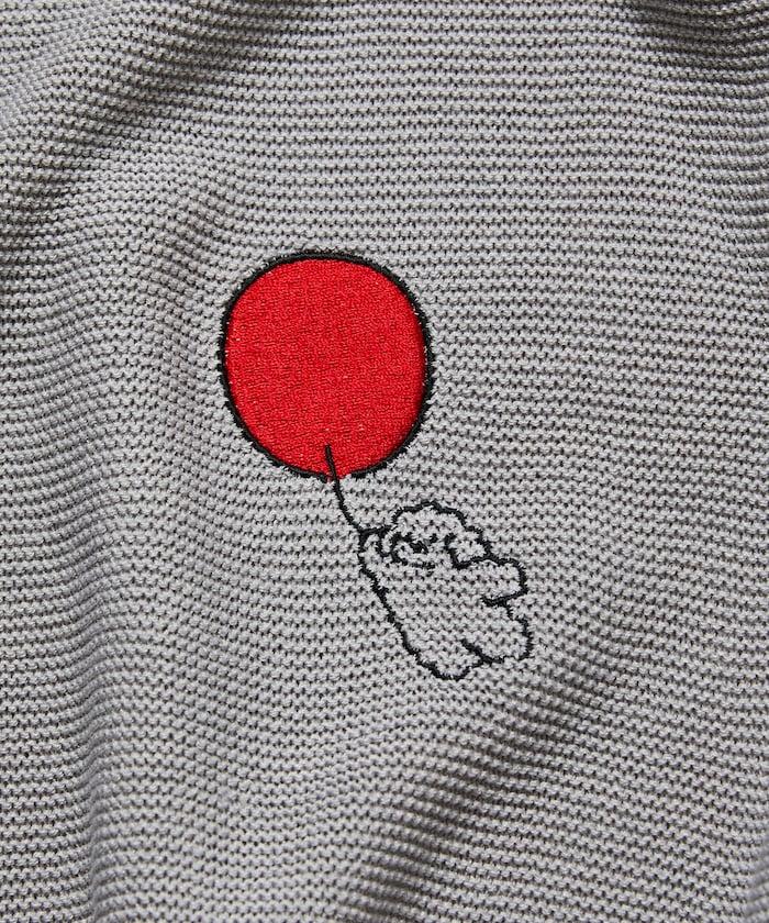 胸前繡有 tombonia 標誌性的手持氣球的穆克形象。