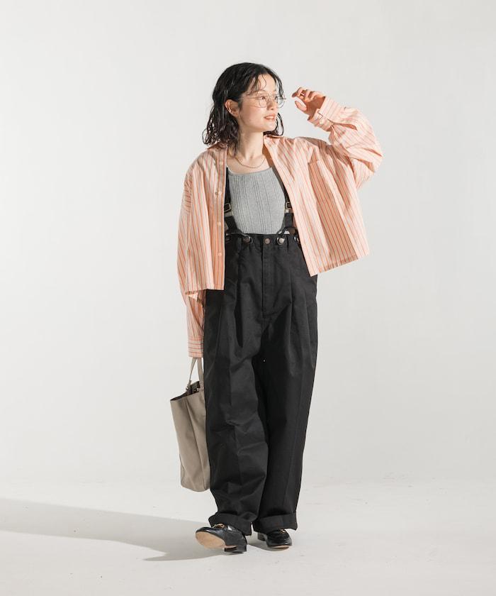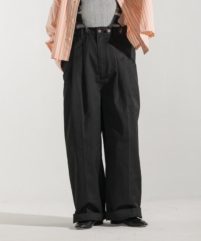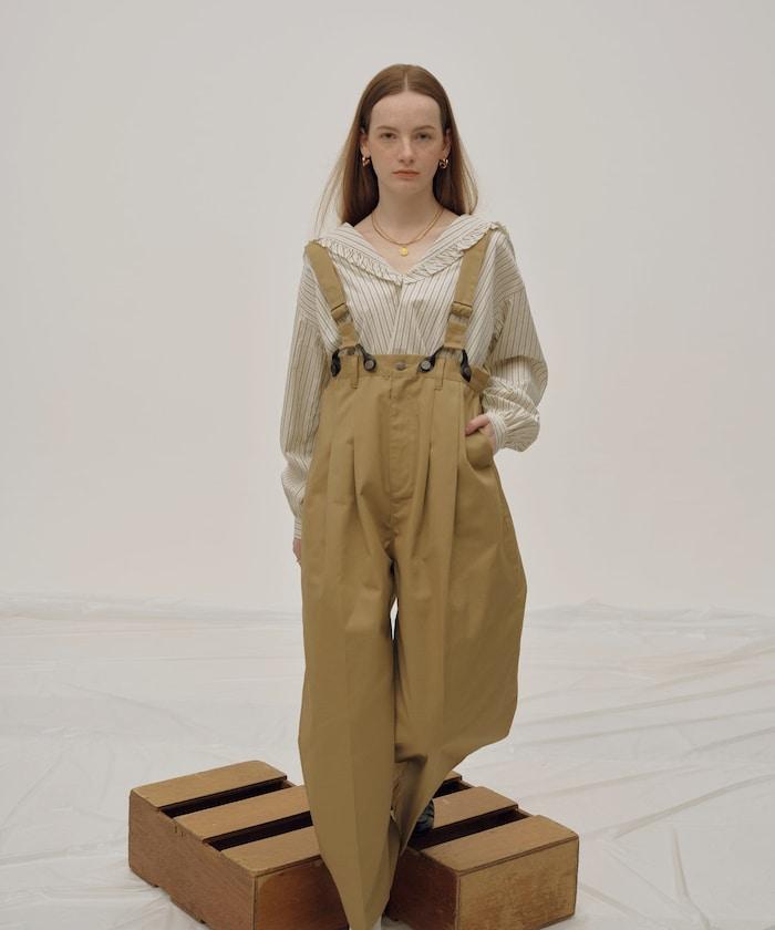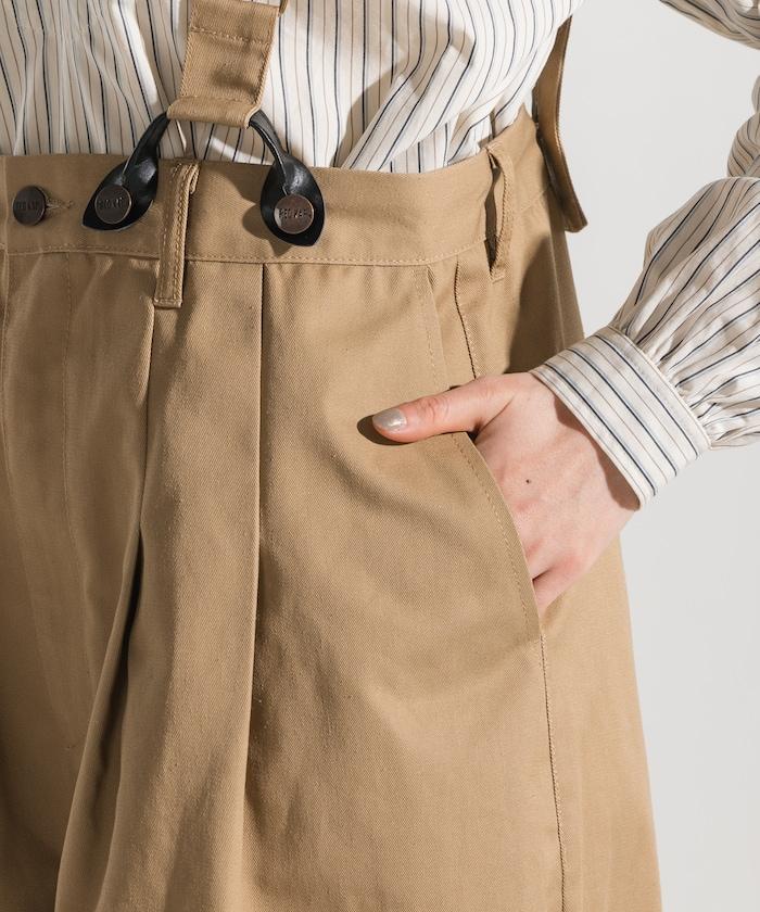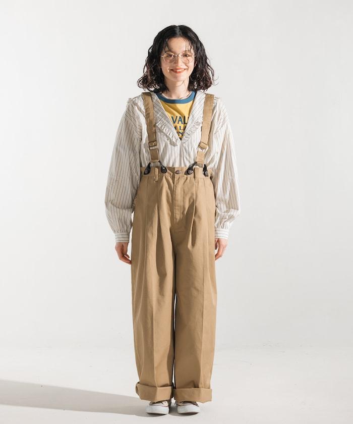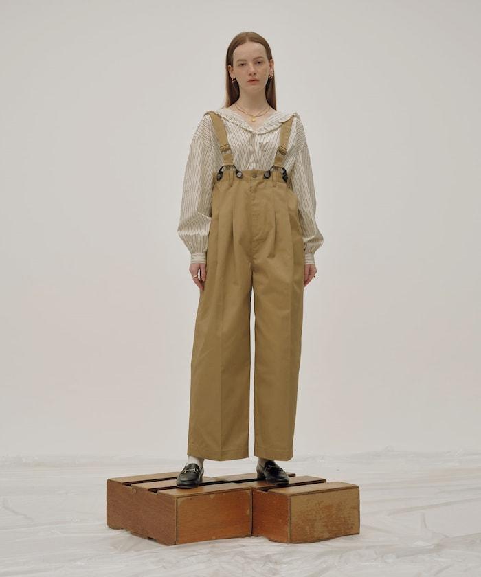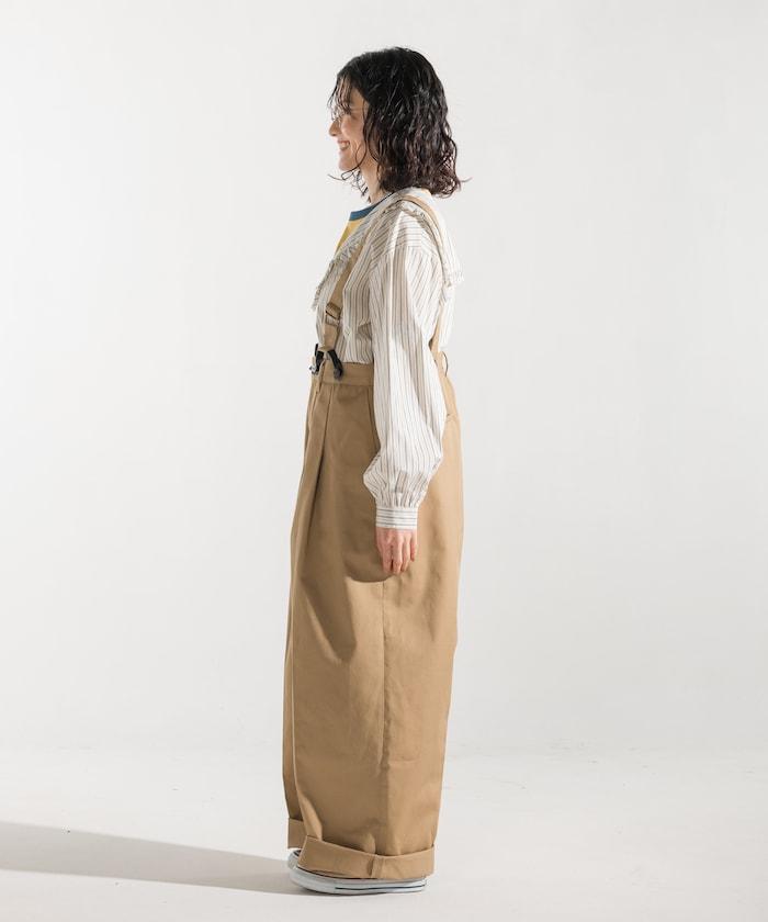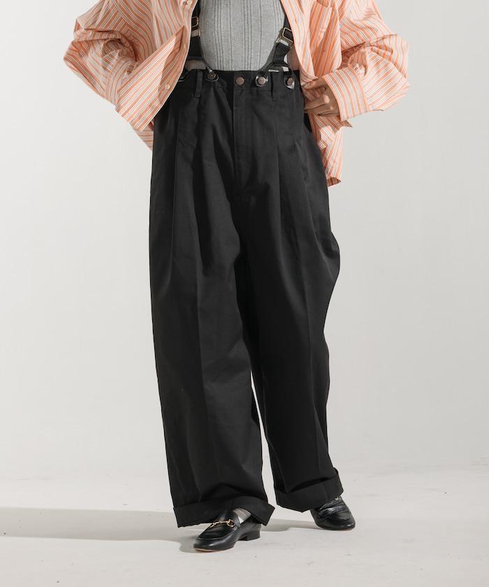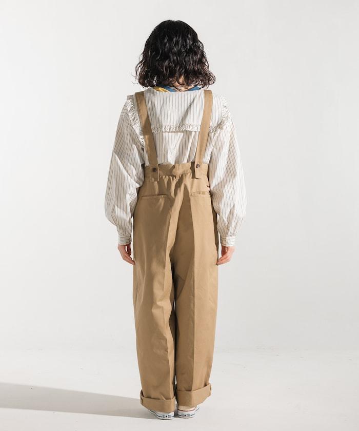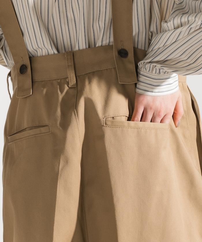 聯名 帶吊帶 大口袋2褶縐布褲