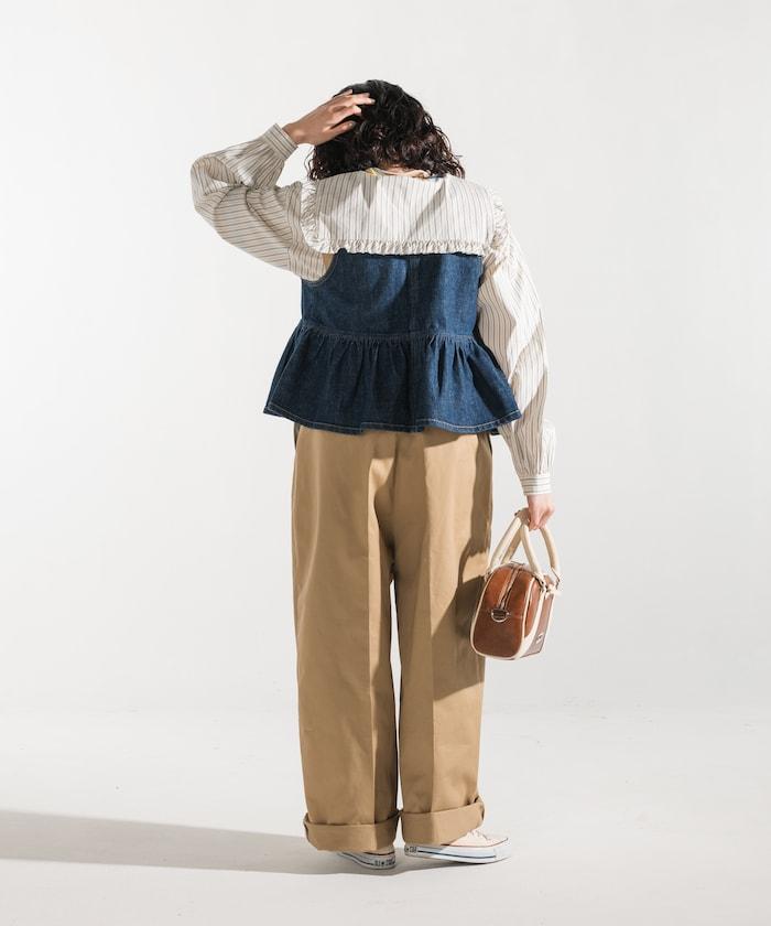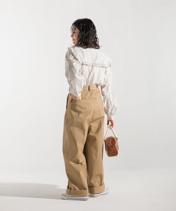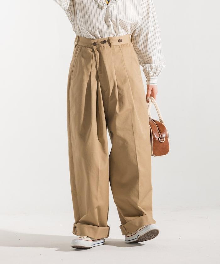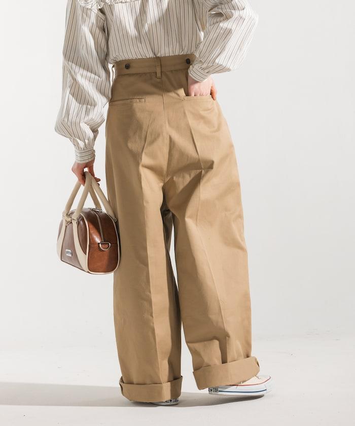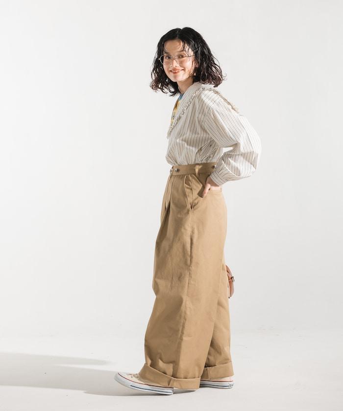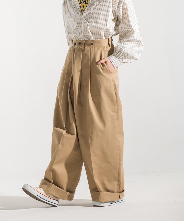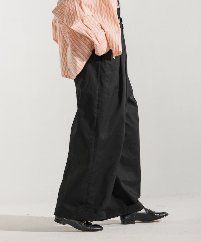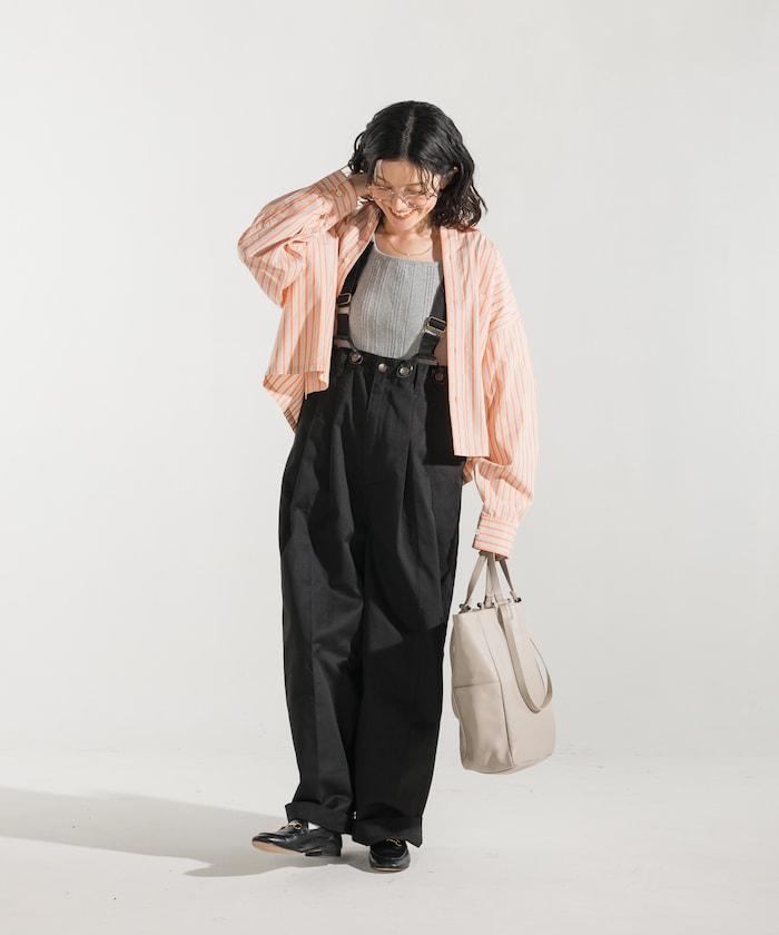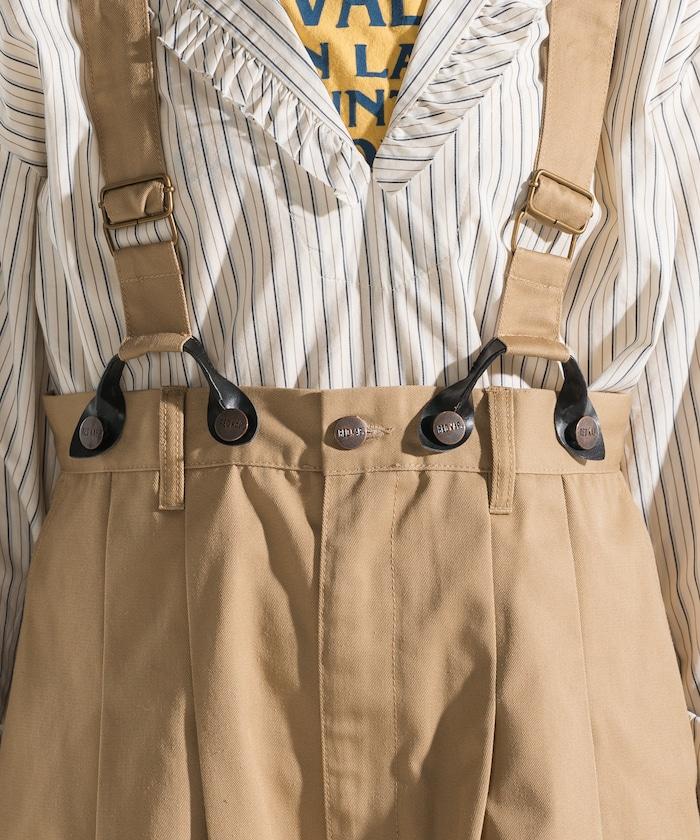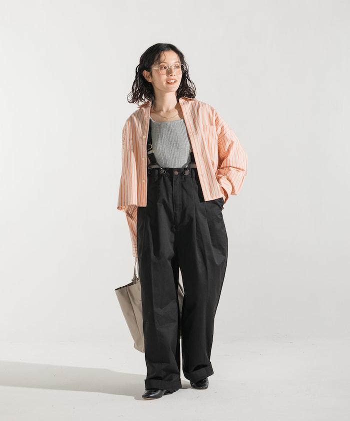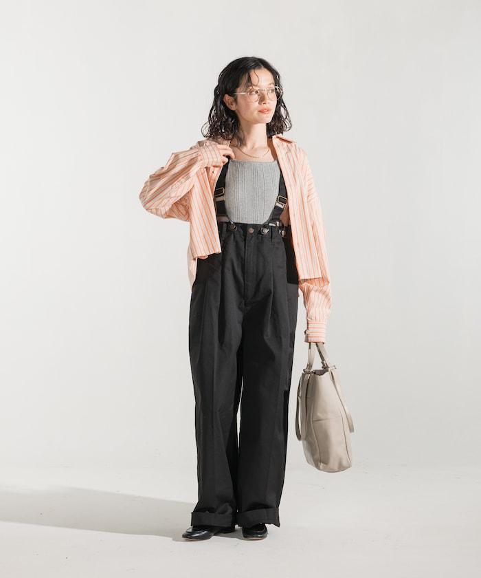 聯名 帶吊帶 大口袋2褶縐布褲