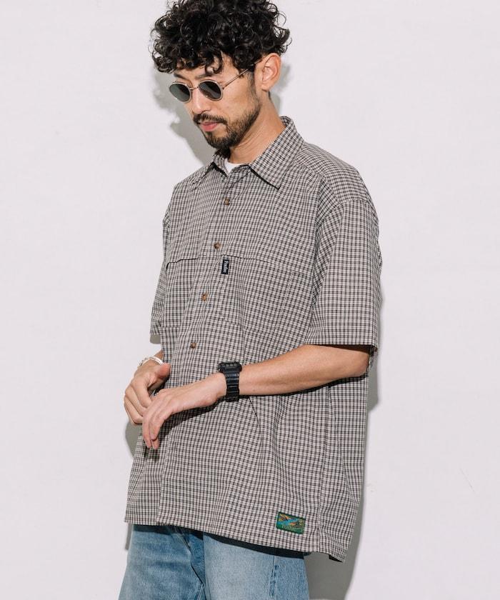 聯名 新款 釣魚口袋 短袖格子襯衫