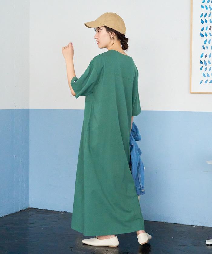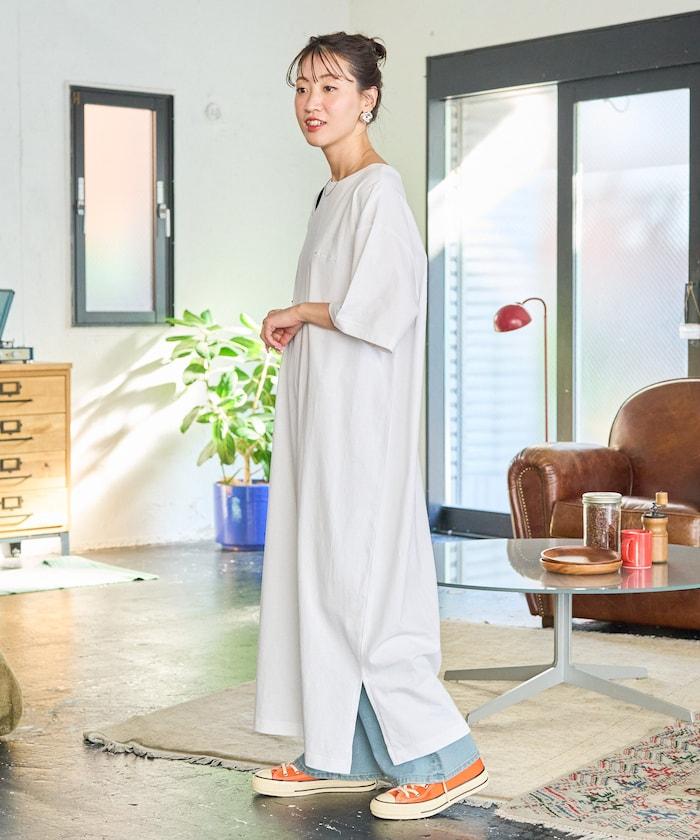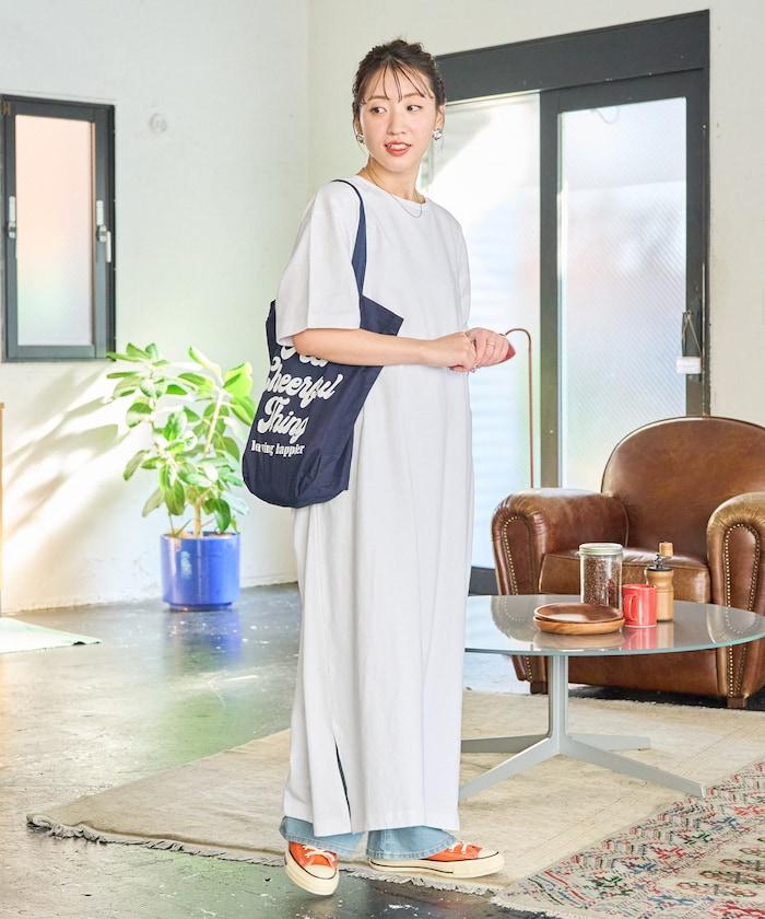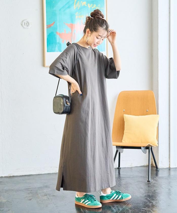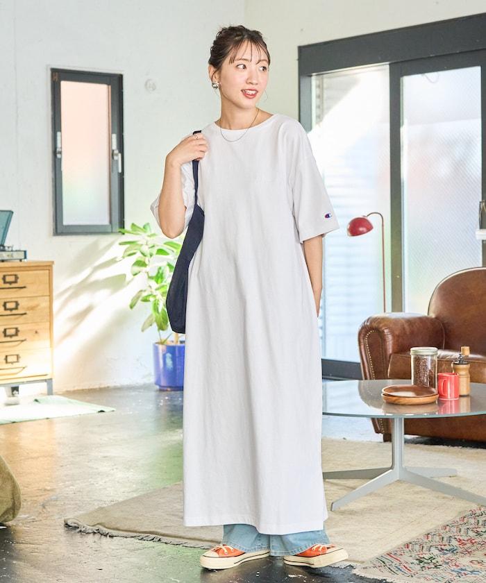 只需一件單品即可搭配的短袖 T 恤連衣裙。