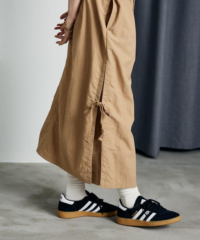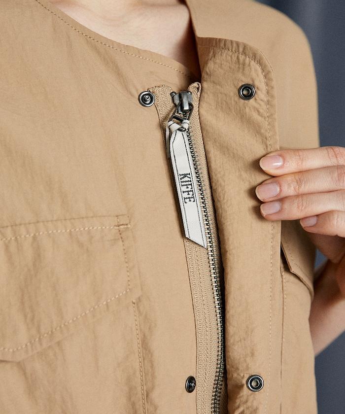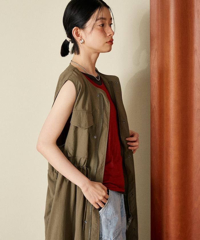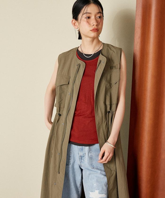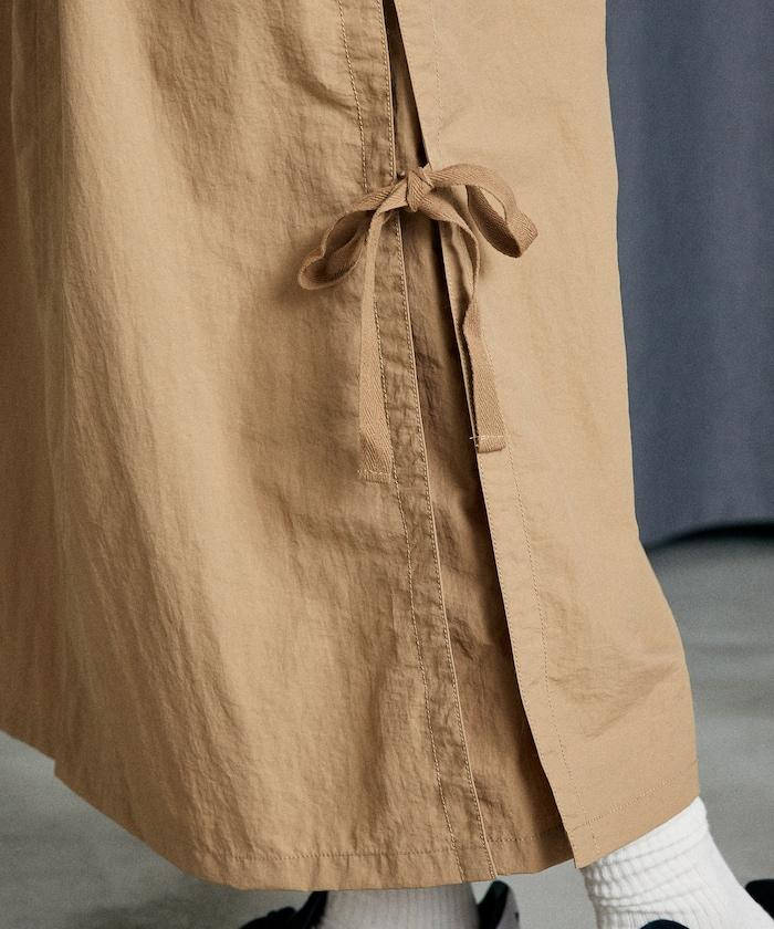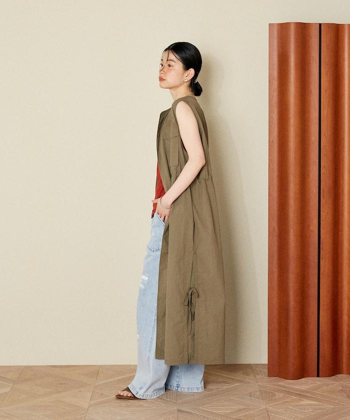 這款連身裙既有時尚感,又融入了翻蓋口袋和側面繫帶等軍裝設計細節。