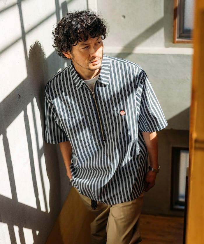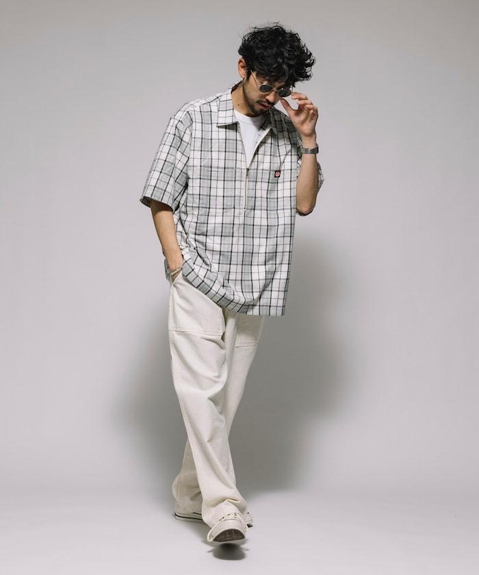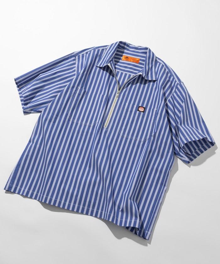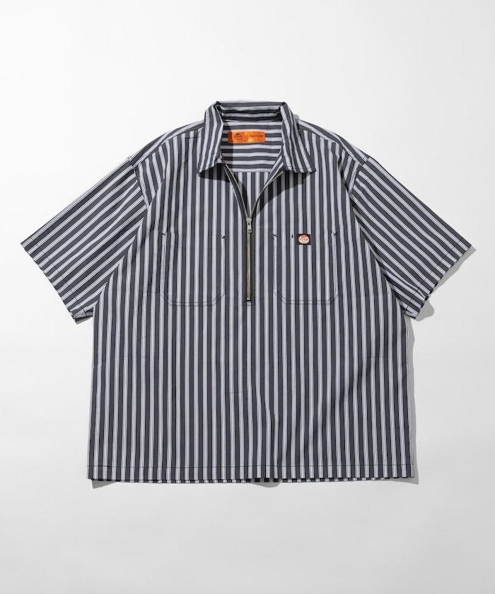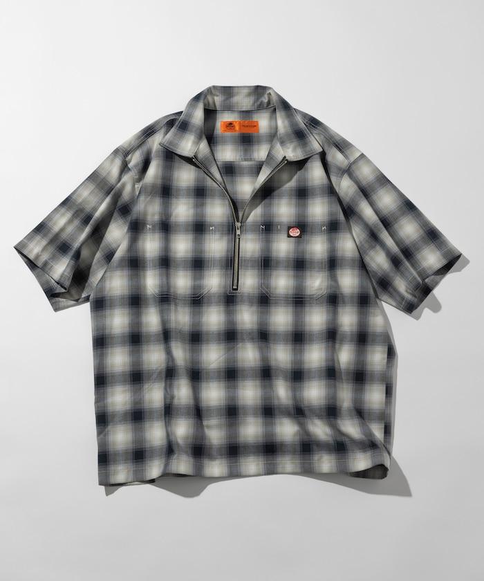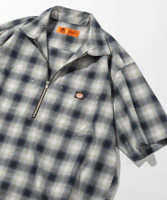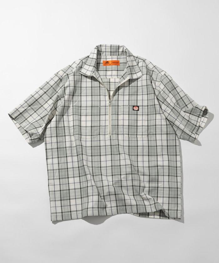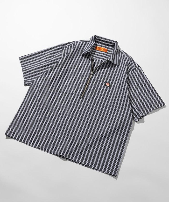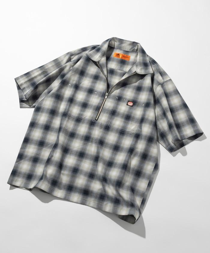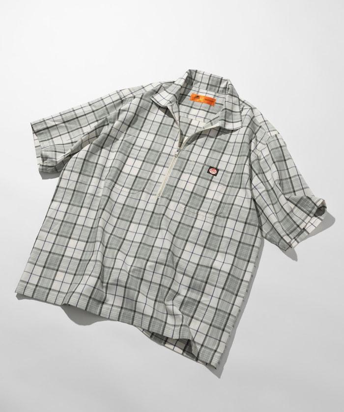 聯名 輕鬆版型 半拉鍊 單標誌 短袖工作襯衫 條紋 格子