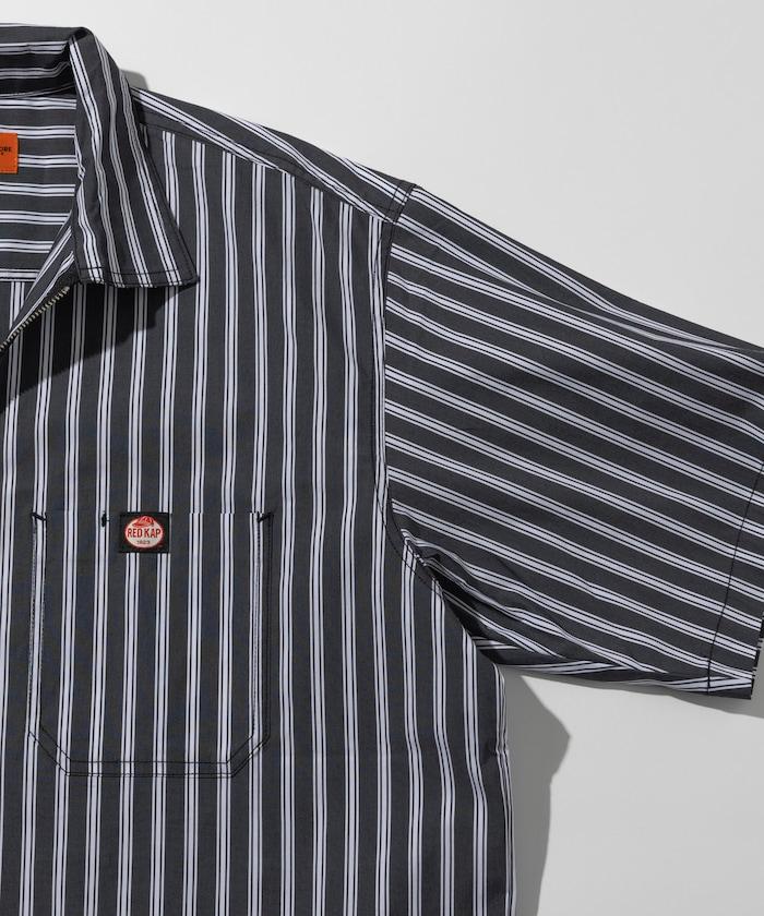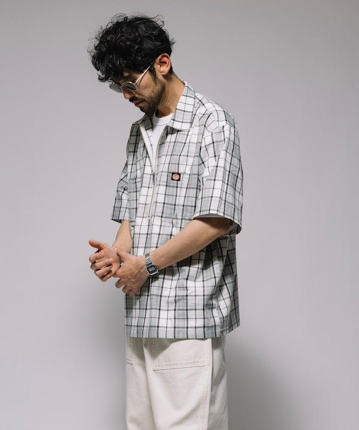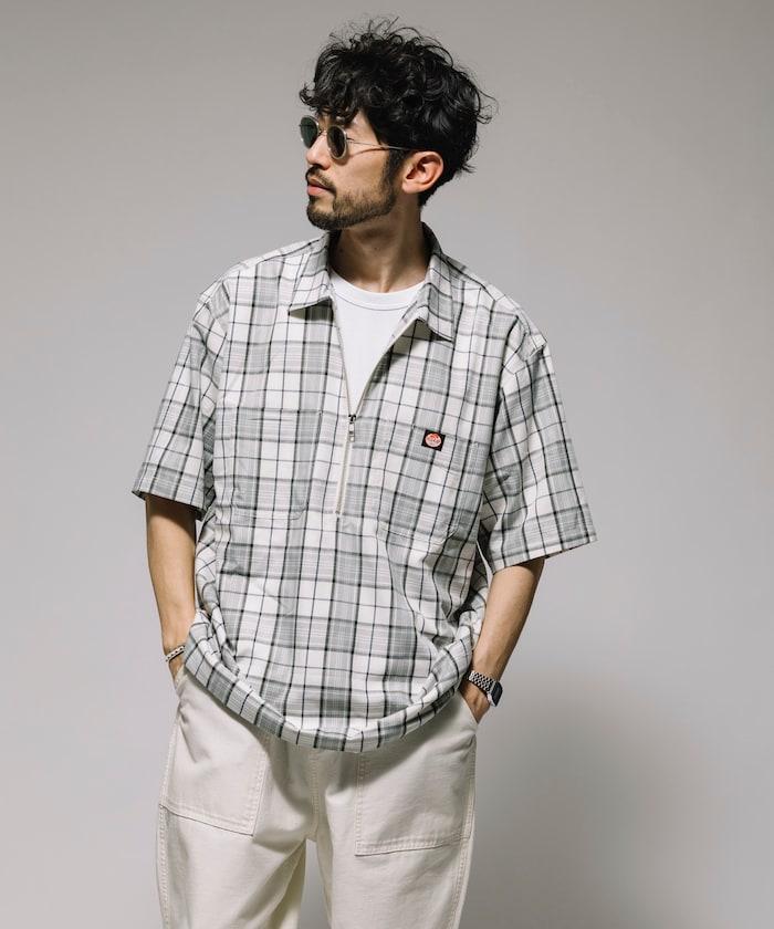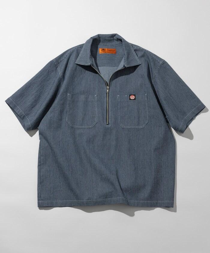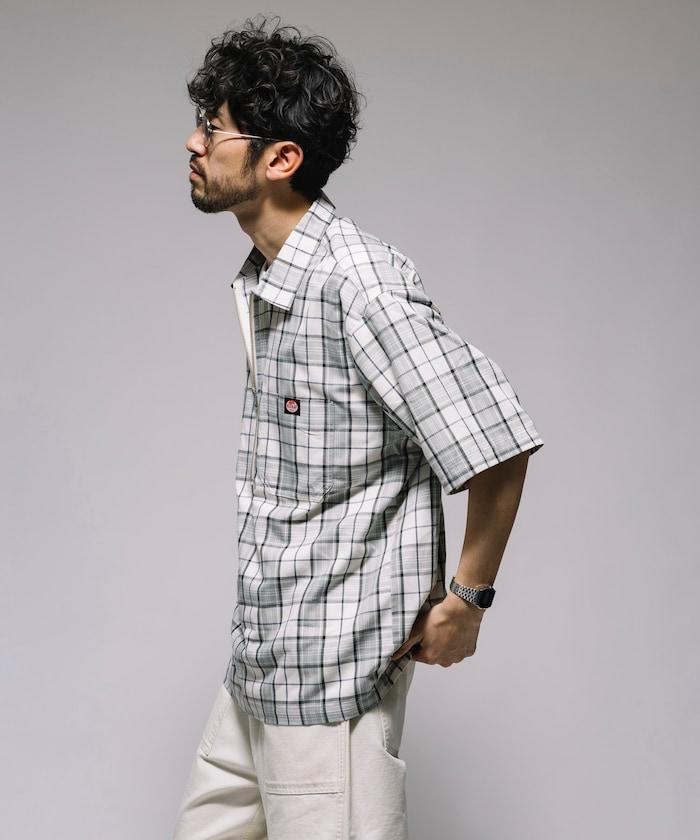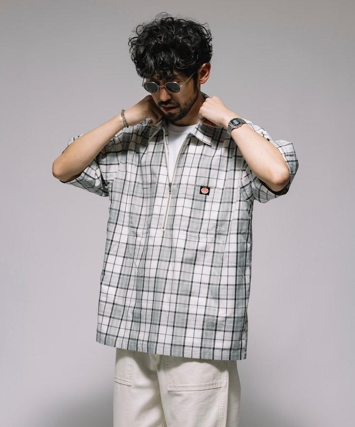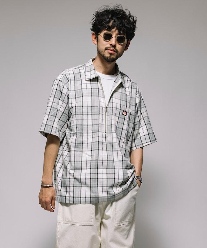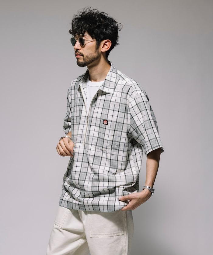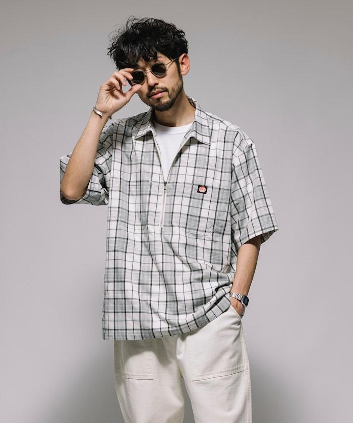 聯名 輕鬆版型 半拉鍊 單標誌 短袖工作襯衫 條紋 格子