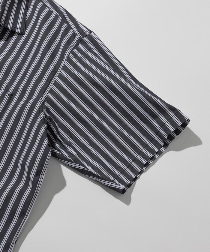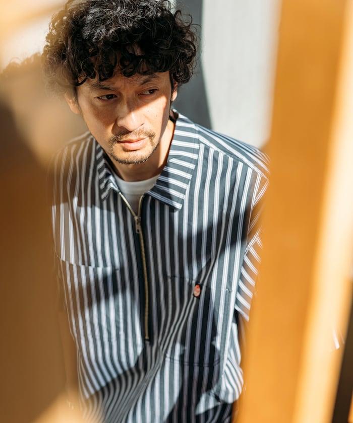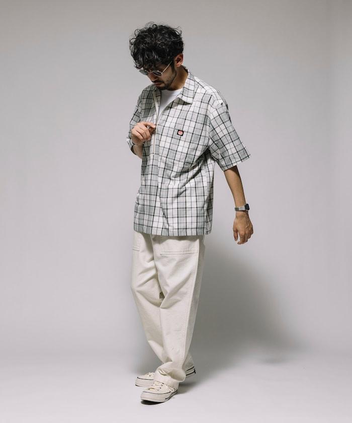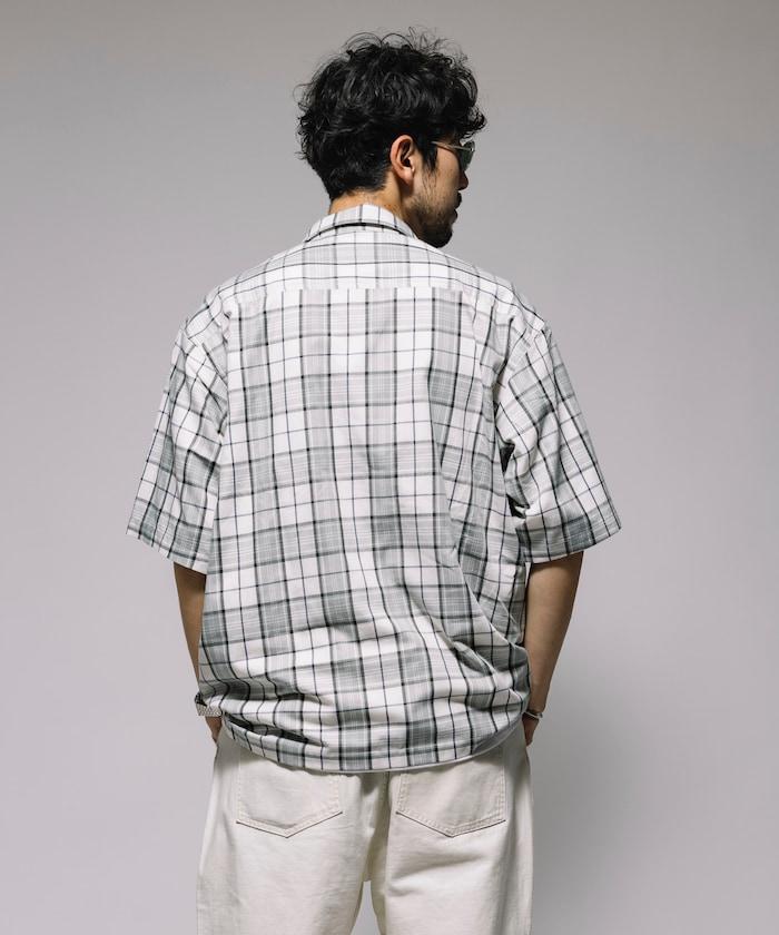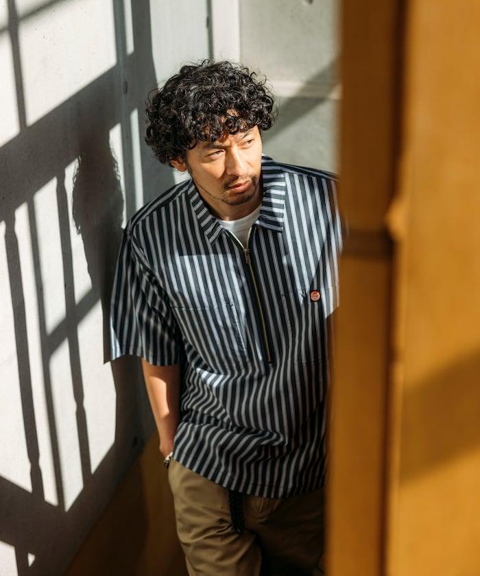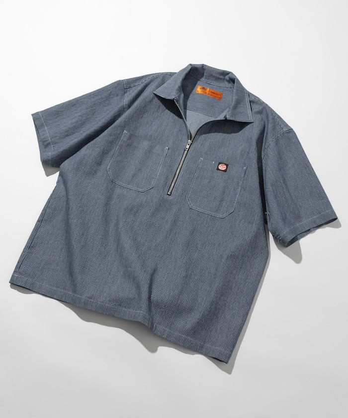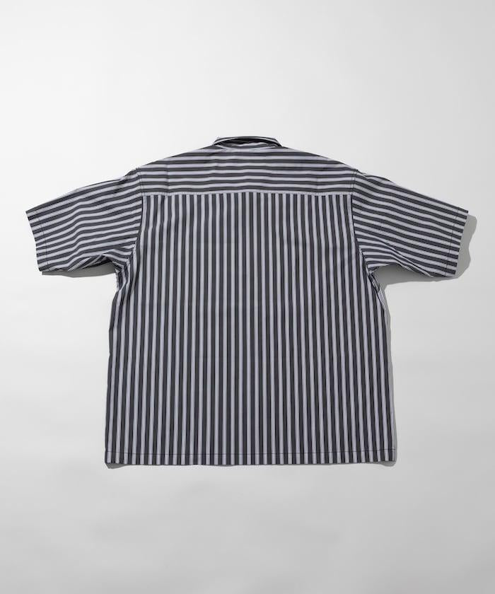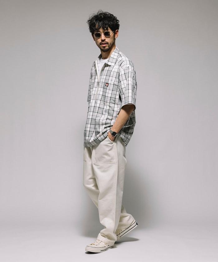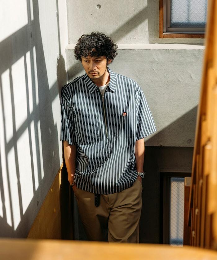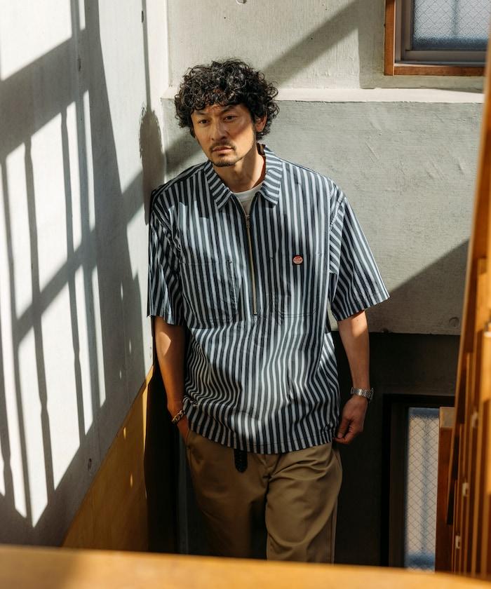 聯名 輕鬆版型 半拉鍊 單標誌 短袖工作襯衫 條紋 格子