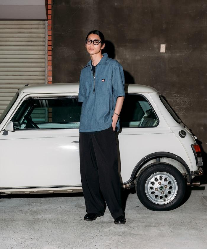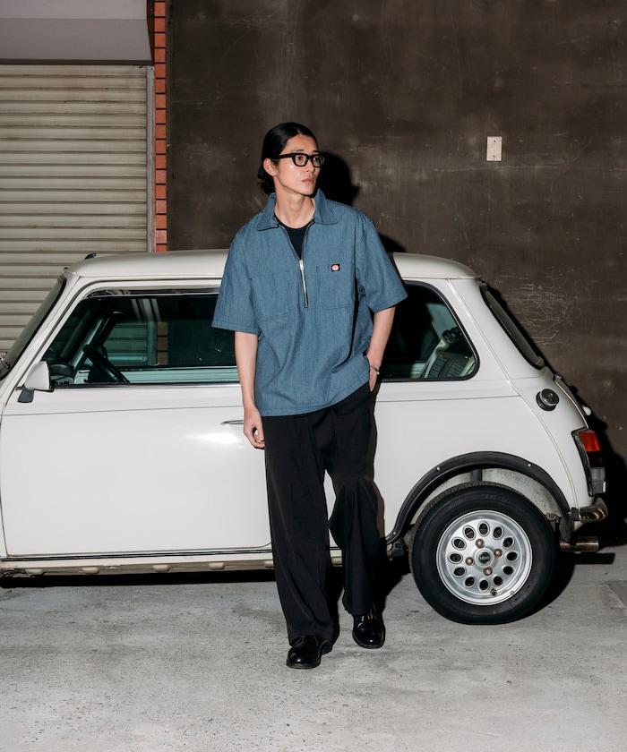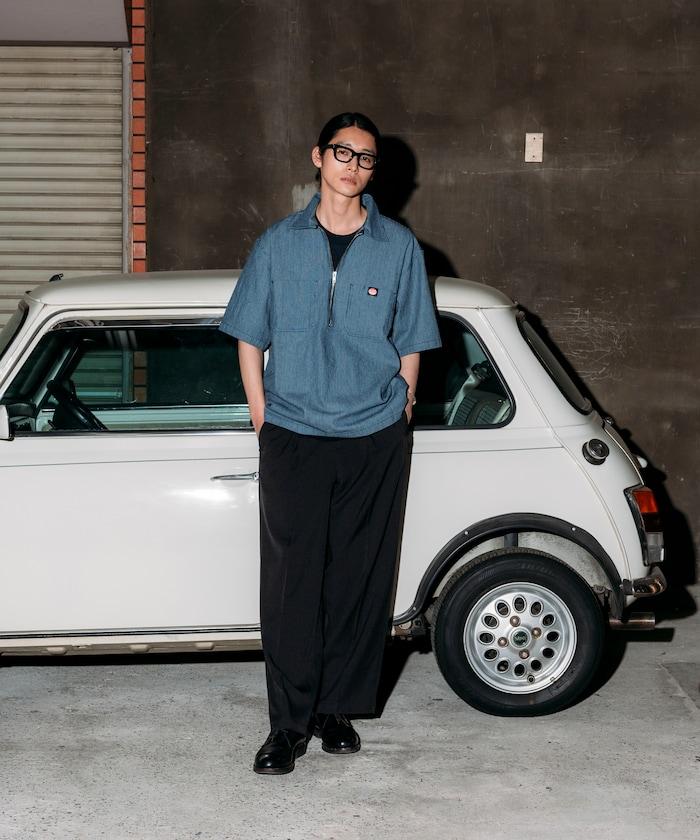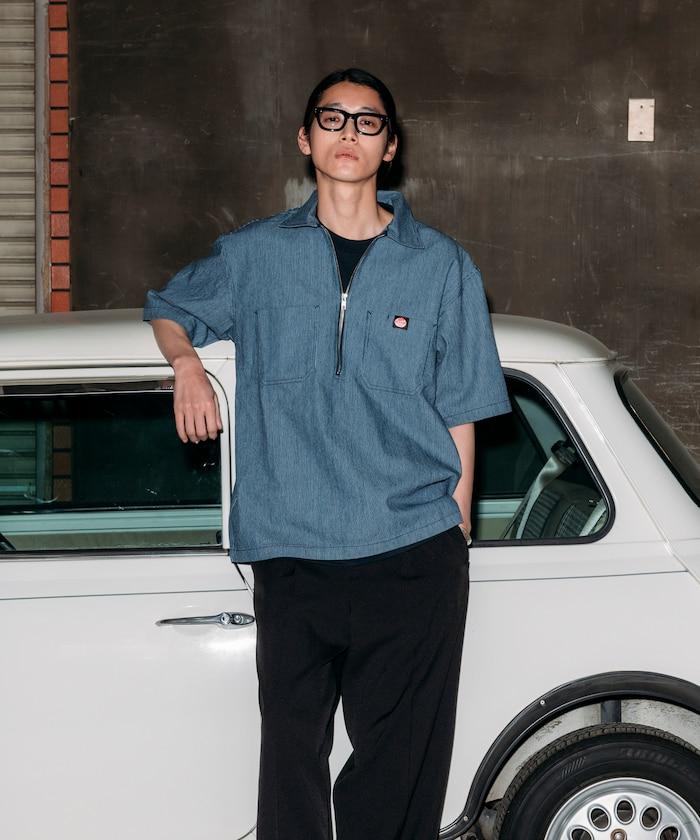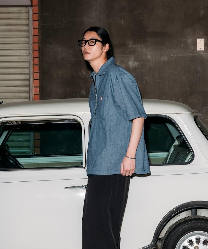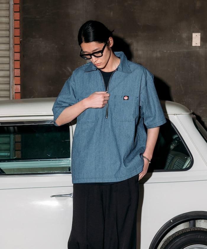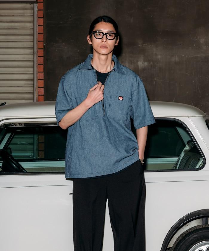 定製寬鬆版型半拉鍊短袖工作襯衫