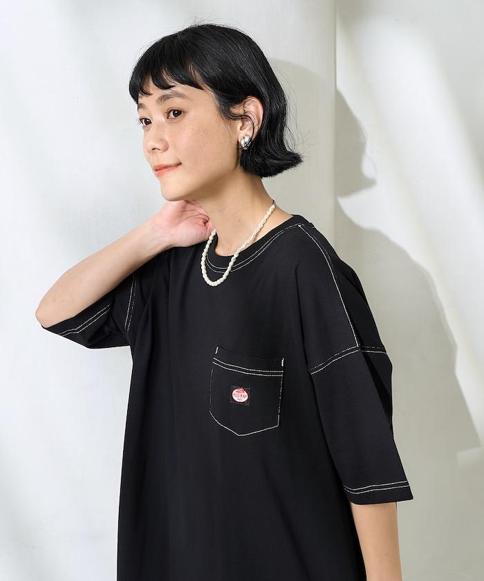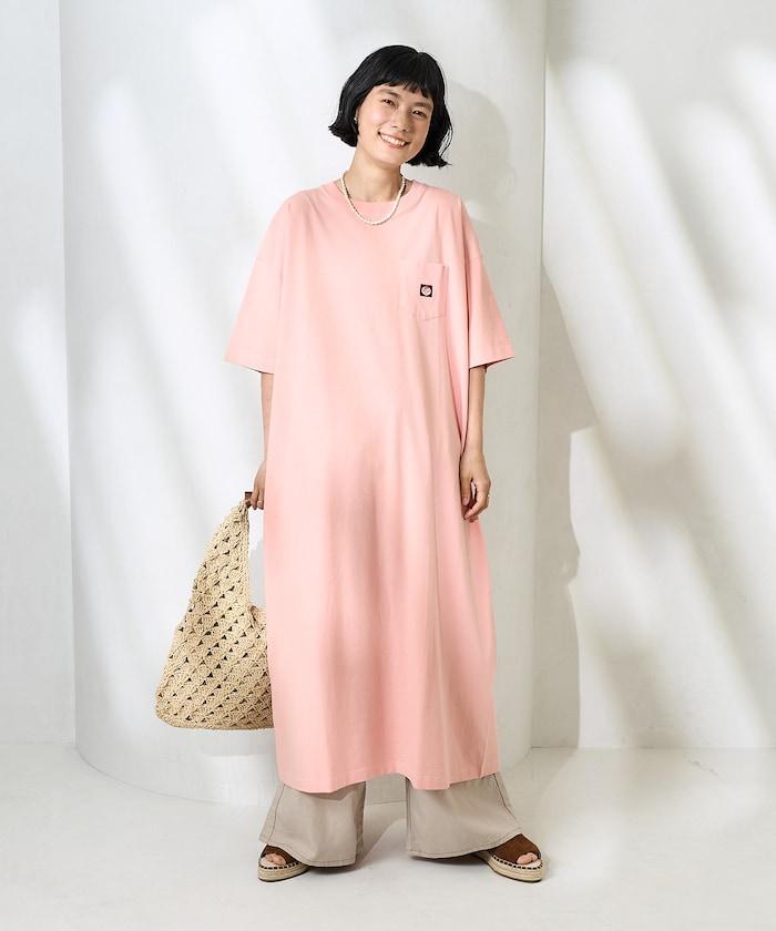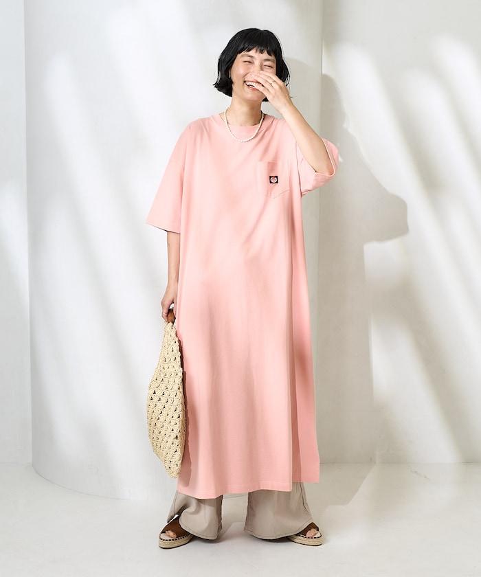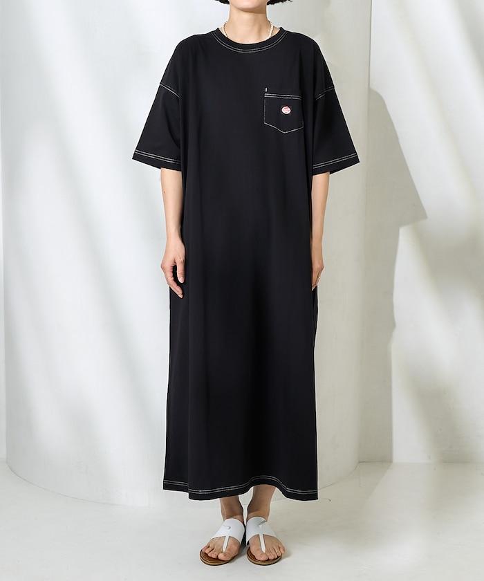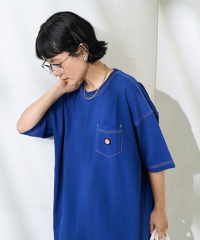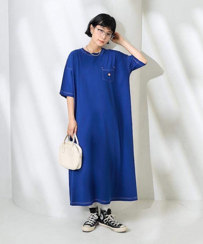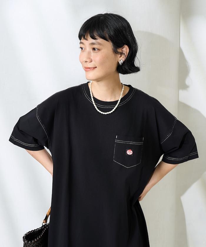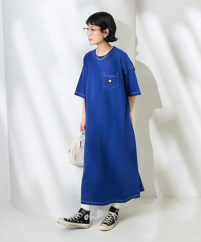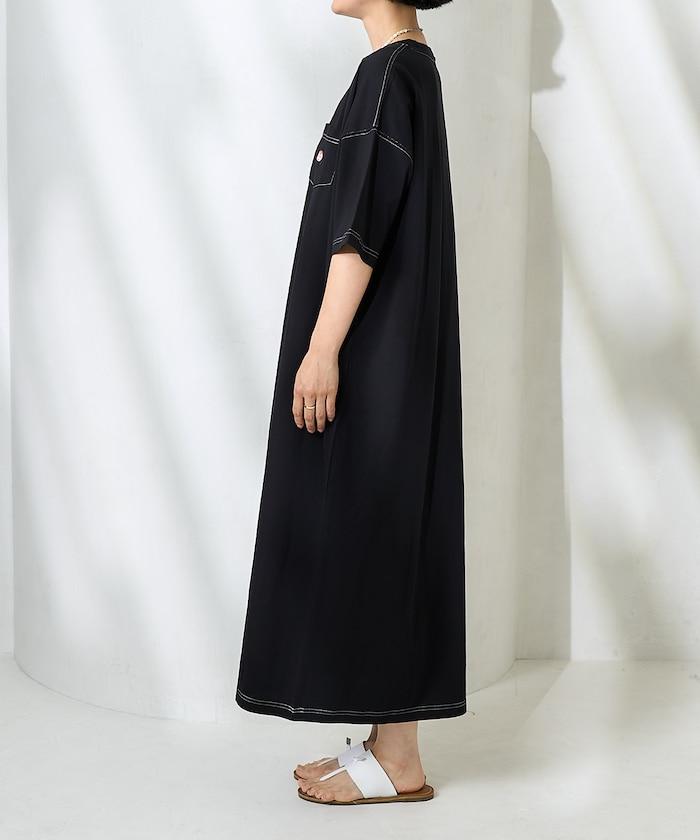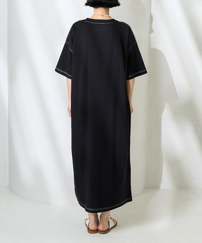 這款口袋 T 恤連衣裙採用彩色縫線裝飾。