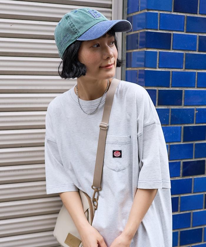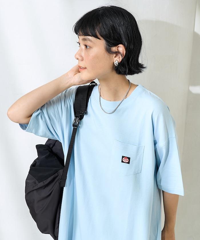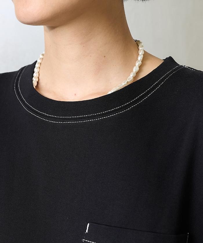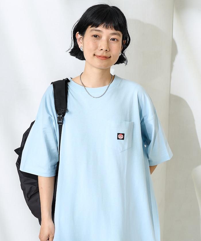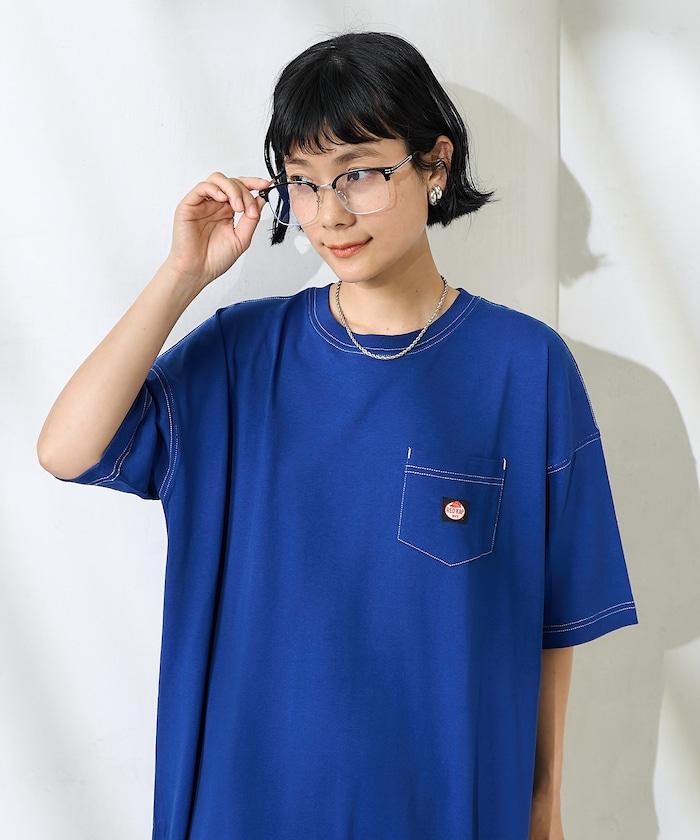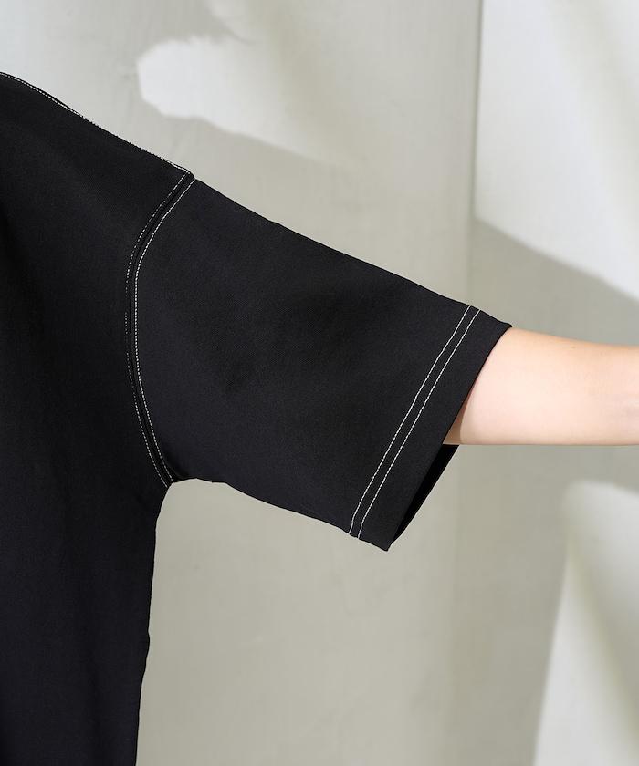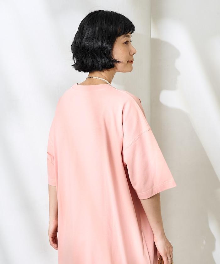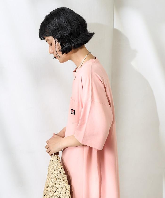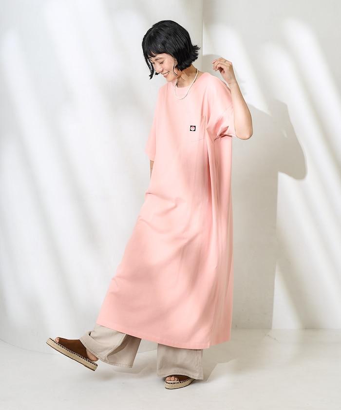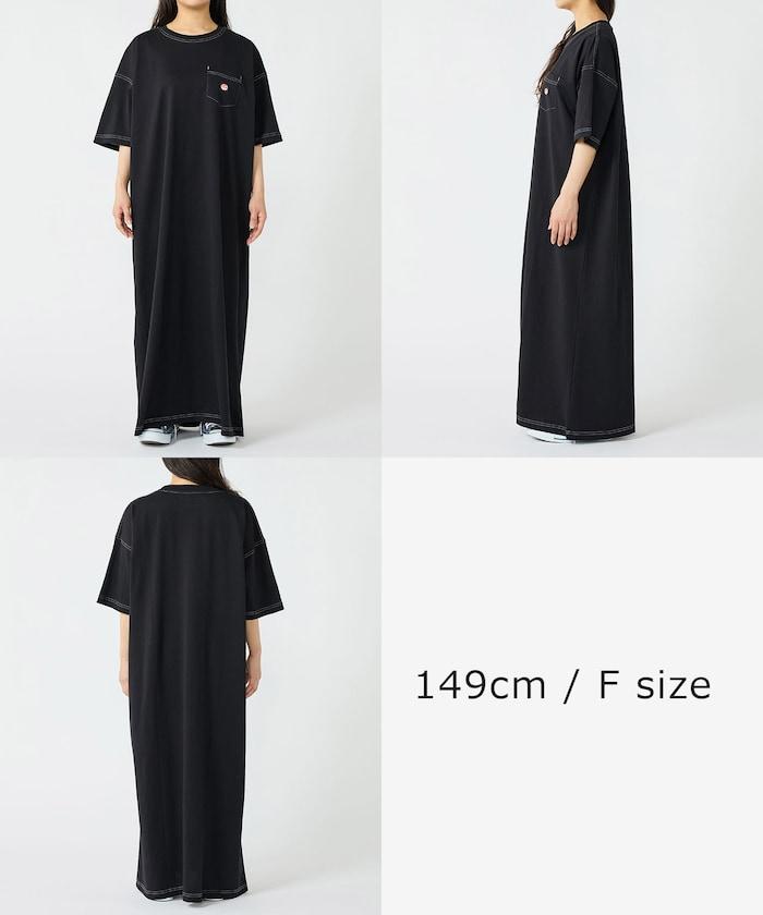 這款口袋 T 恤連衣裙採用彩色縫線裝飾。