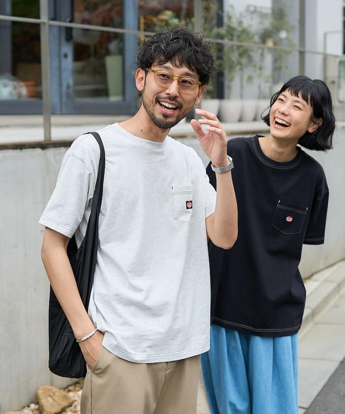 口袋式 T 恤,胸前口袋有姓名標籤。