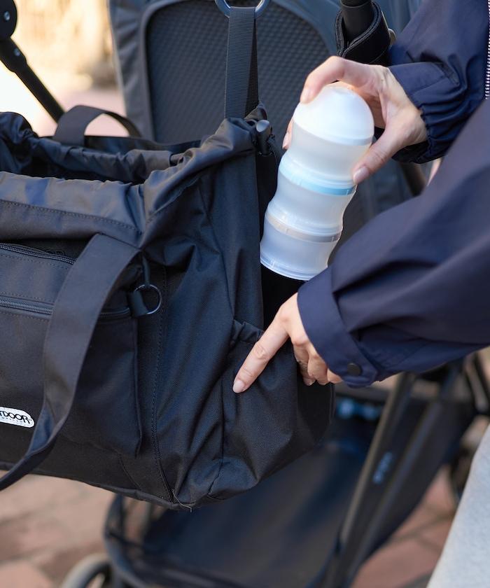 內袋兩側有奶瓶隔層,可存放奶瓶、水壺等。