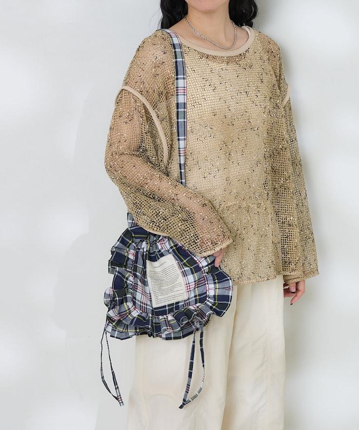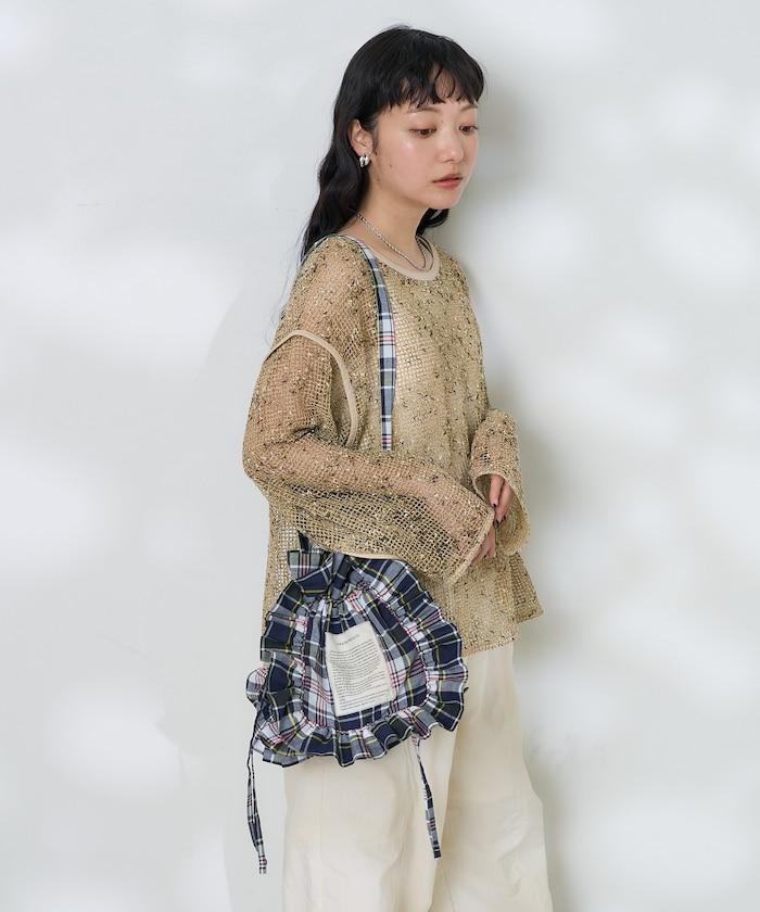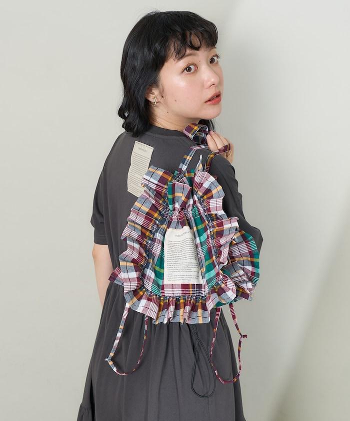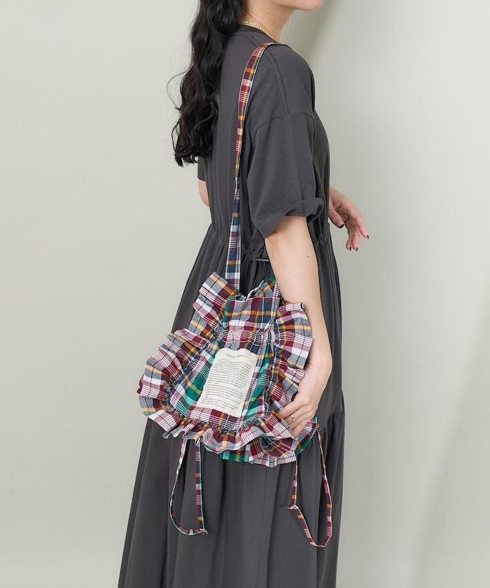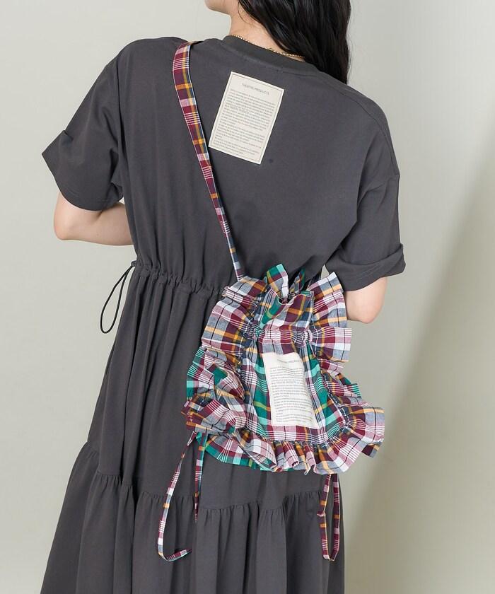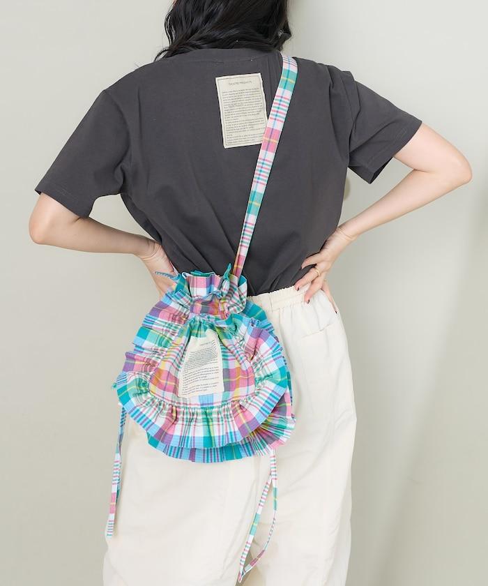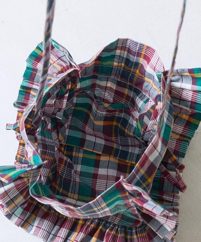 聯名 馬德拉斯格紋 荷葉邊肩揹包