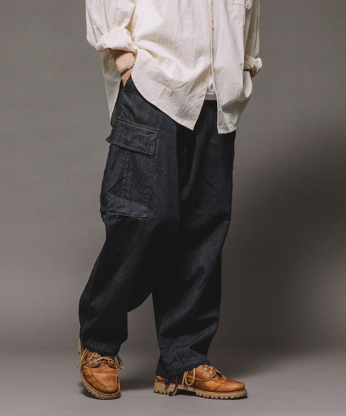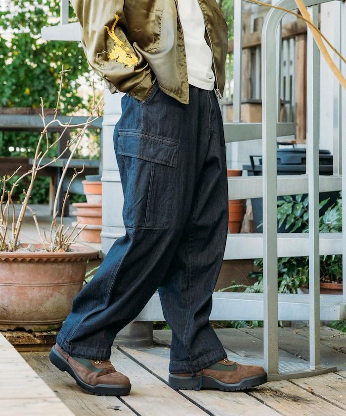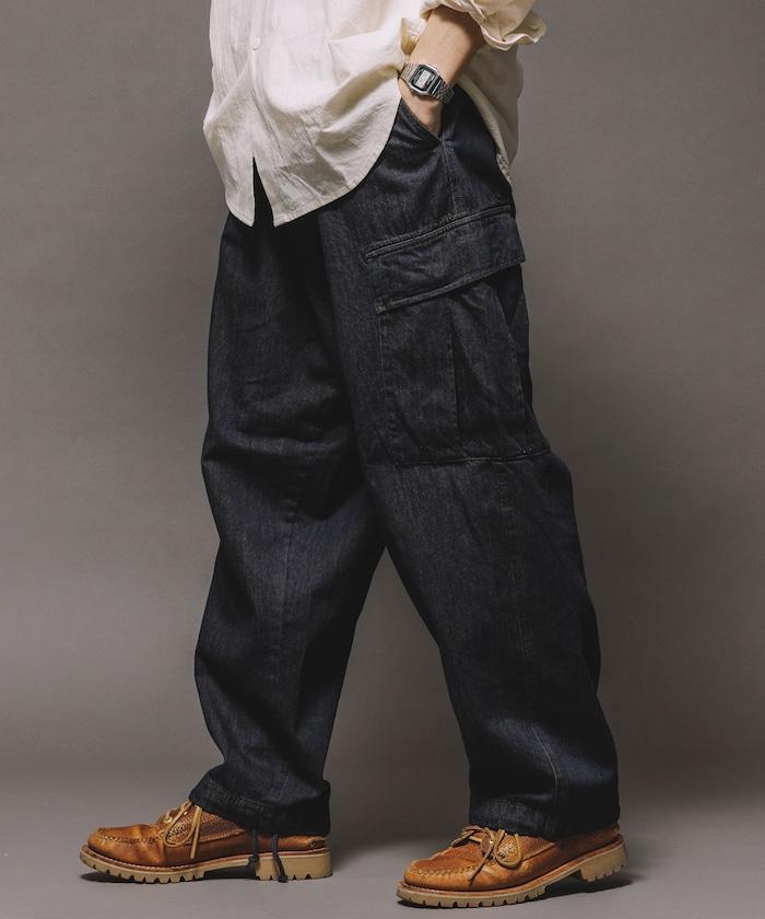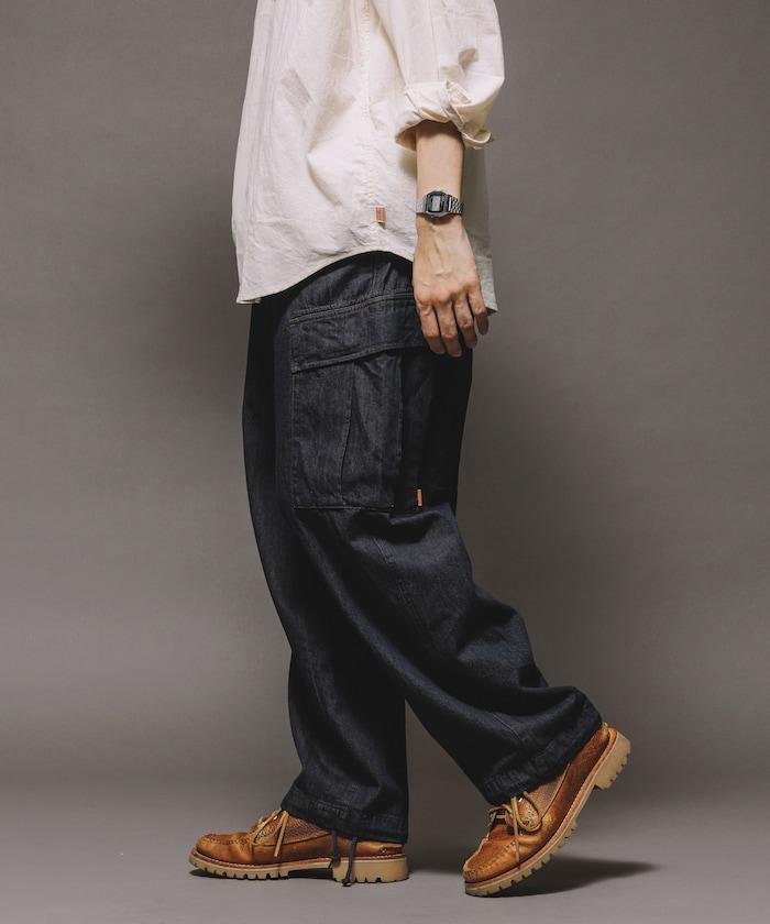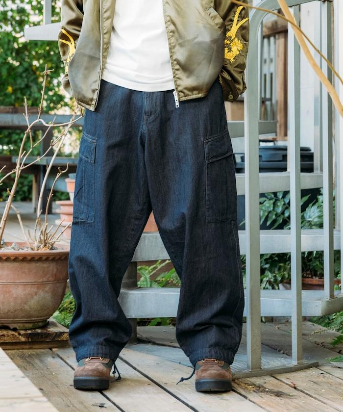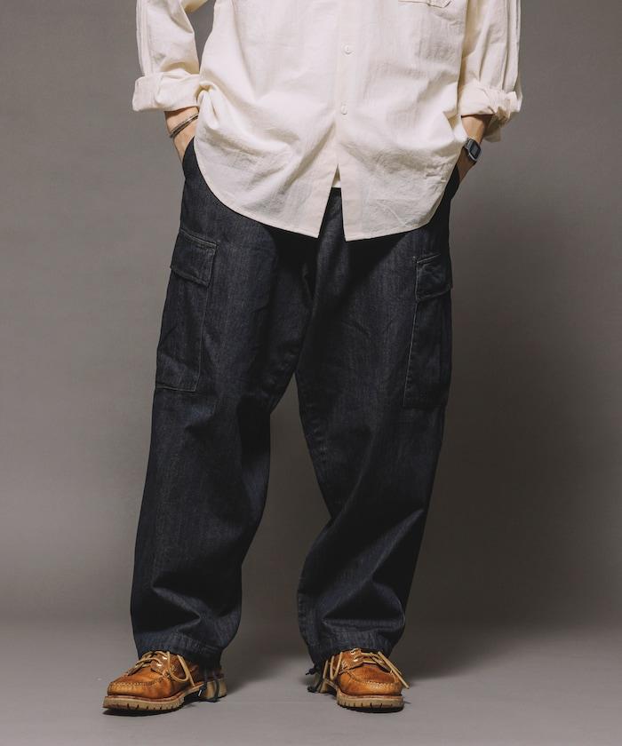 牛仔面料的精緻咬口和起皺給人一種復古的感覺,而貨郎褲特有的口袋設計則功能性十足。