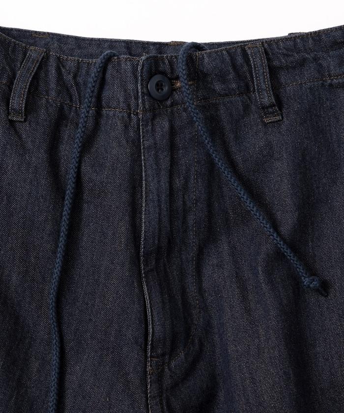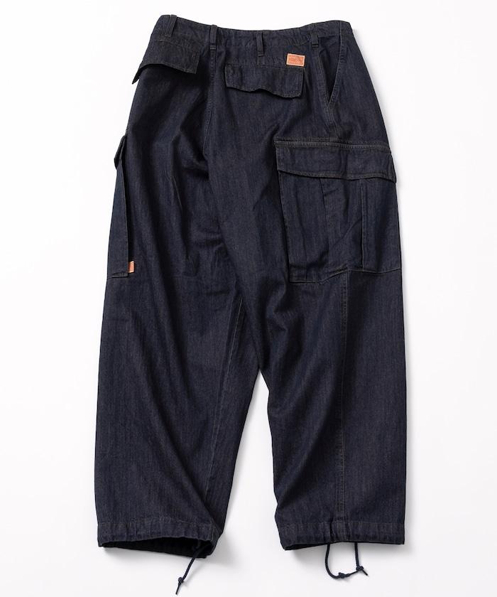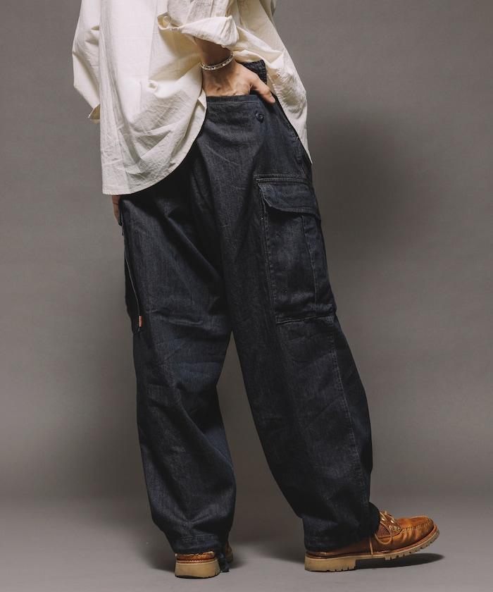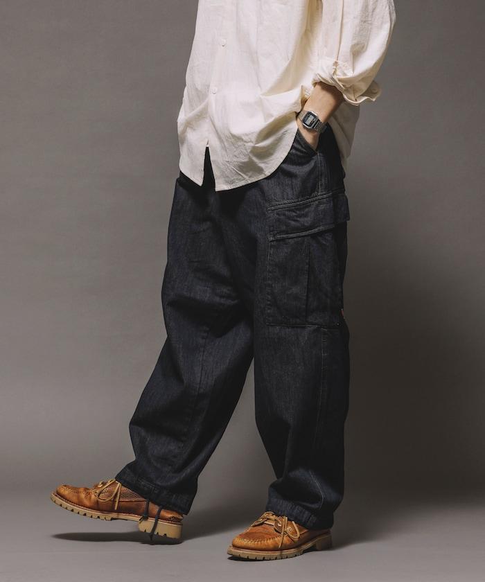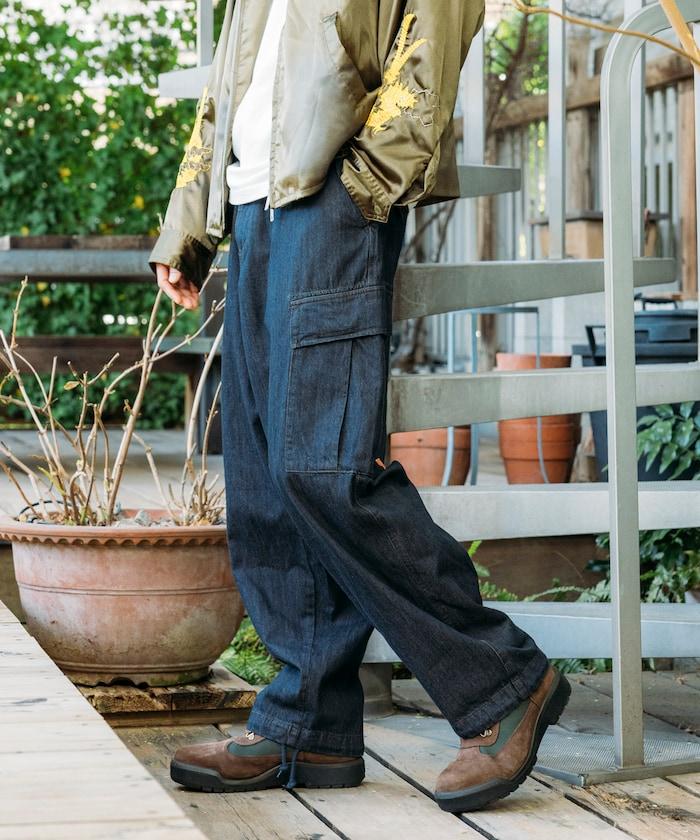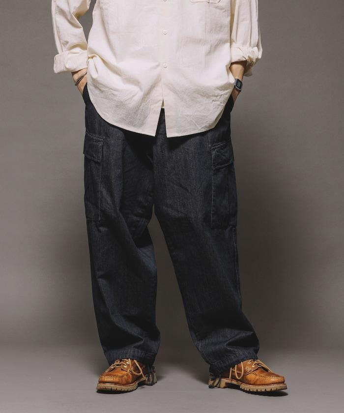 牛仔面料的精緻咬口和起皺給人一種復古的感覺,而貨郎褲特有的口袋設計則功能性十足。