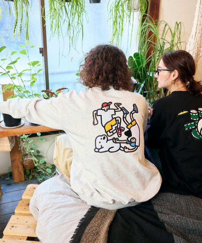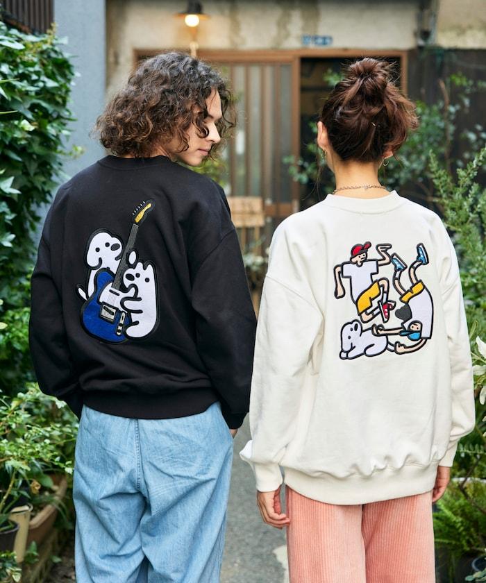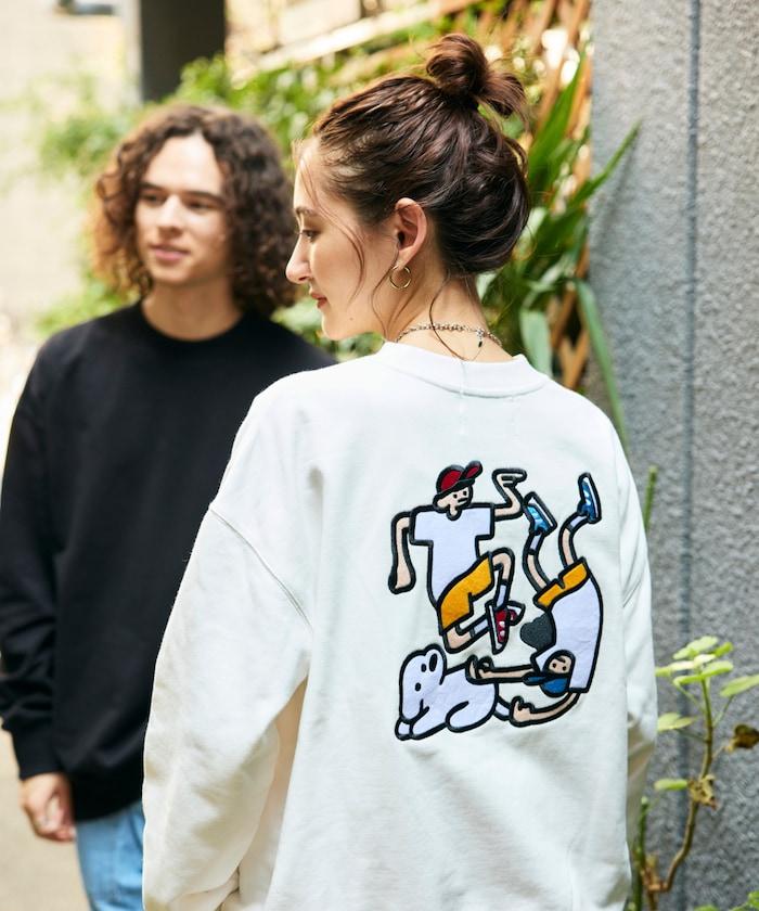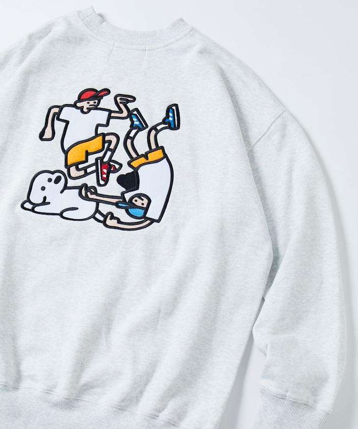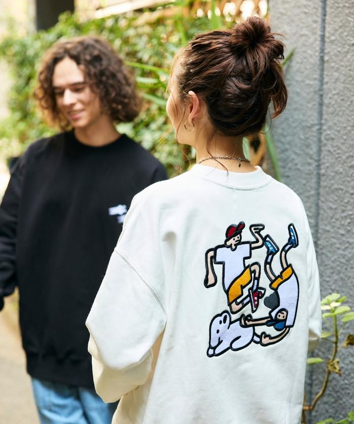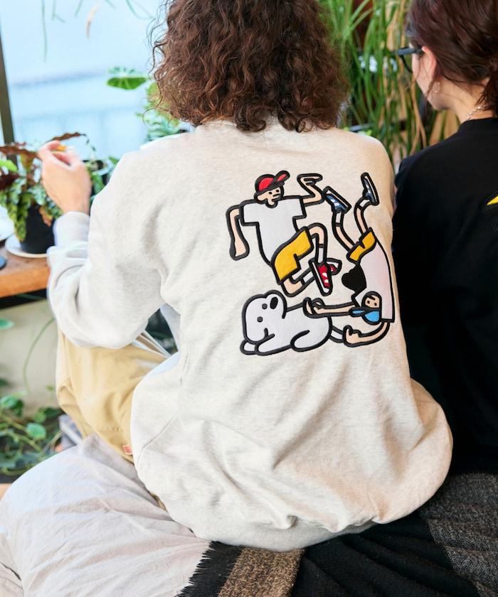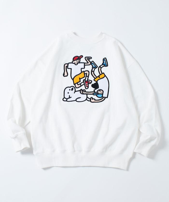 由活躍於國內外的插畫家 matsui 為 FREAK'S STORE 特別定製的 "Dance "背部毛氈刺繡圓領運動衫。
