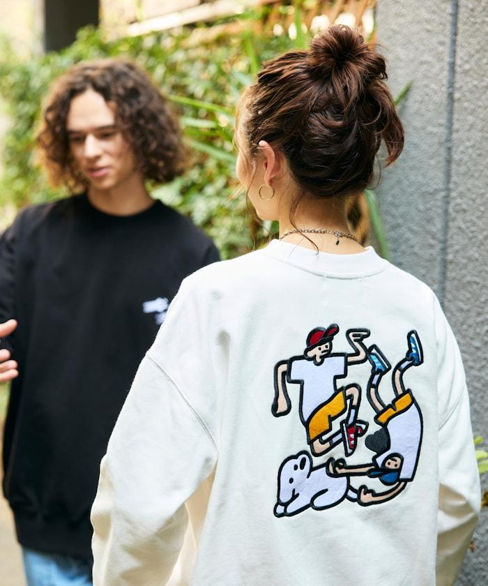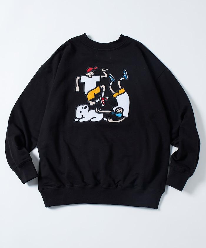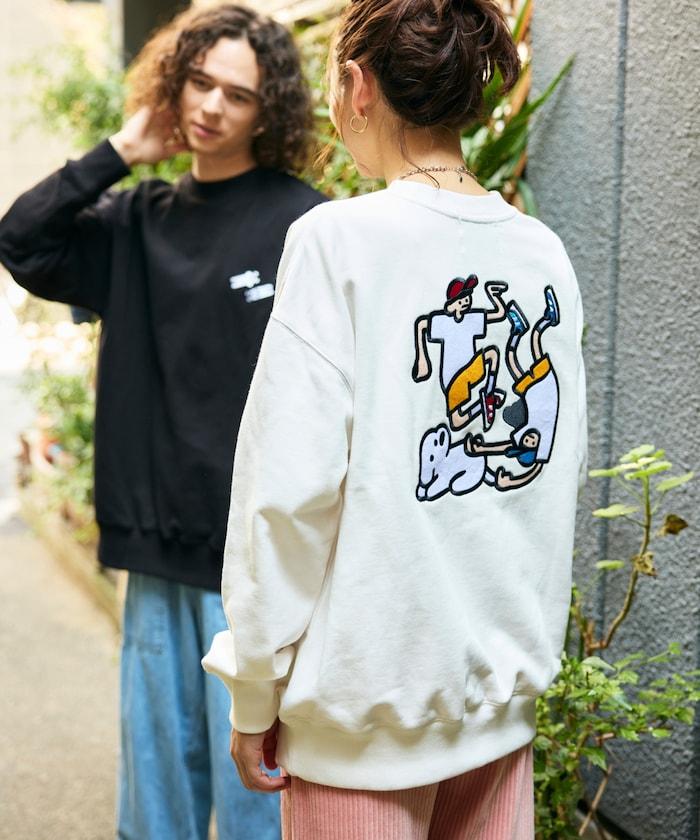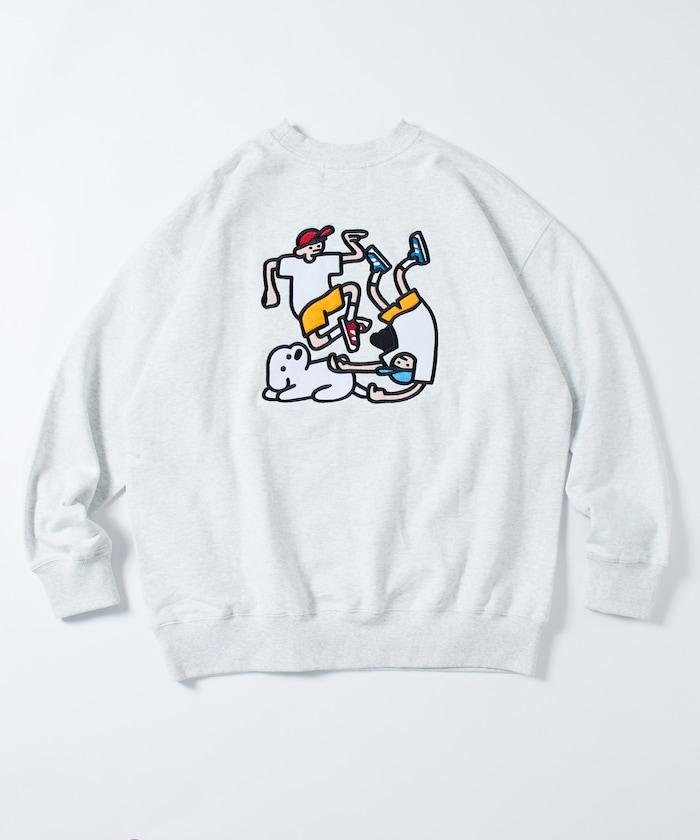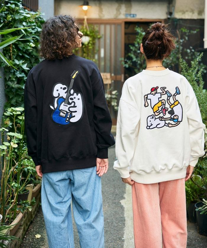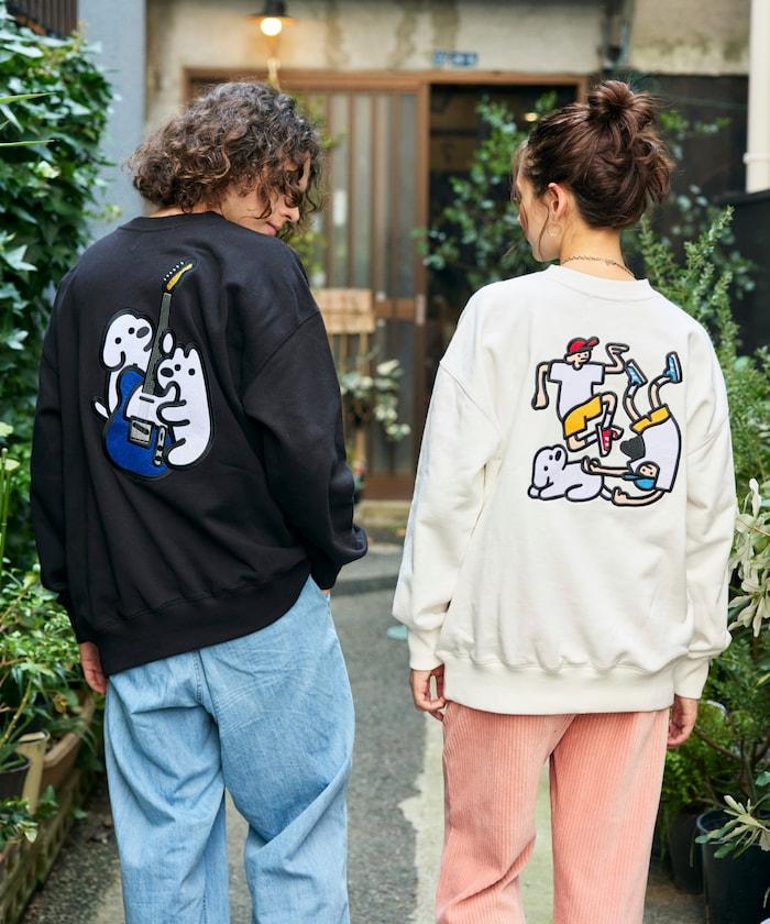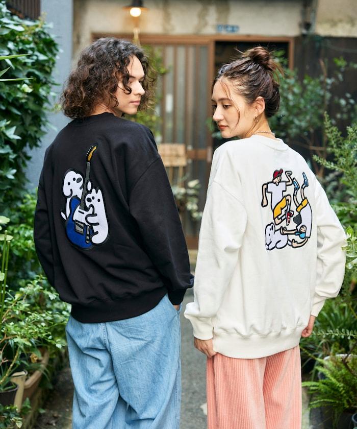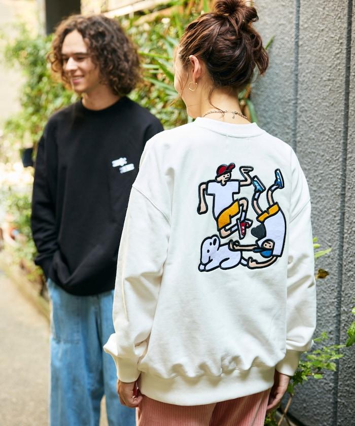 由活躍於國內外的插畫家 matsui 為 FREAK'S STORE 特別定製的 "Dance "背部毛氈刺繡圓領運動衫。