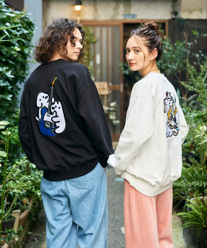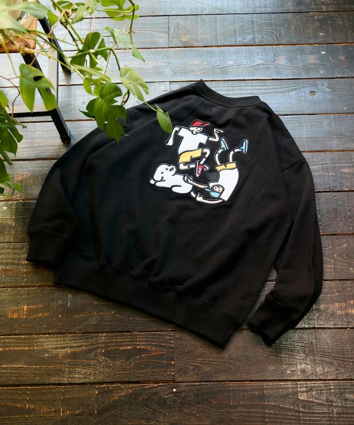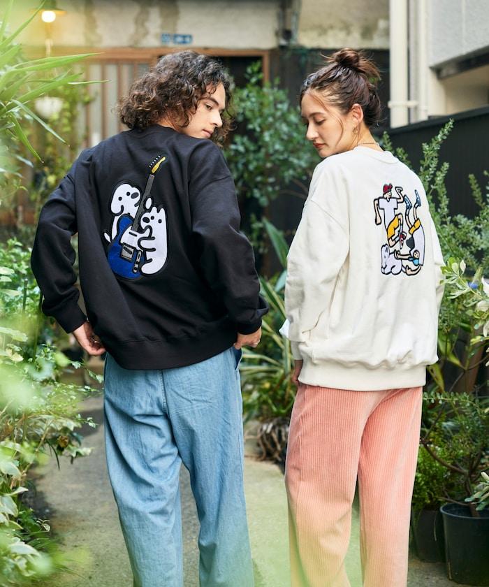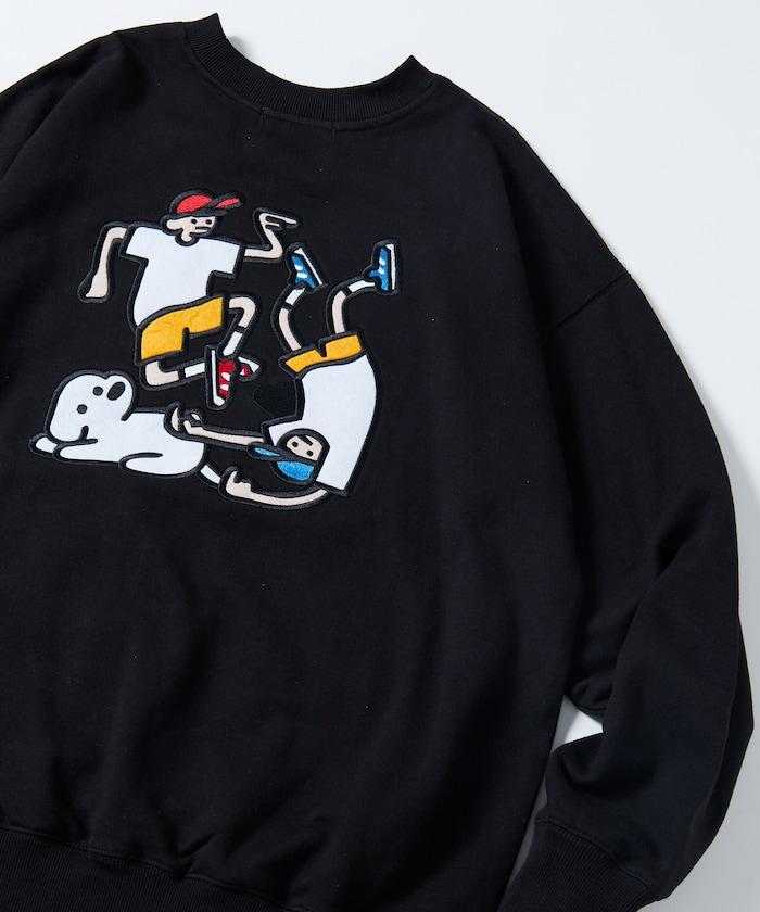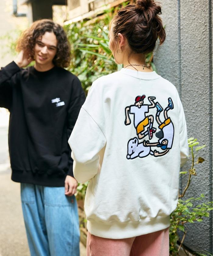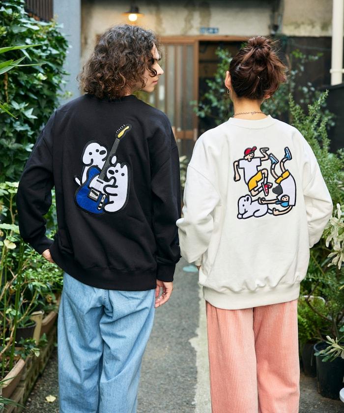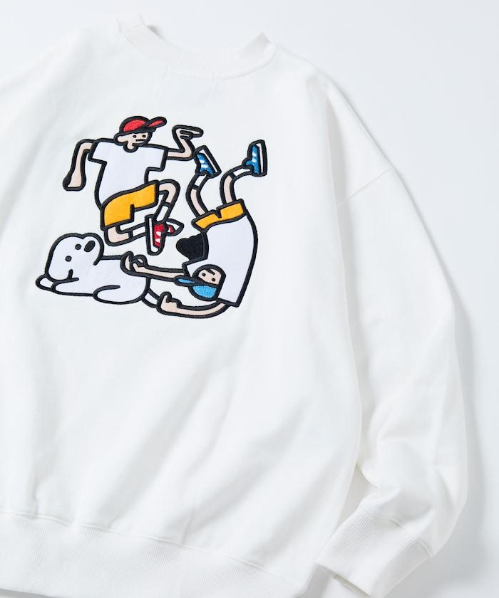 由活躍於國內外的插畫家 matsui 為 FREAK'S STORE 特別定製的 "Dance "背部毛氈刺繡圓領運動衫。