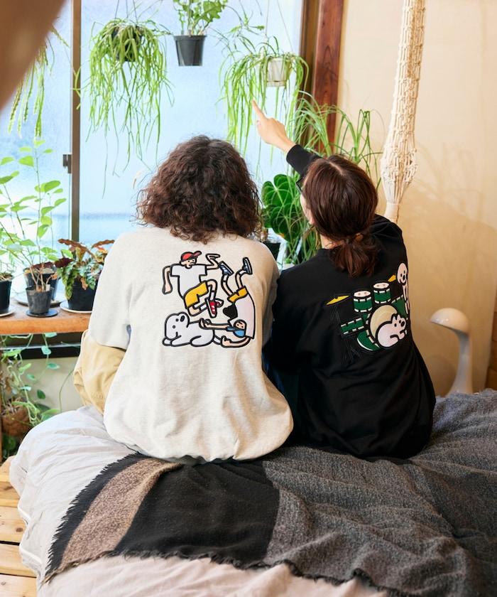 活躍於國內外的插畫家matsui特別訂製的 "Dance "背氈刺繡圓領運動衫。