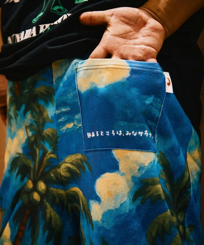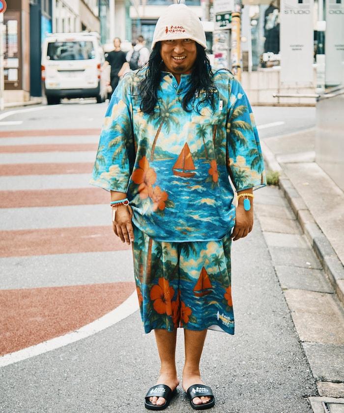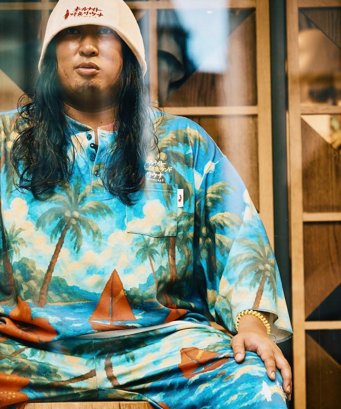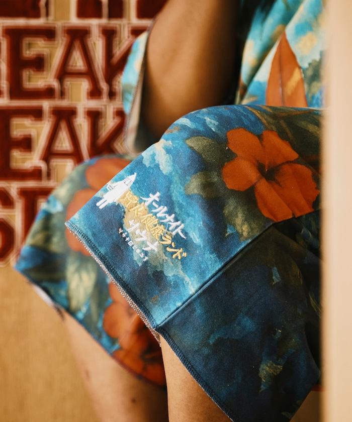 我還注意了顏色和圖案。我還要求將黃色命名為'腳墊黃'。我喜歡鋪在腳下的厚墊子的深黃色,我想把桑拿融入我的日常生活。還有 "健康樂園花藍"。日本各地的健康中心和健康度假村的服裝顏色都帶有熱帶風情,就像這阿羅哈一樣。我們想重現這種感覺,所以請他們加入了這種色彩"。