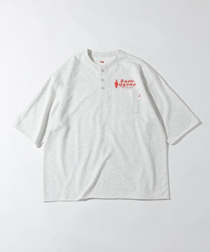 胸前印有 SAUVENIR 標誌性單品 "All Night Sauna "和 "Stray Sauna "的合作標誌。