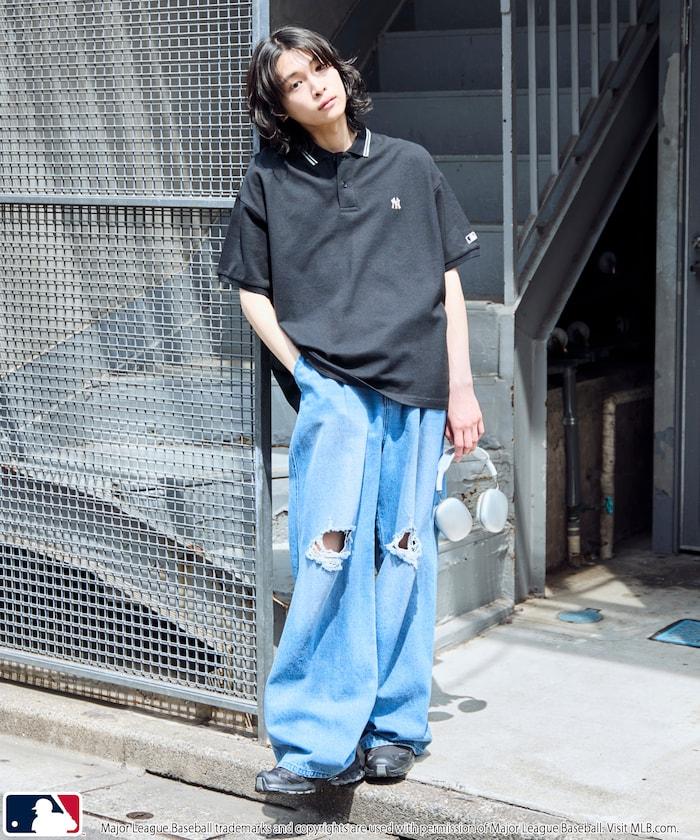 聯名 MLB 鹿子紋 立領短袖Polo衫