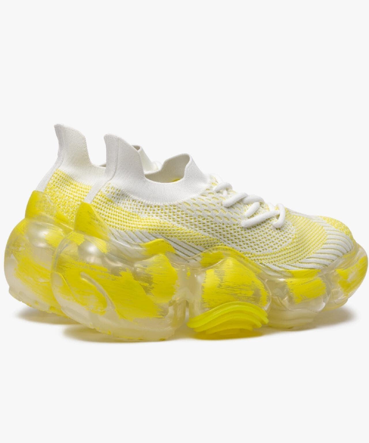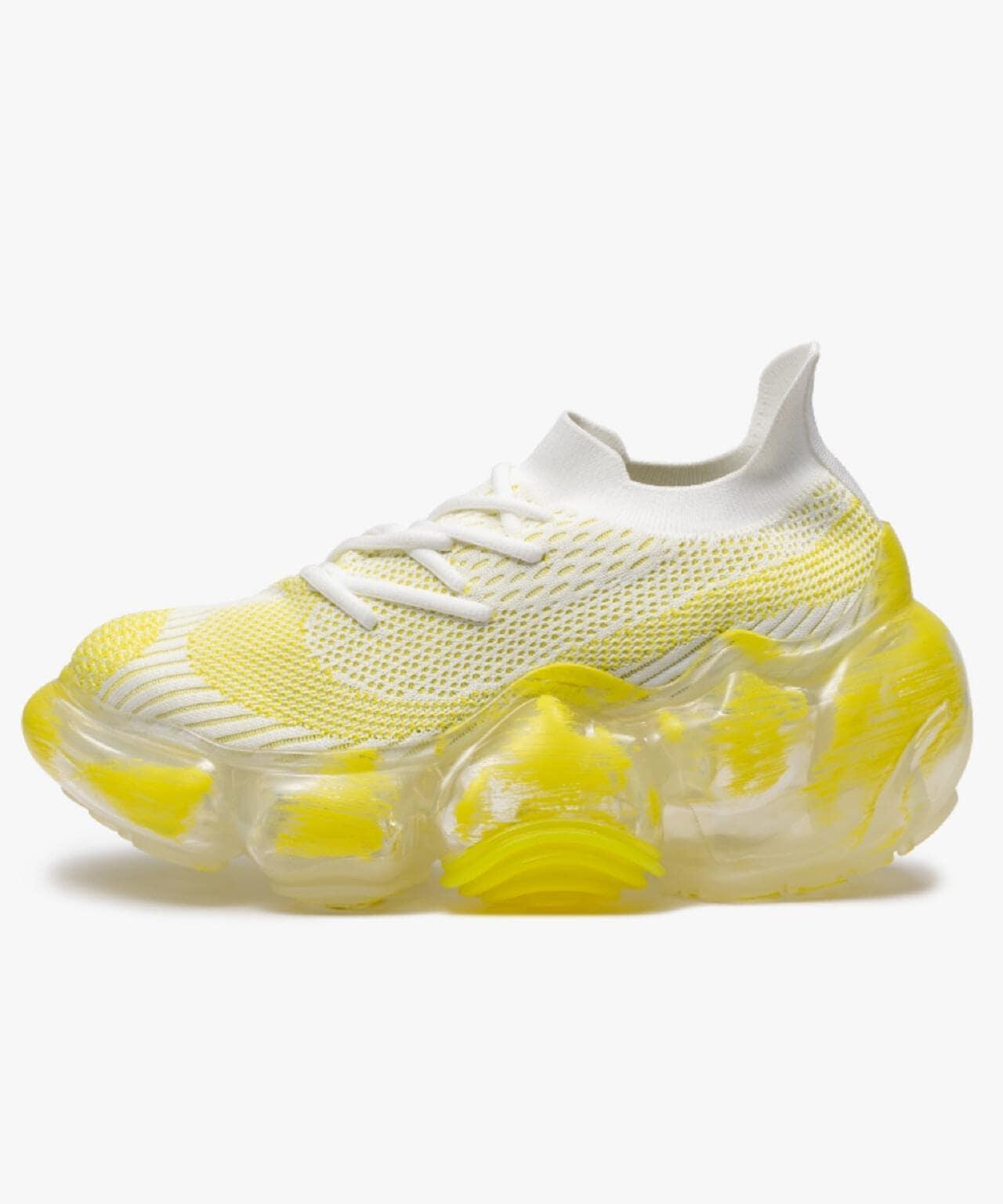 ROYAL FLASH 特別訂製產品在新版流行款 MOOPIE 的基礎上,我們特別訂製了一款產品。鞋面的針織色和鞋底的塗料都是 ROYAL FLASH 的👍顏色。鞋面纖細,與寬大的鞋底形成鮮明對比。尖銳的外形、腳背和從腳趾到腳跟的平緩坡度給人以優雅、修長的印象,這是現有運動鞋所沒有的。鞋跟高度約為 7 厘米,儘管鞋底很厚,但整個鞋底都能支撐身體,提供恰到好處的緩衝。