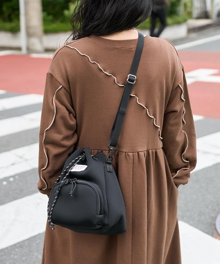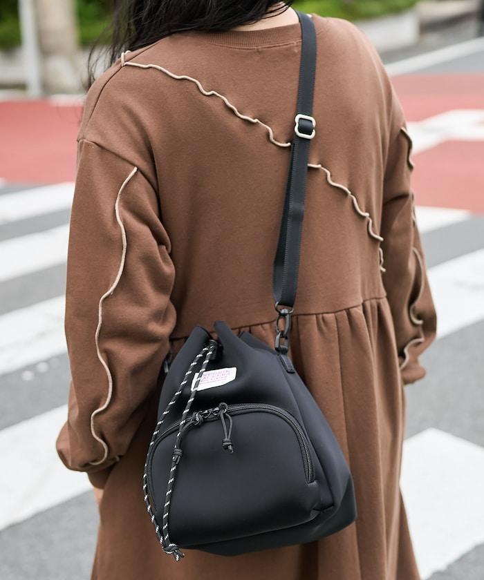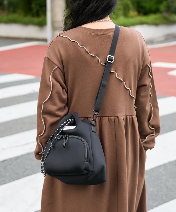 拉繩單肩包,啞光質感,柔軟清爽,張力適中。