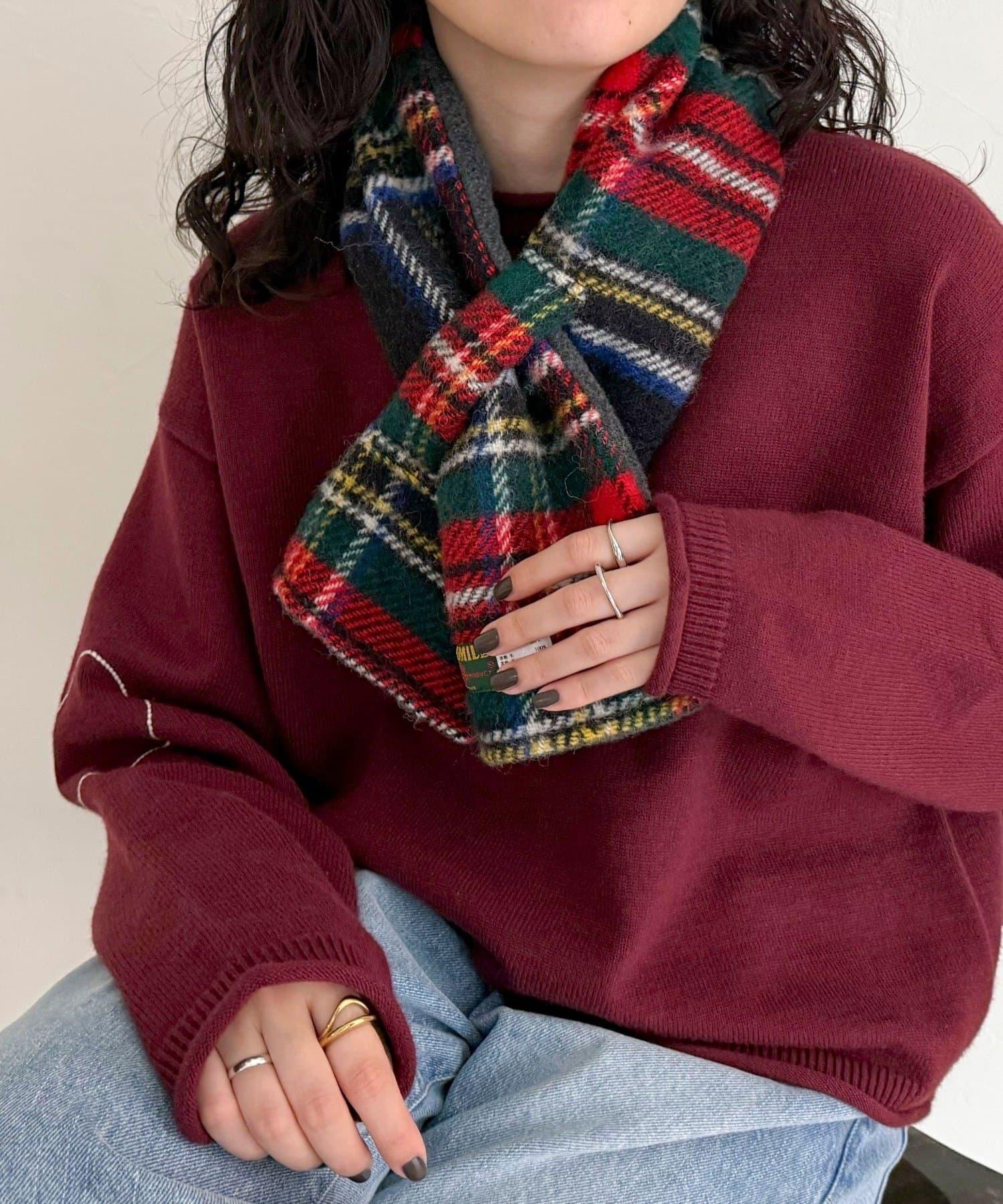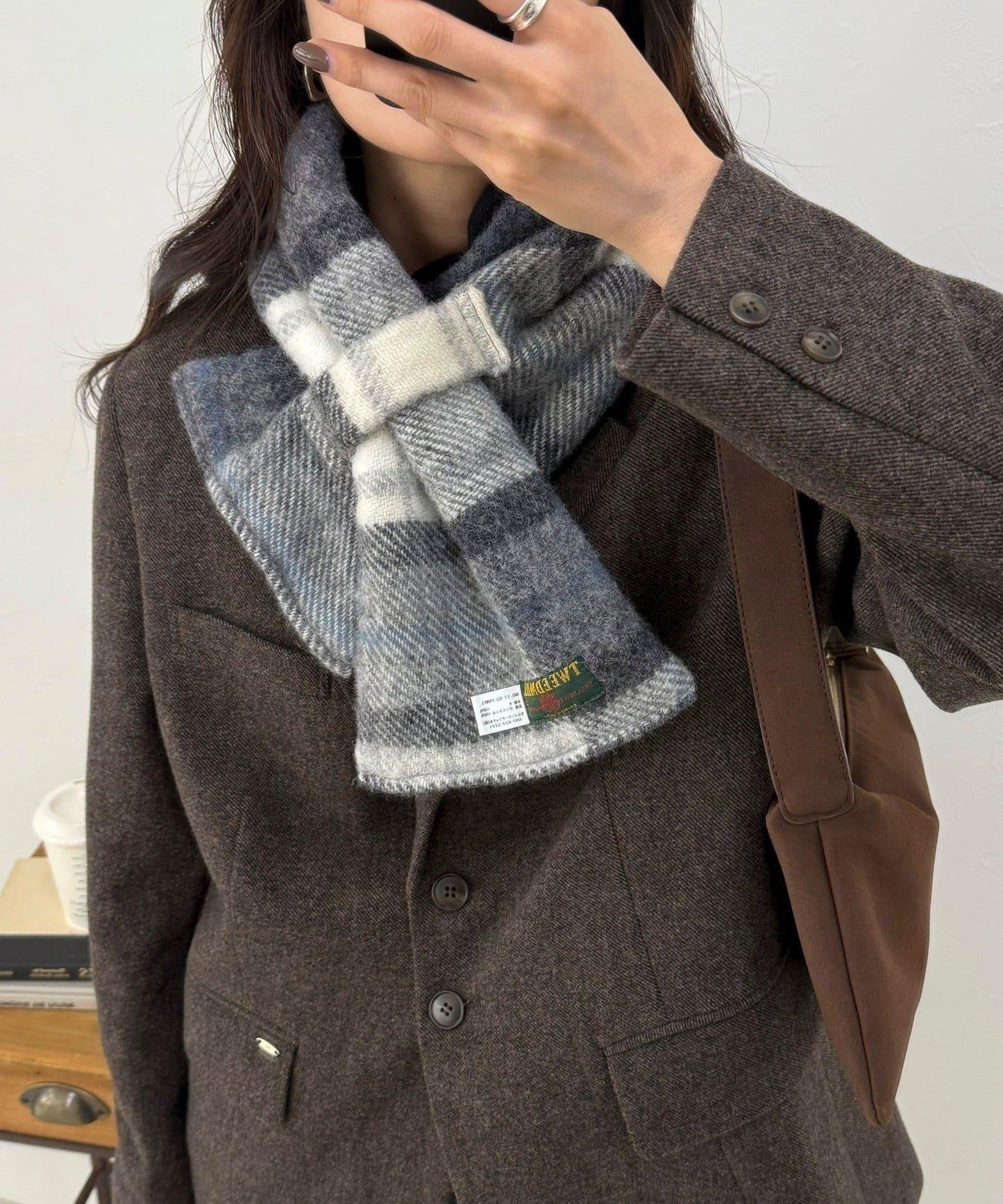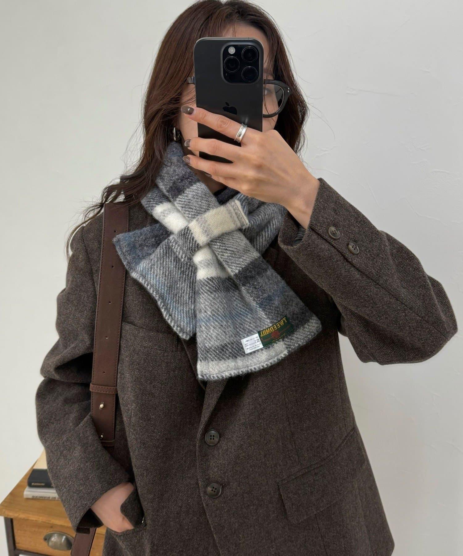 冬季必備!格紋點綴的羊毛圍巾。