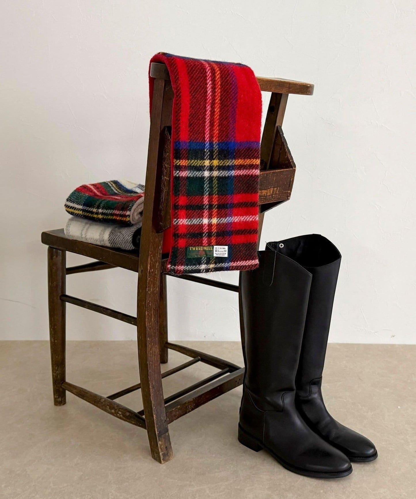 《聯名》【TWEED MILL】羊毛格紋雙面圍巾