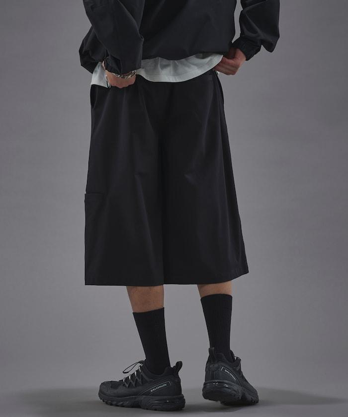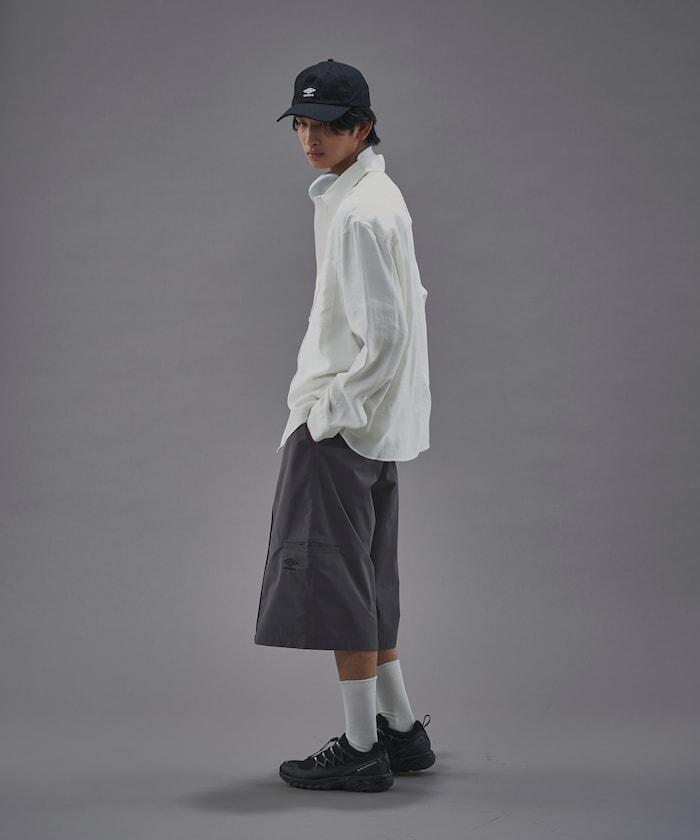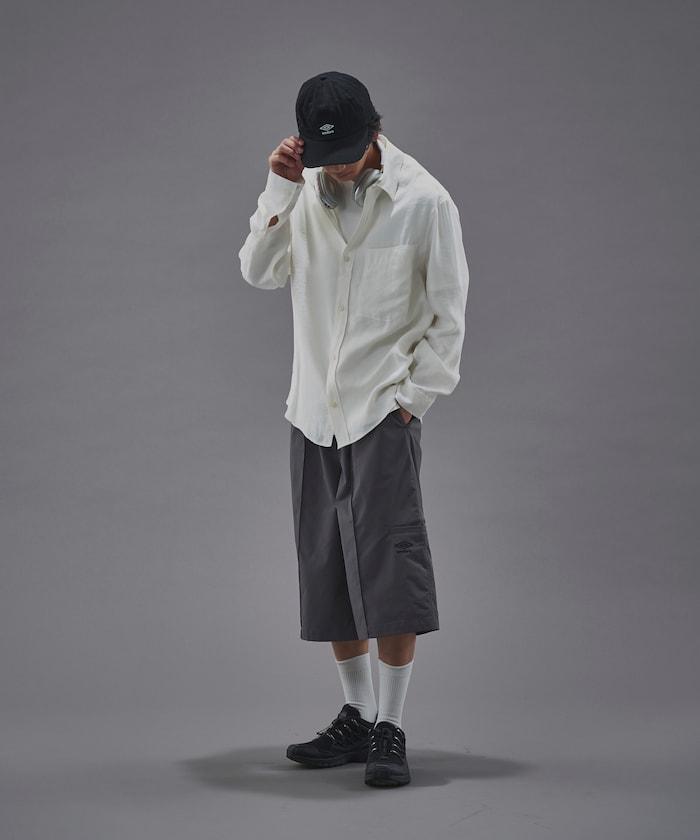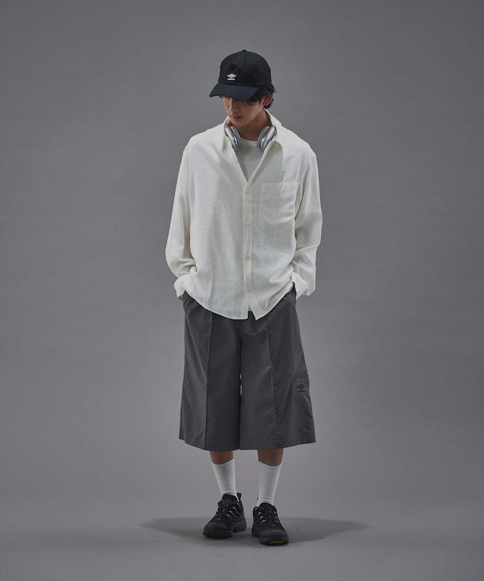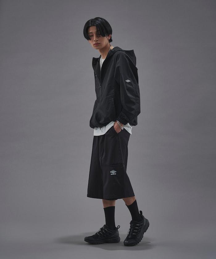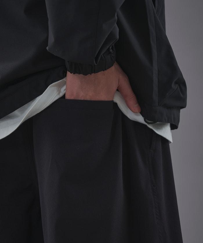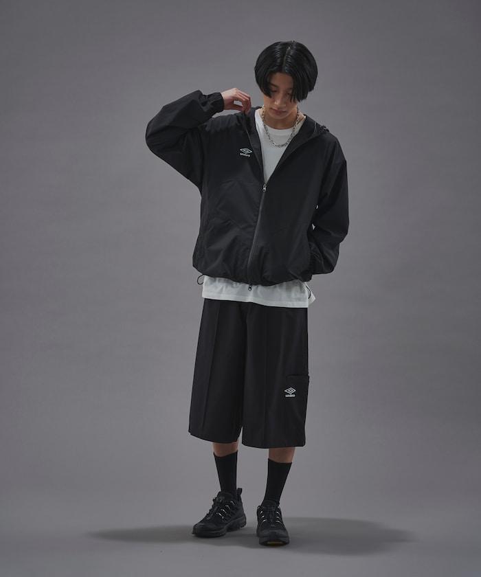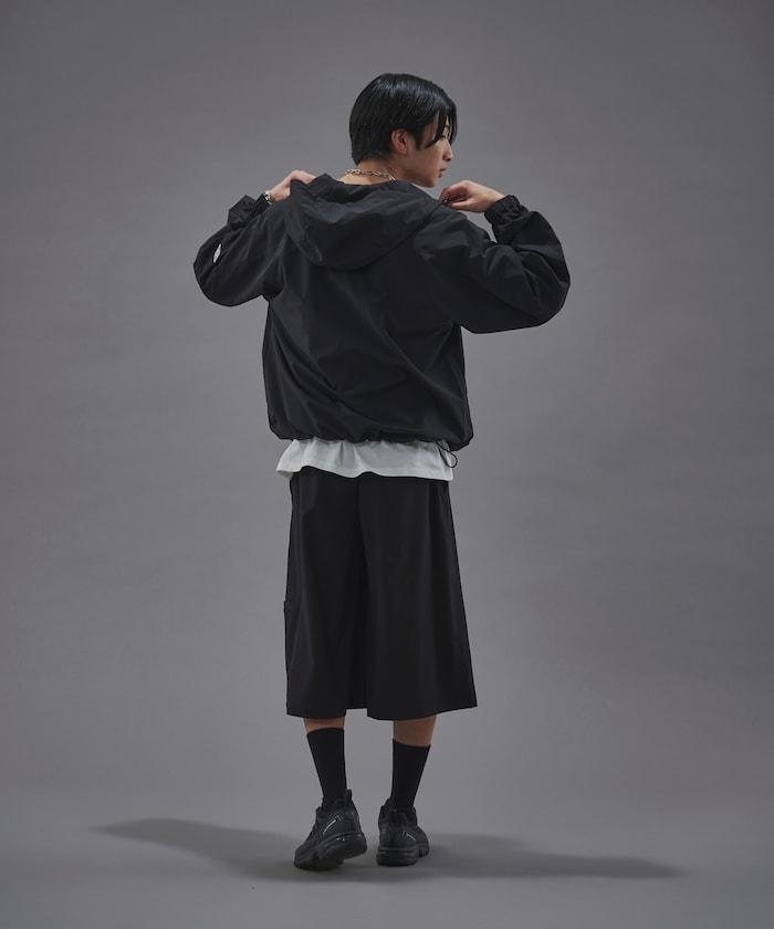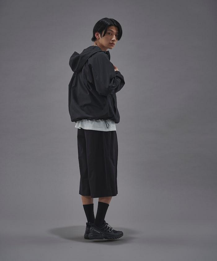 下身容量較大,可搭配簡單的 T 恤或襯衫作為上衣。也可搭配同材質的連帽外套。