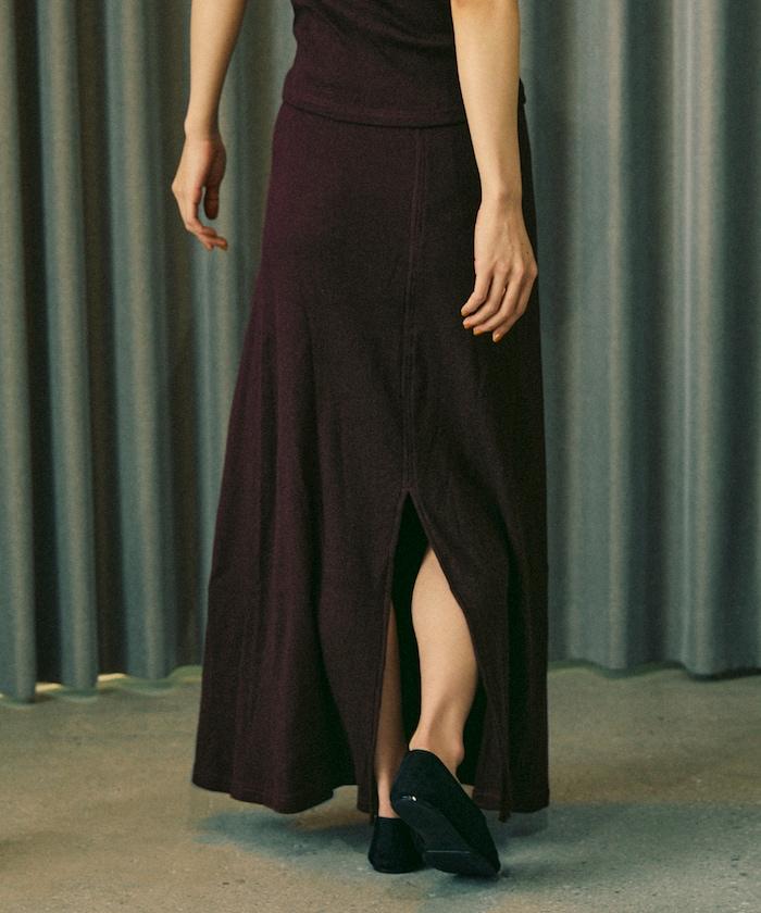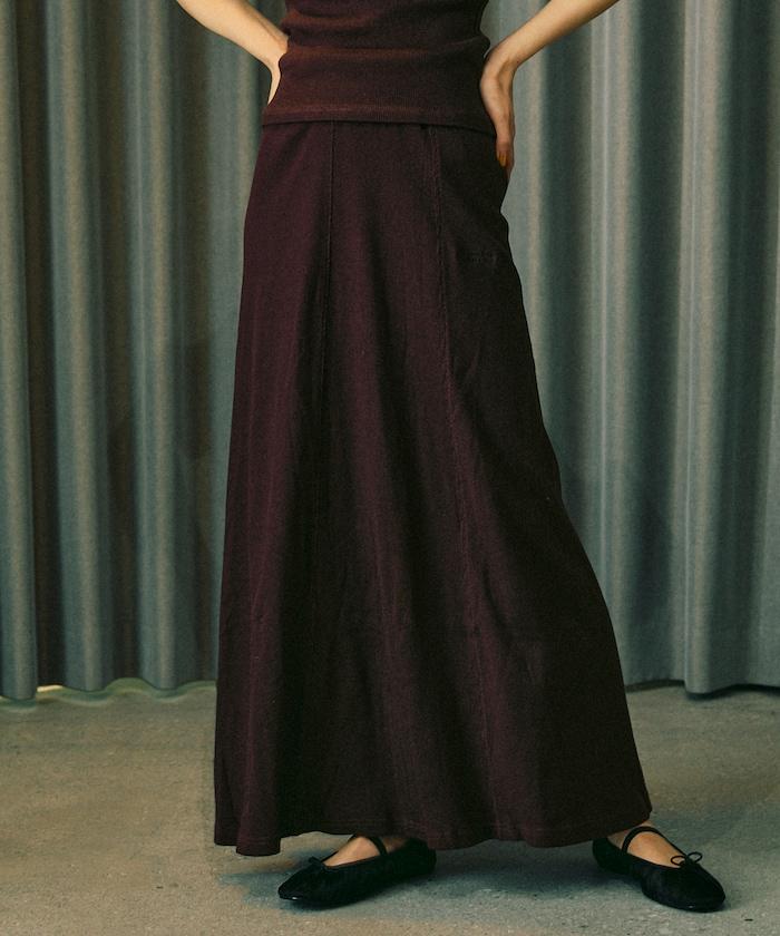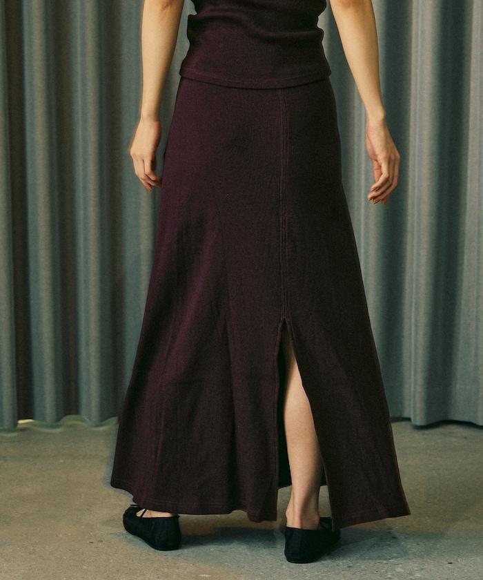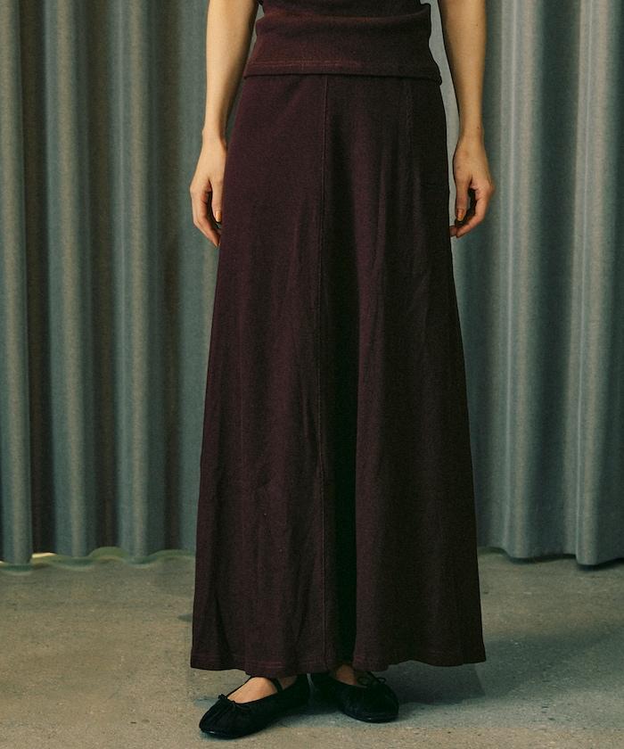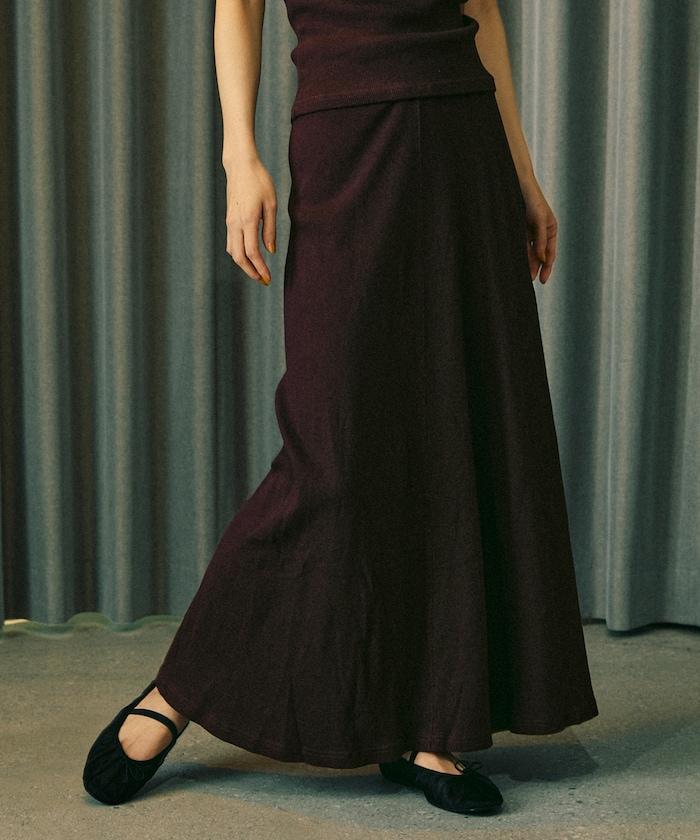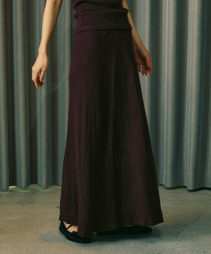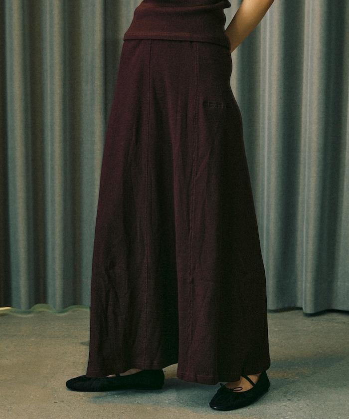 採用獨創羅紋面料製成的喇叭廓形短裙。