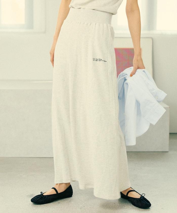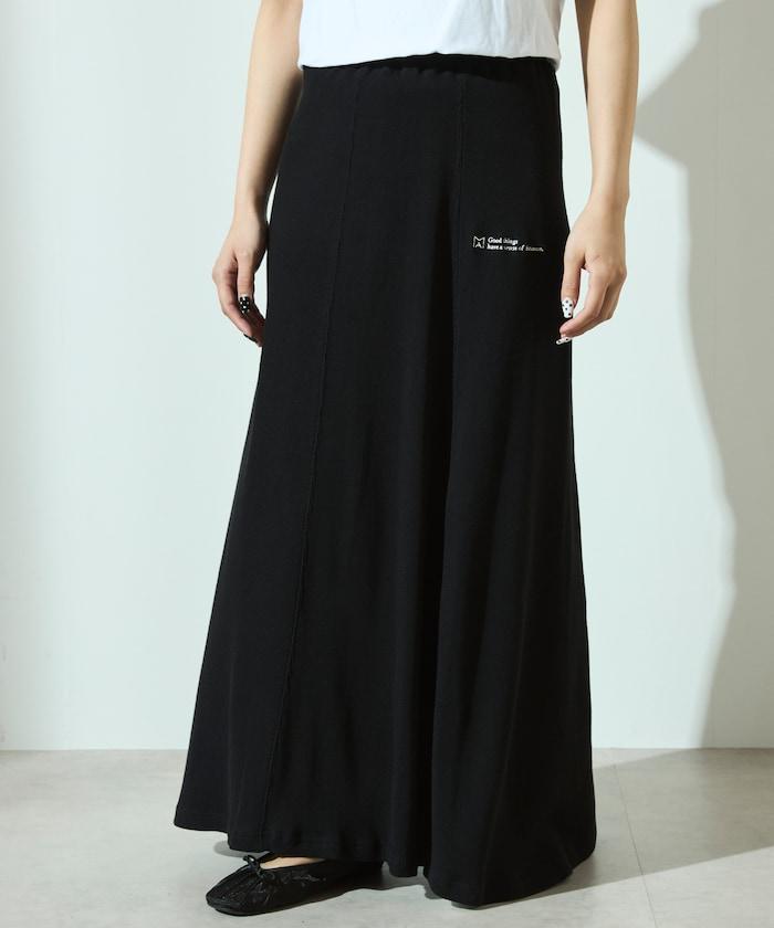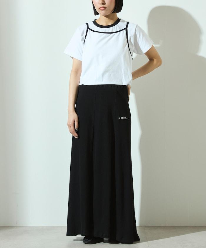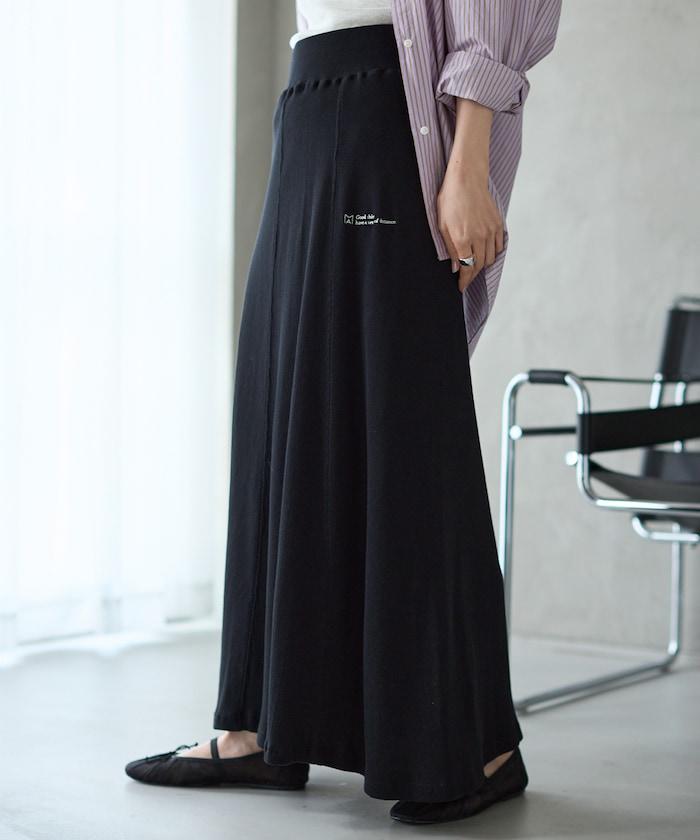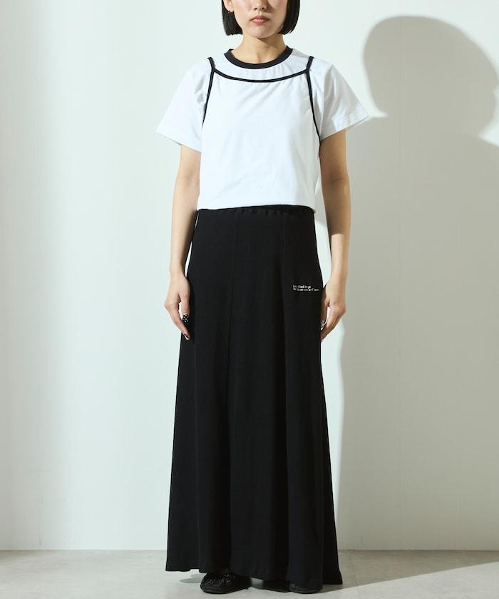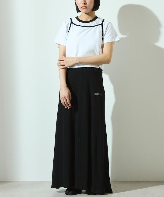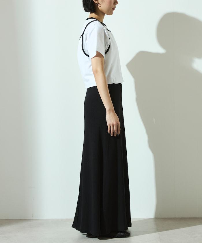 採用獨創羅紋面料製成的喇叭廓形短裙。