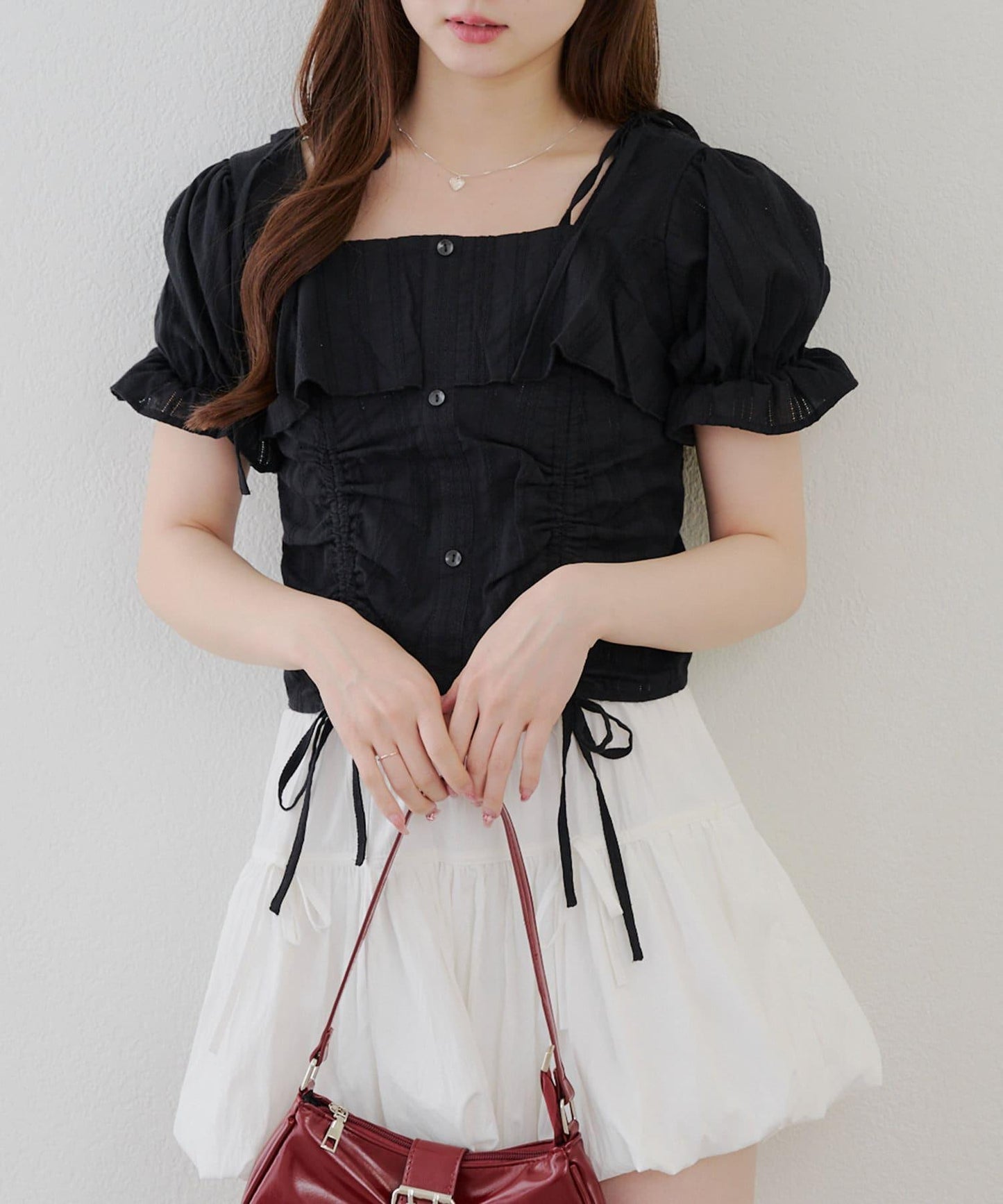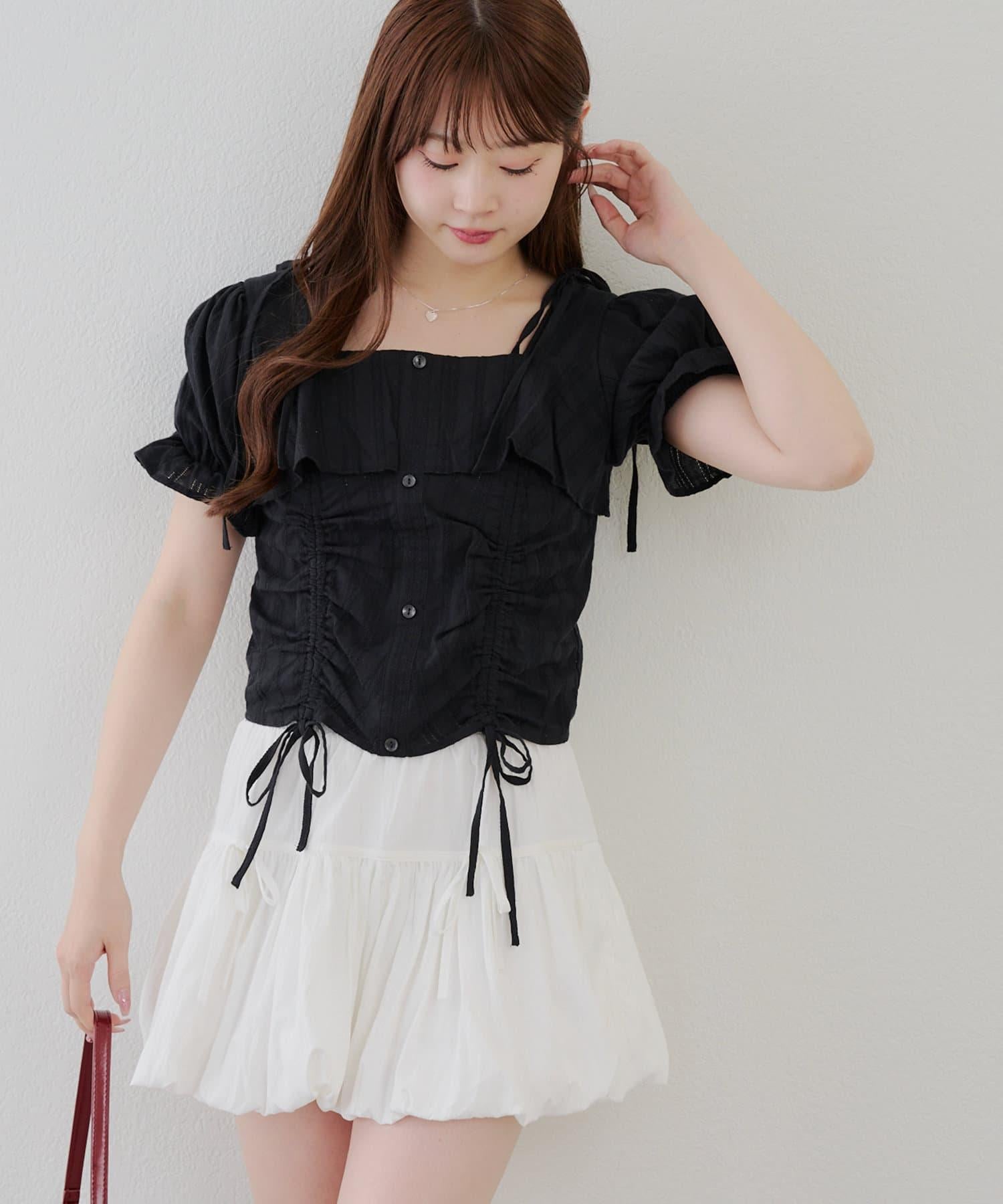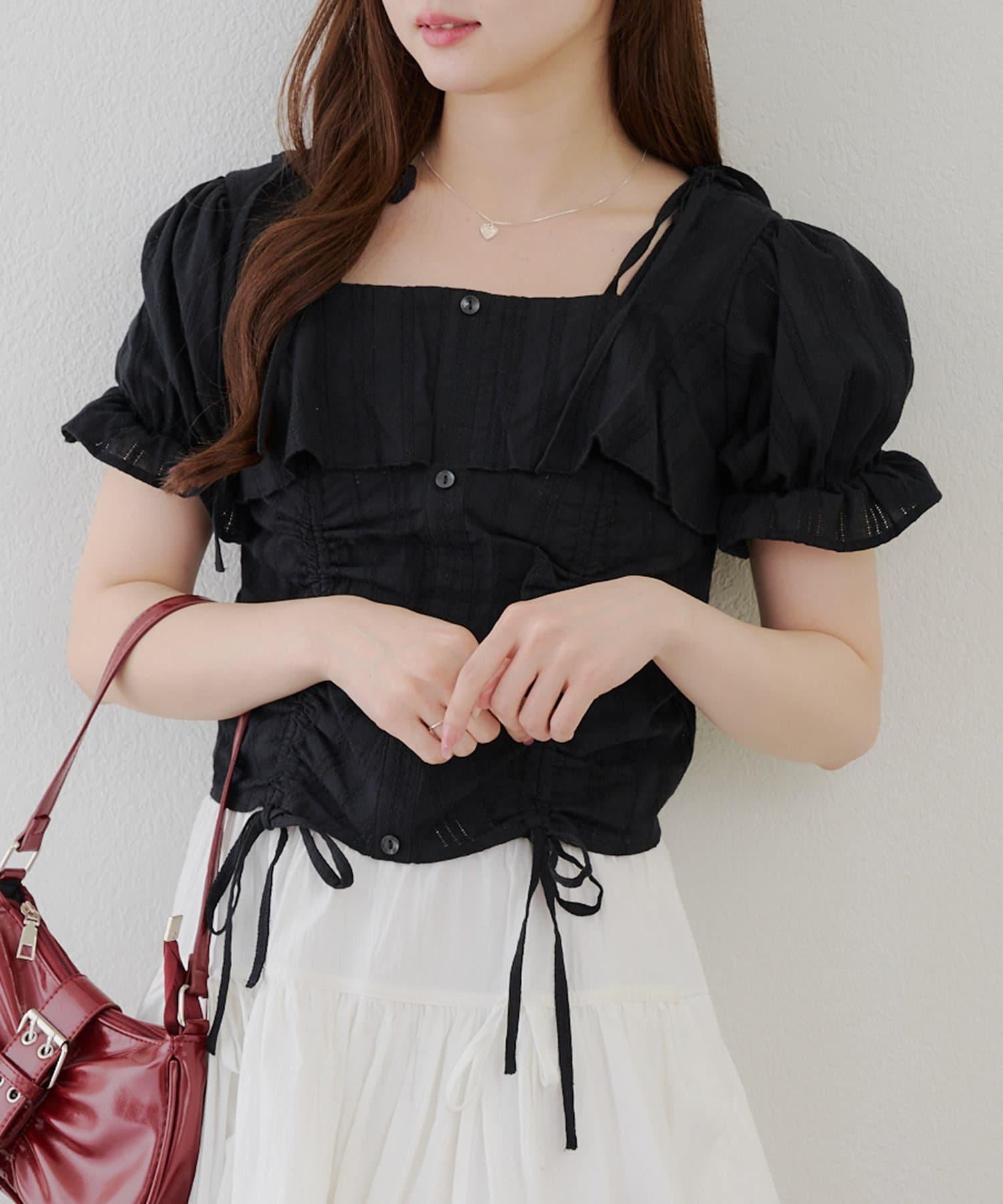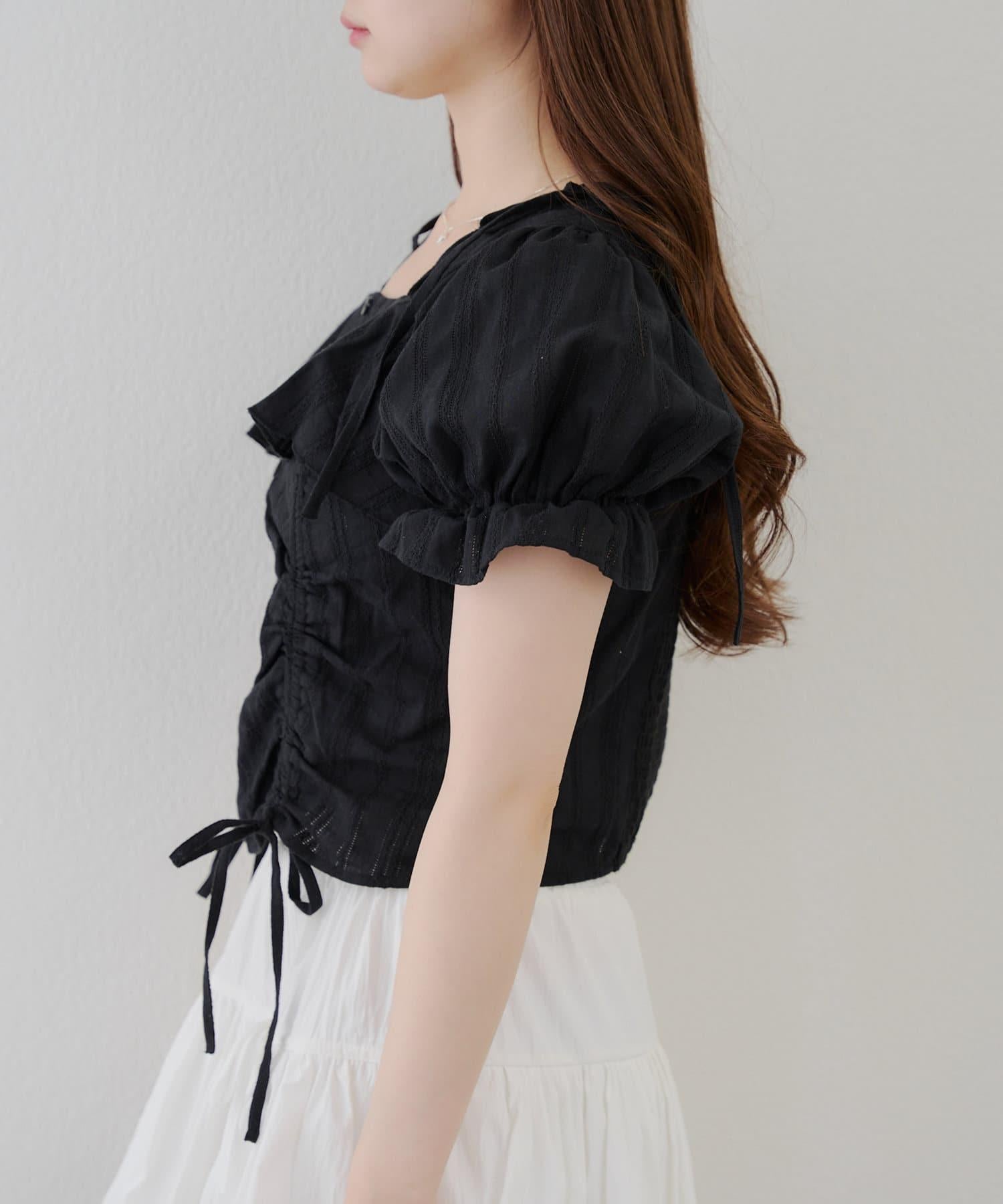 短袖上衣,帶有流蘇、抽繩等可愛細節。