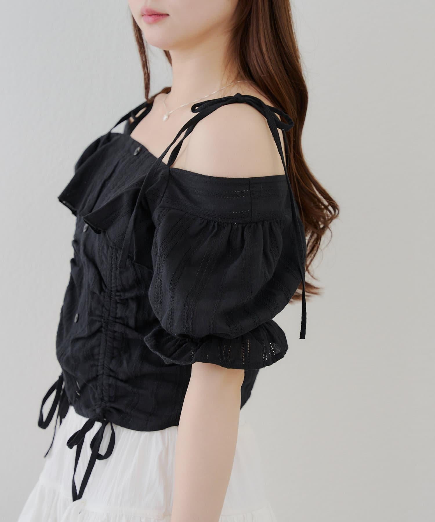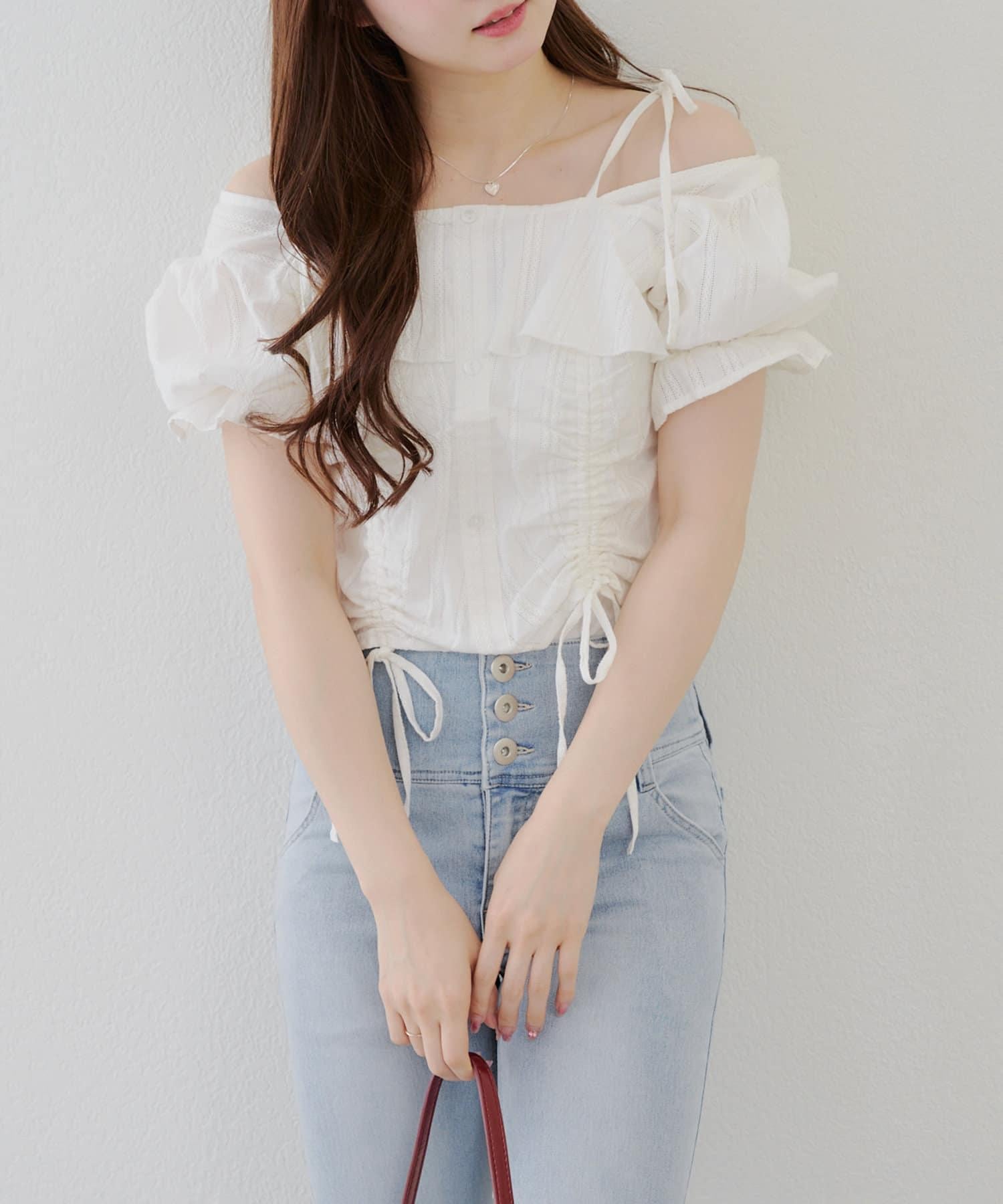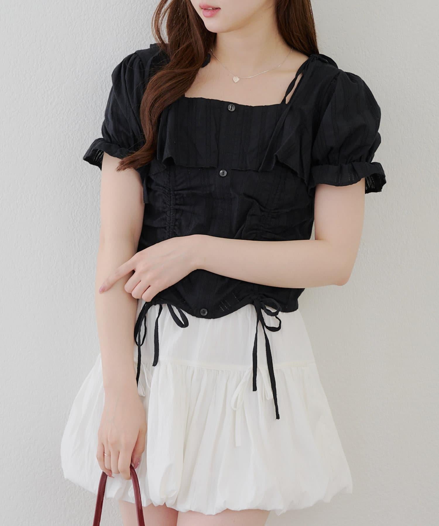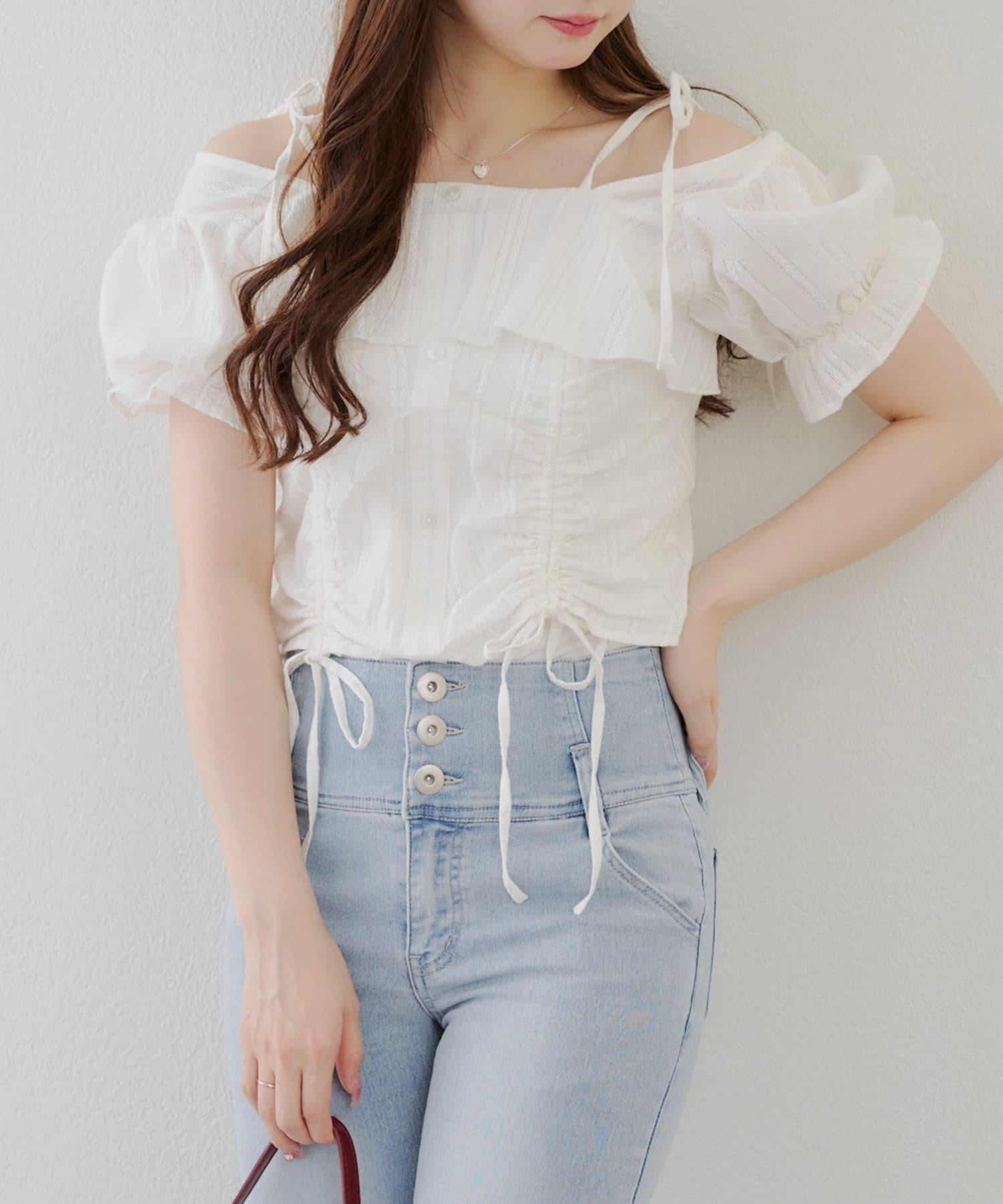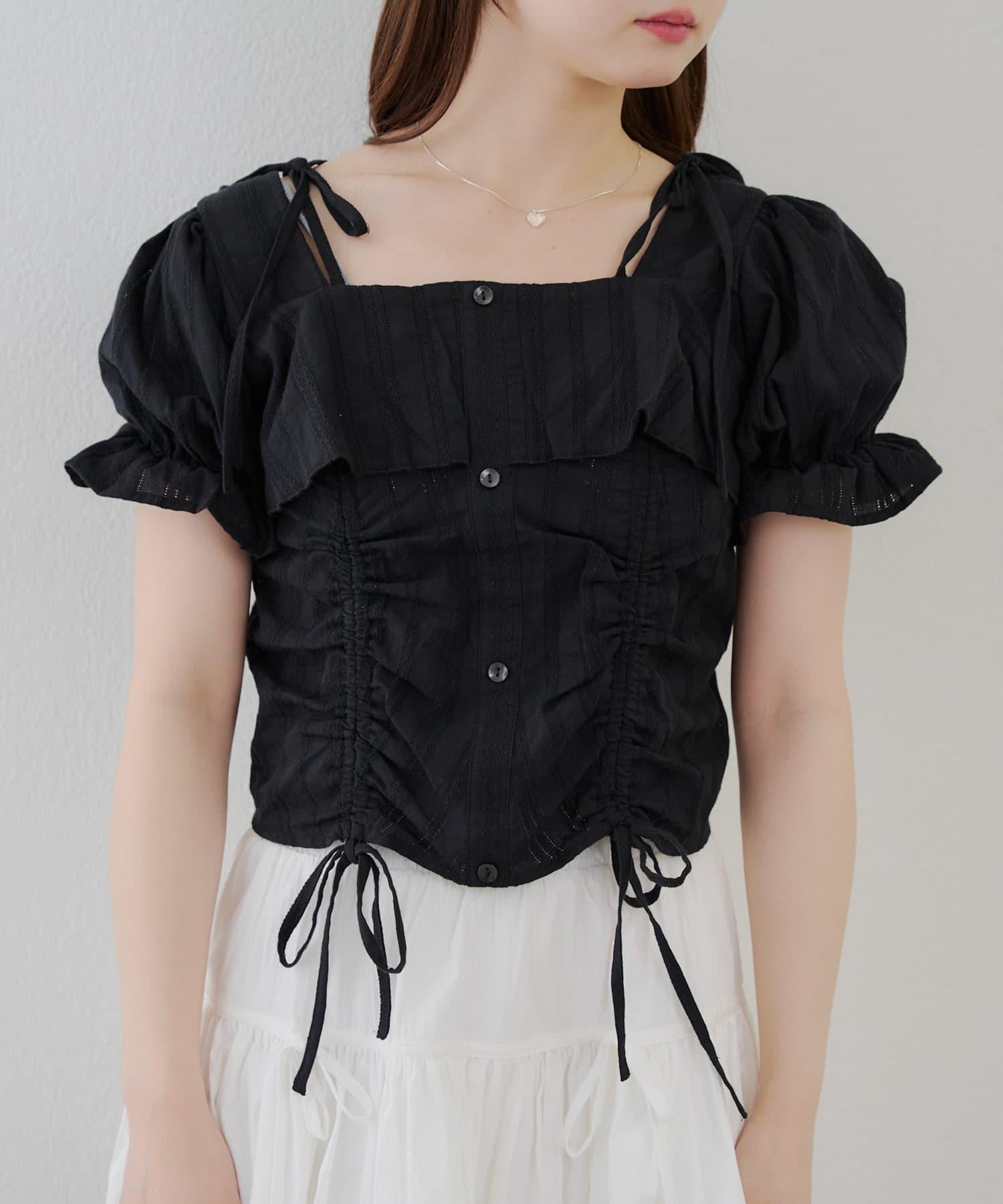 短袖上衣,帶有流蘇、抽繩等可愛細節。