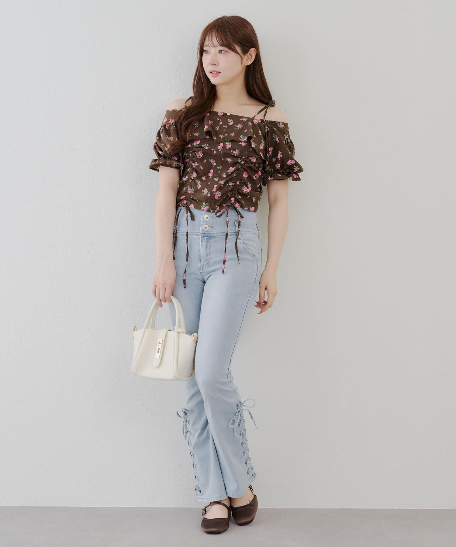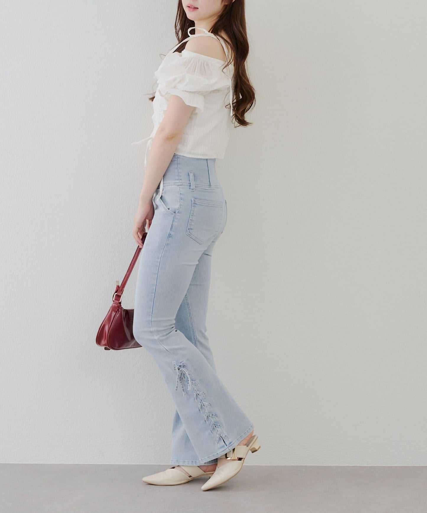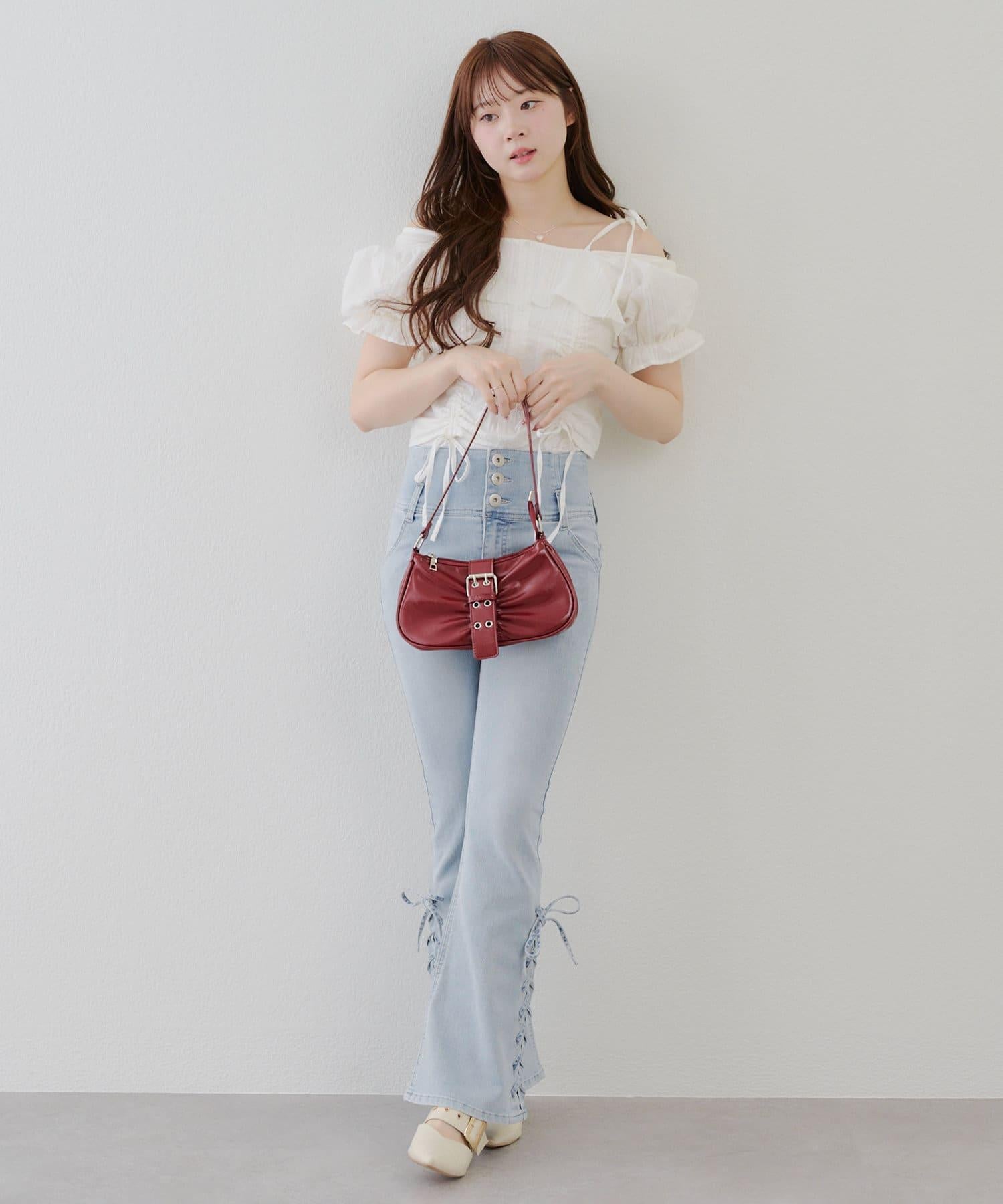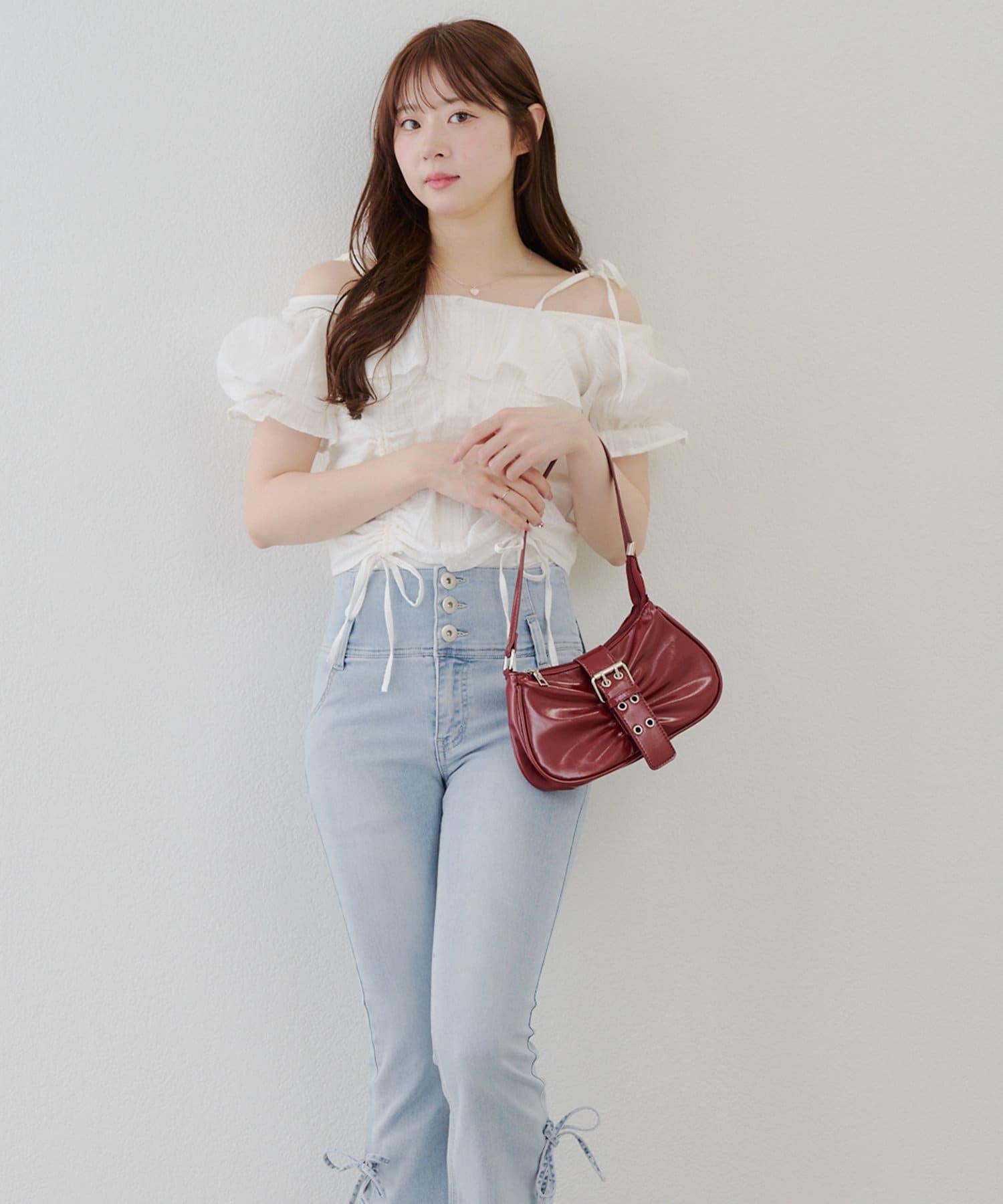 搭配喇叭廓形牛仔短褲,打造淑女休閒造型。