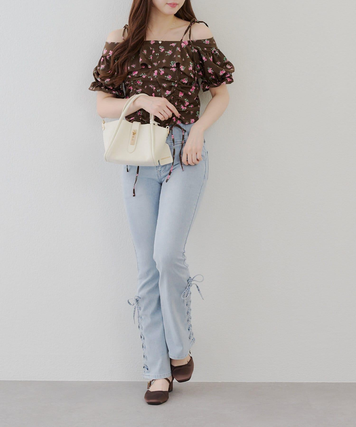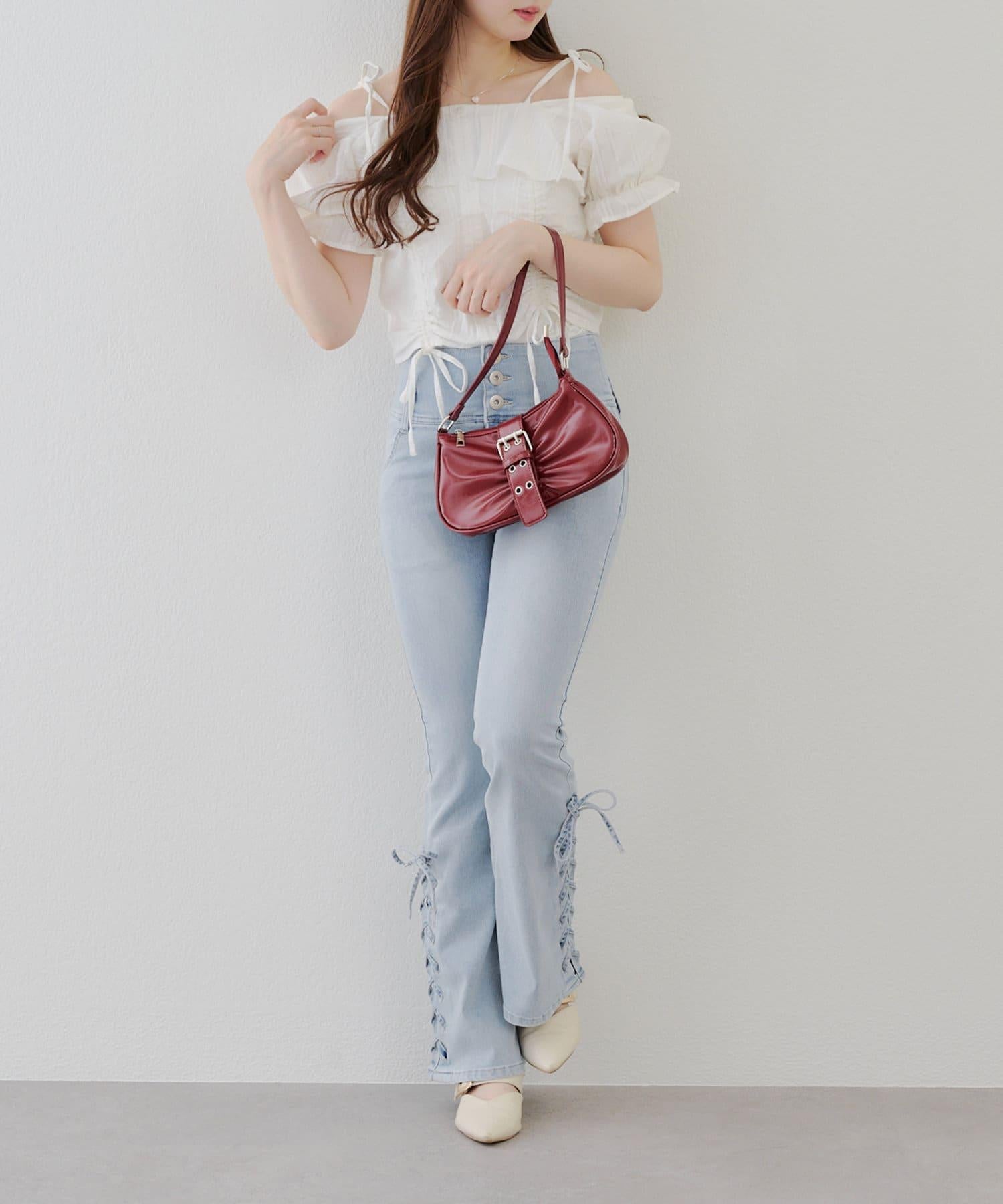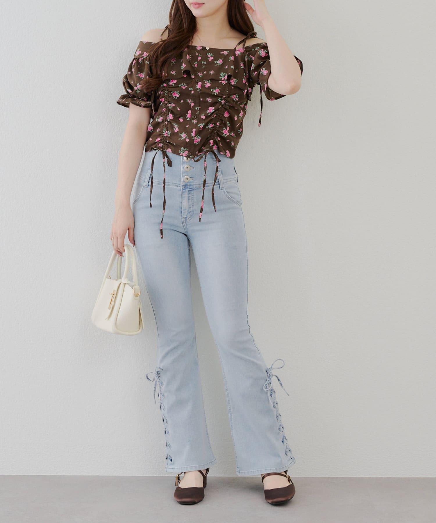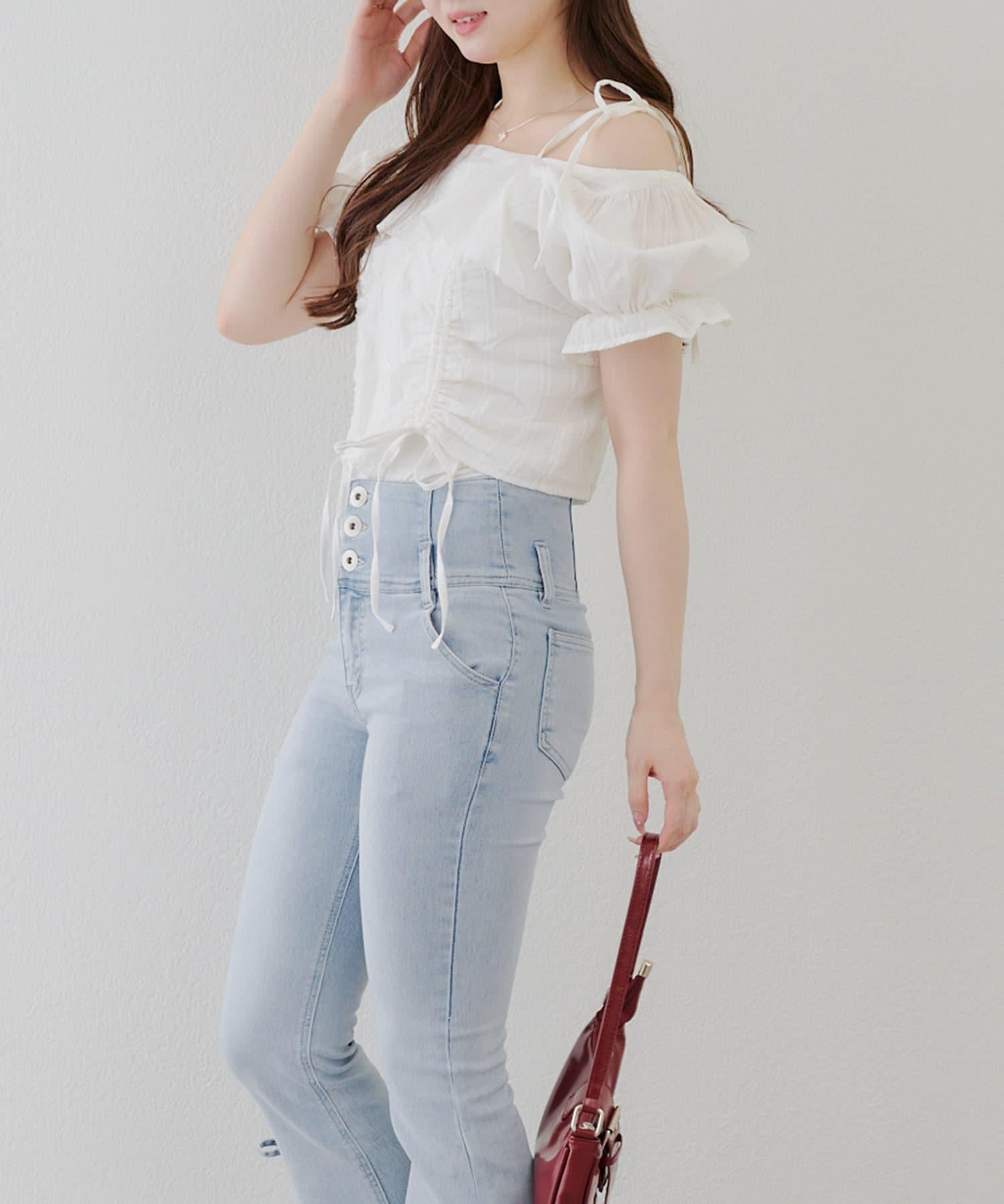 搭配喇叭廓形牛仔短褲,打造淑女休閒造型。