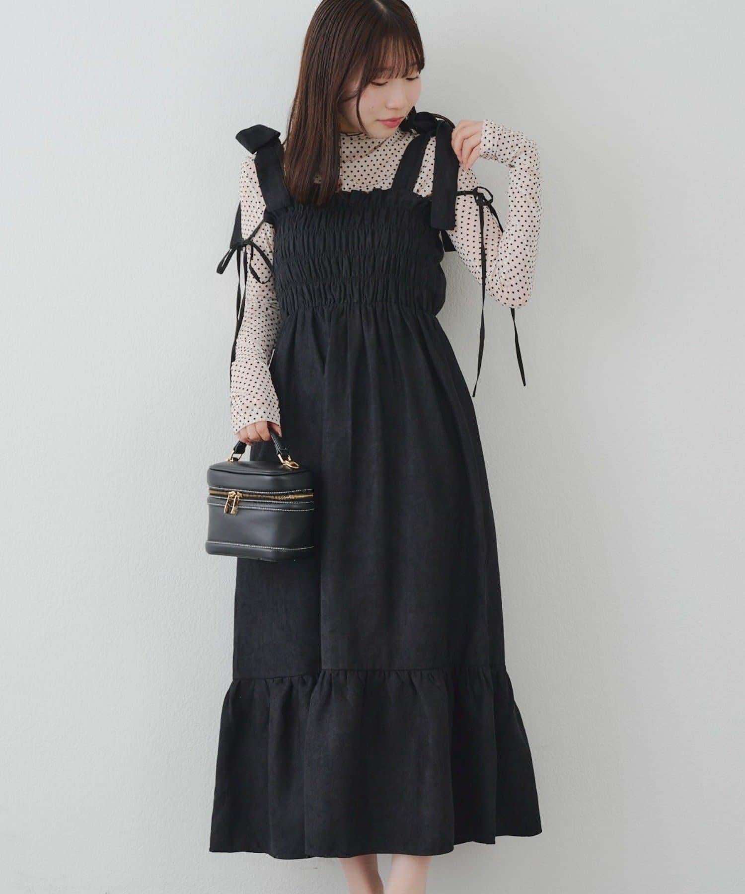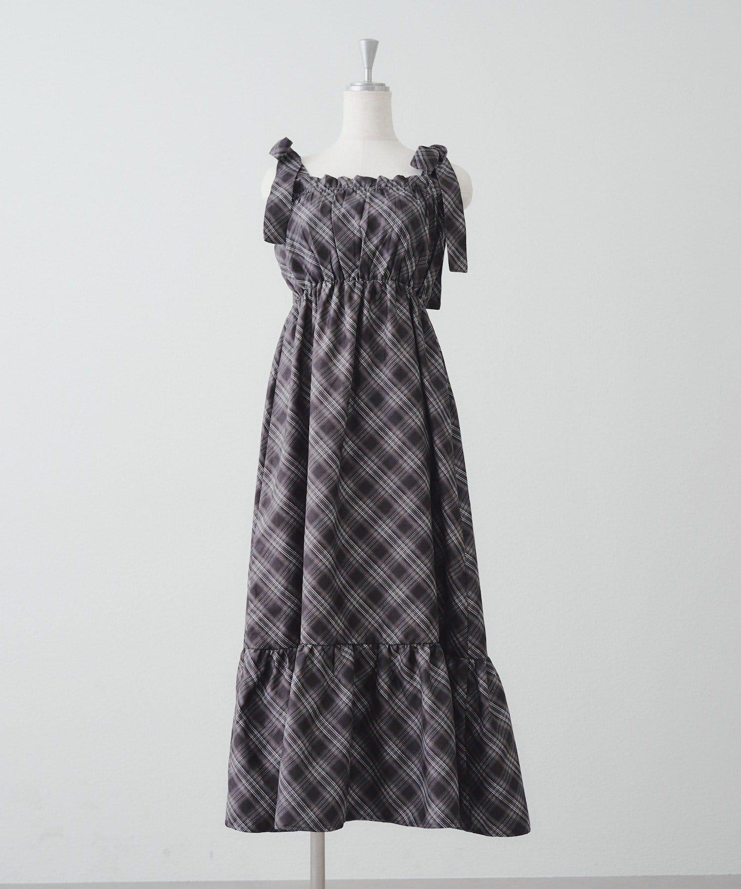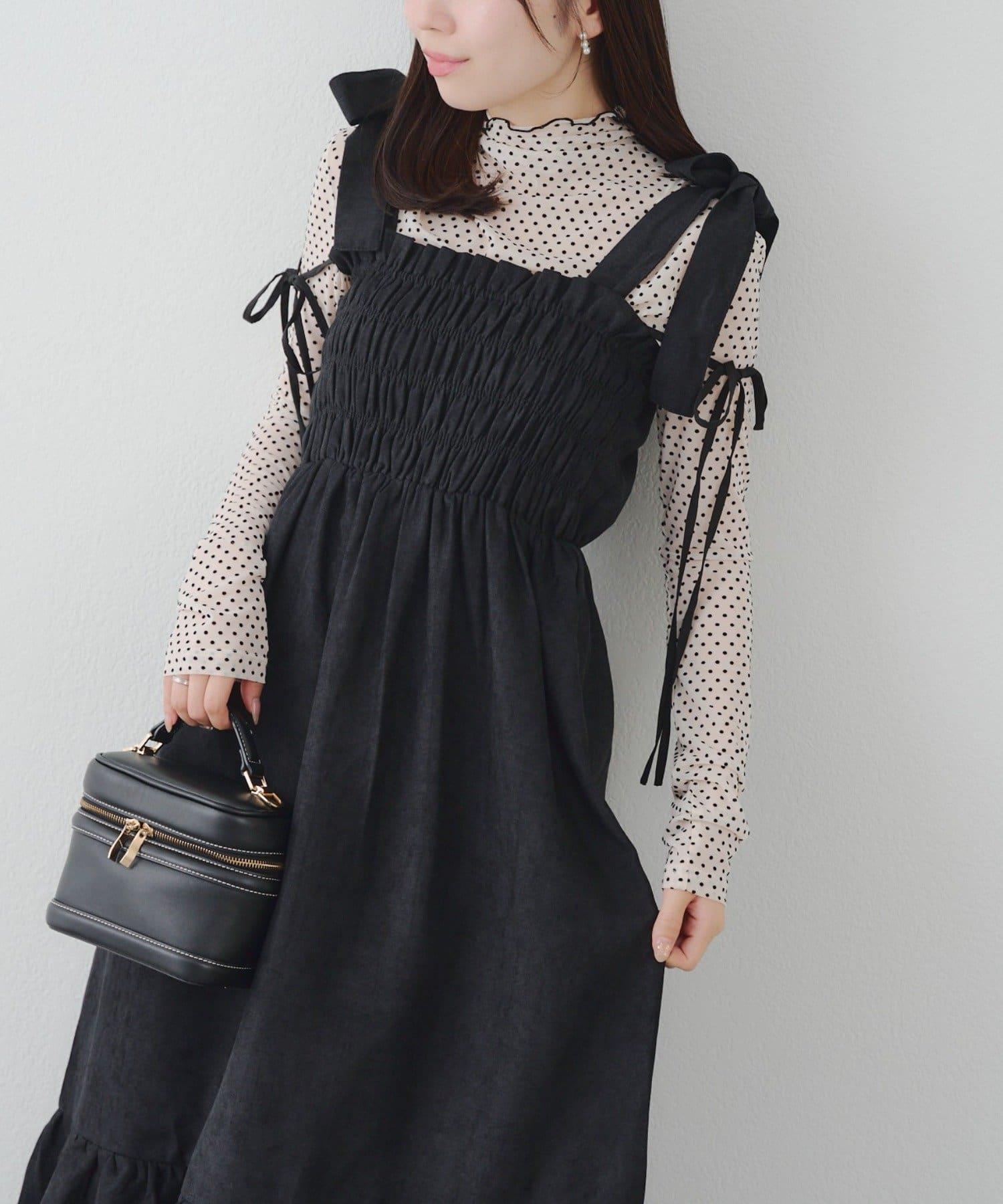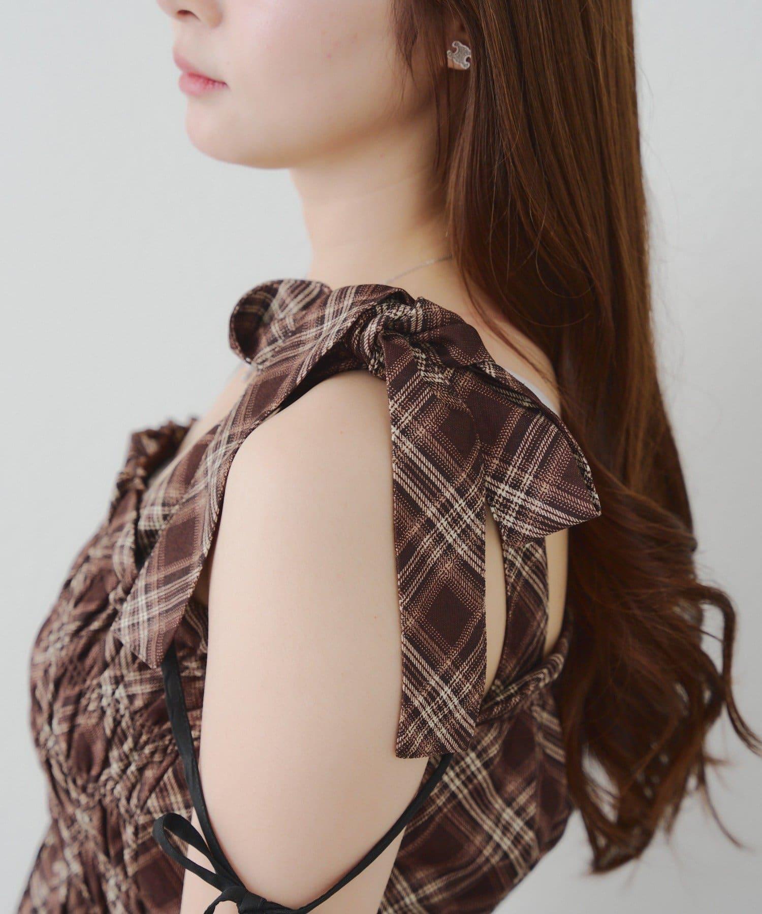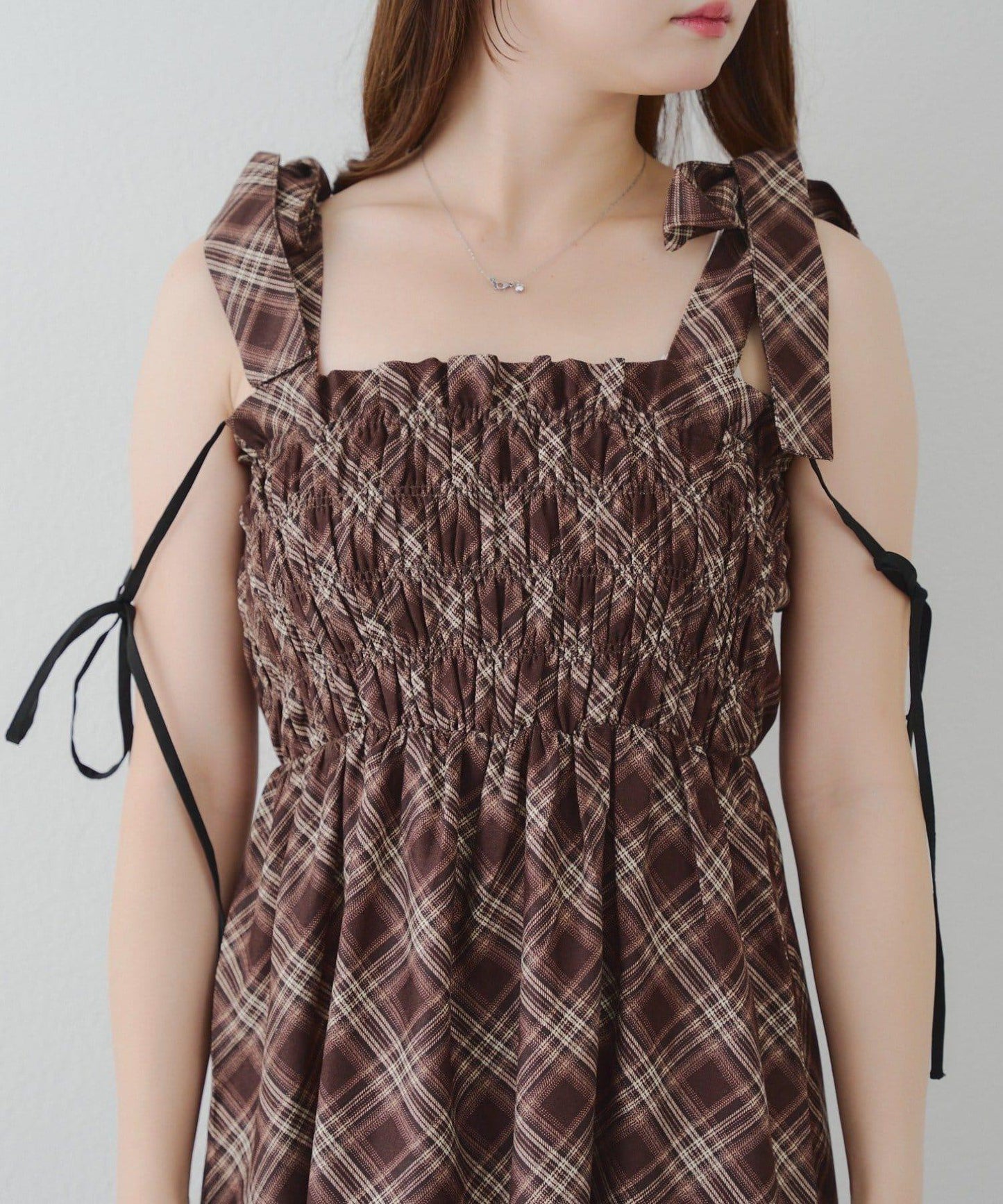 預約商品肩帶蝴蝶結褶皺連衣裙