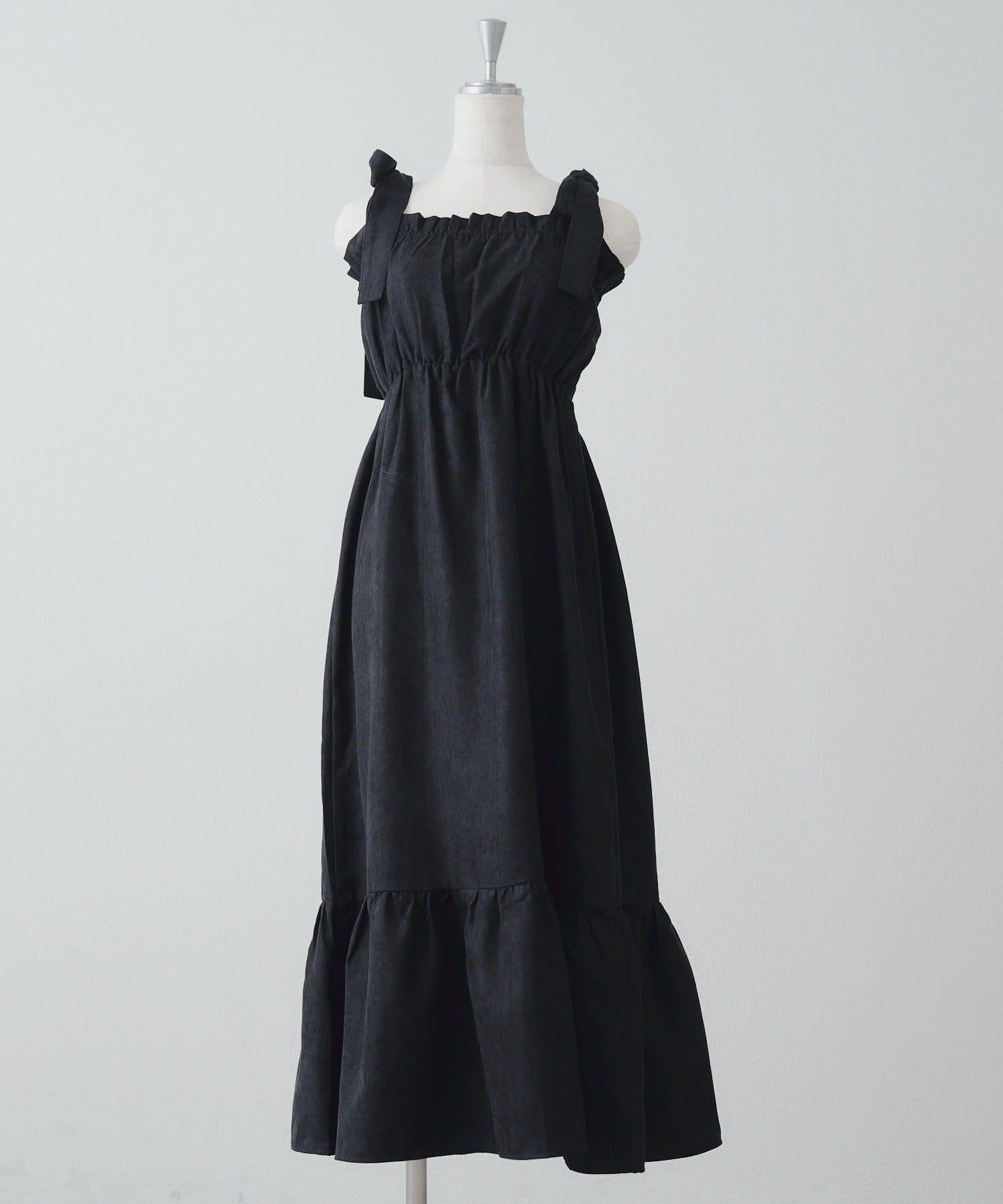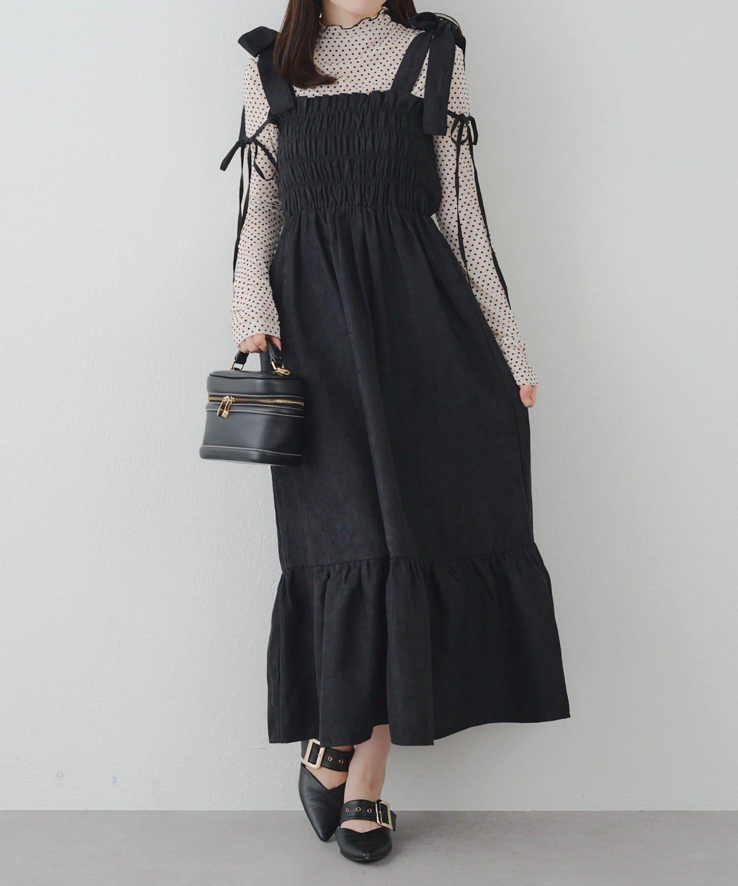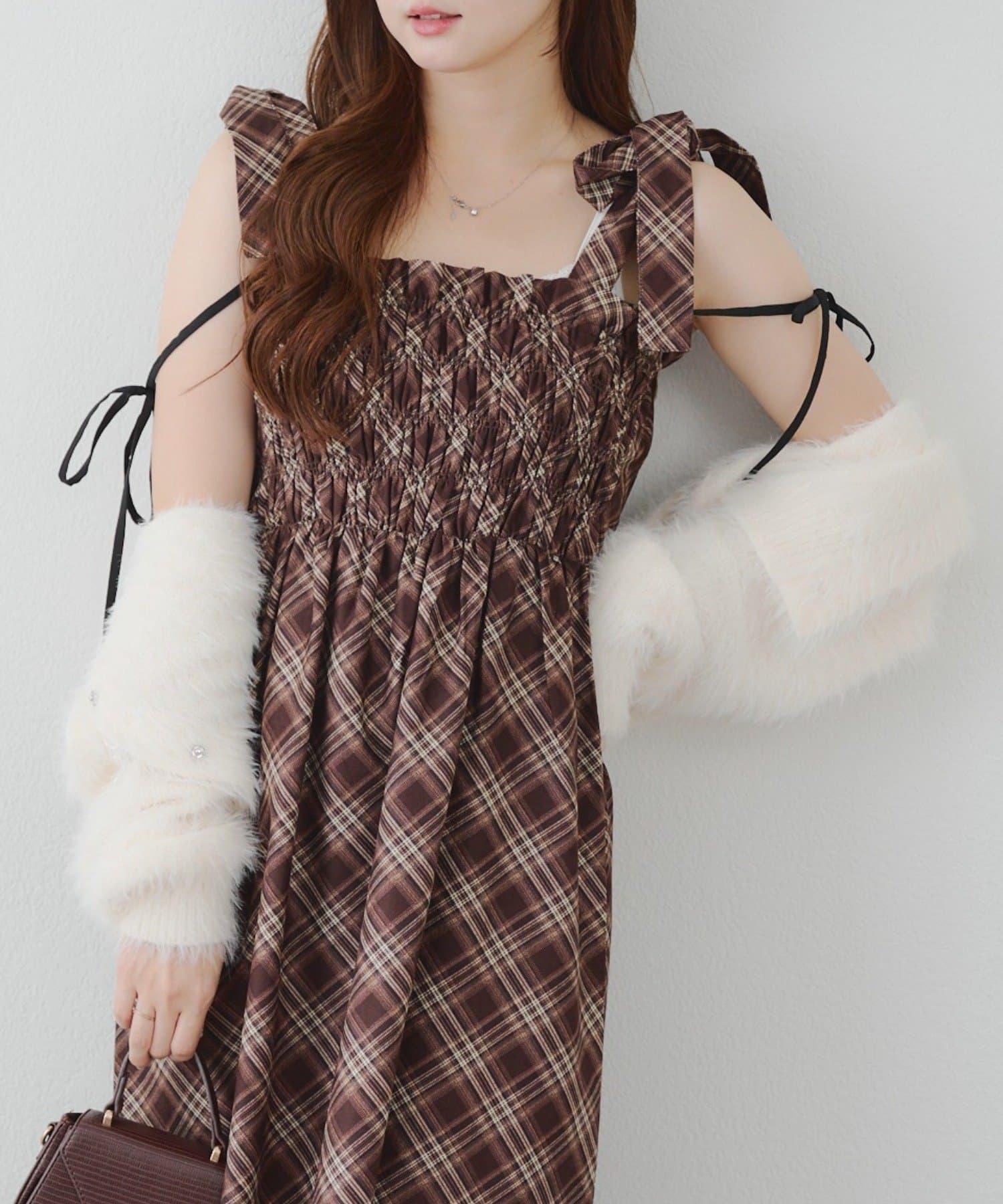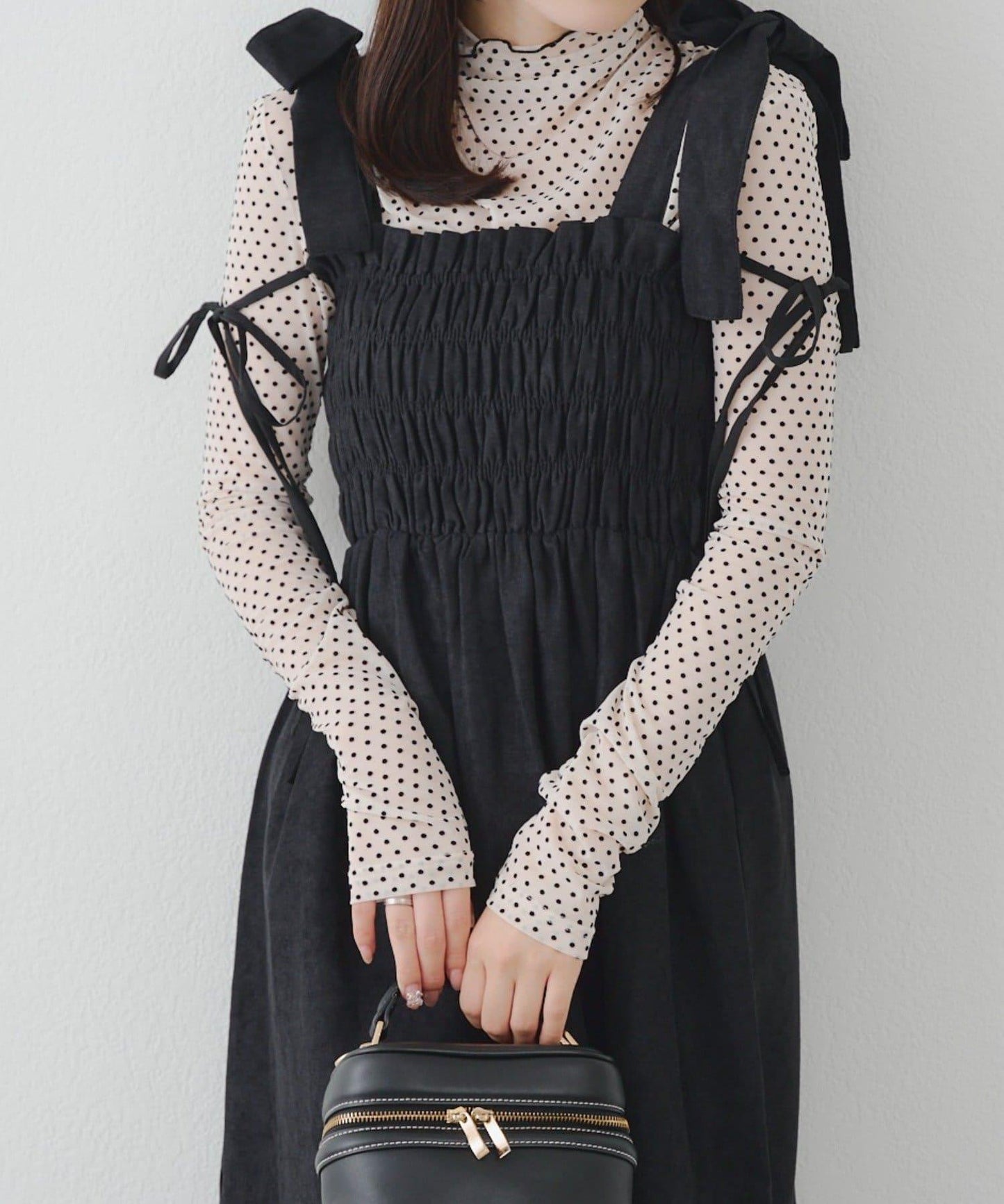 預約商品肩帶蝴蝶結褶皺連衣裙