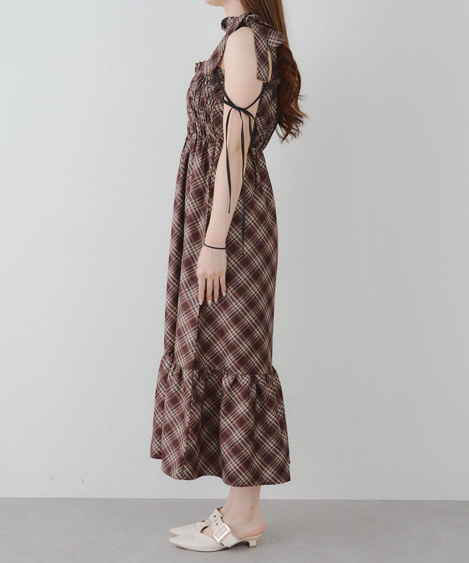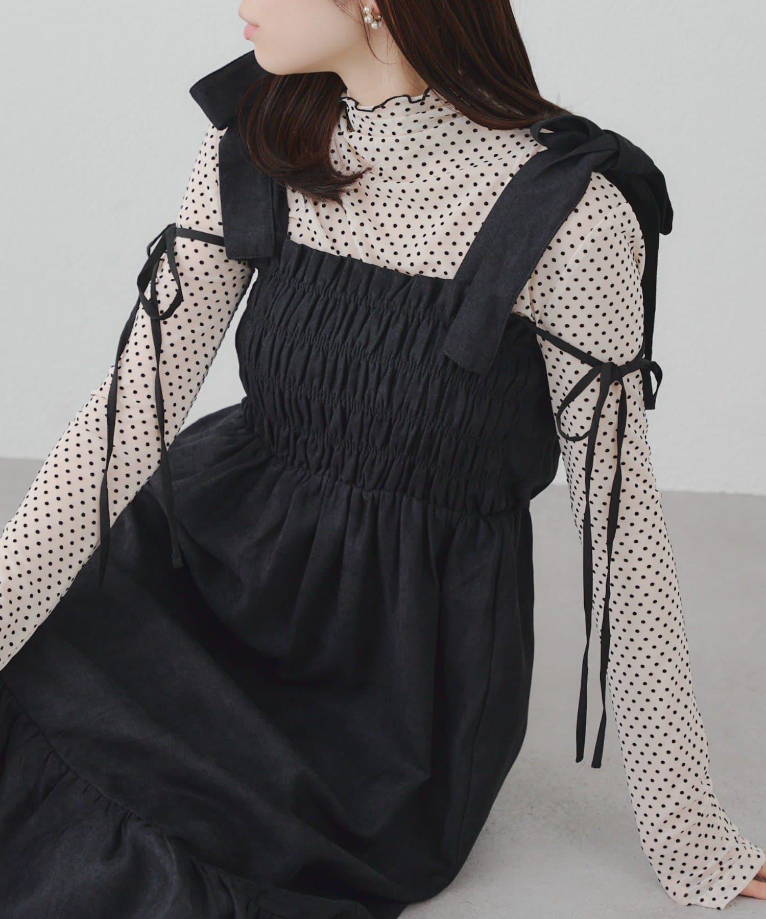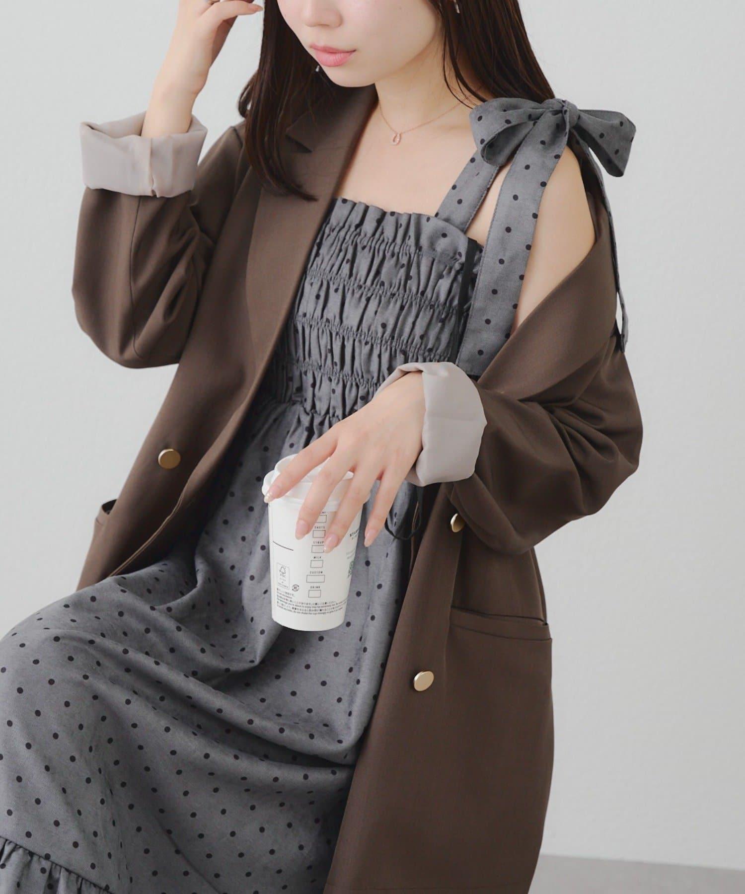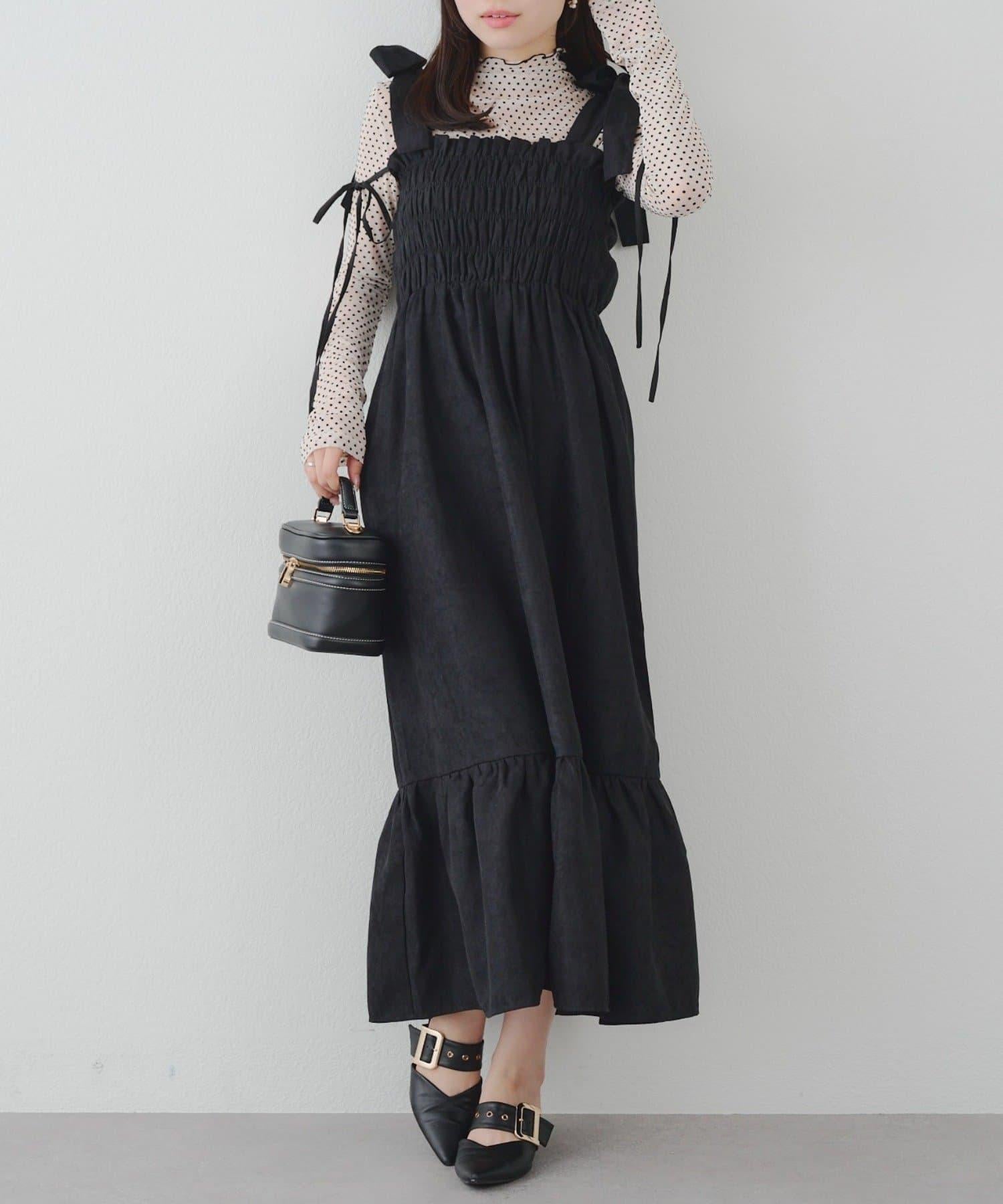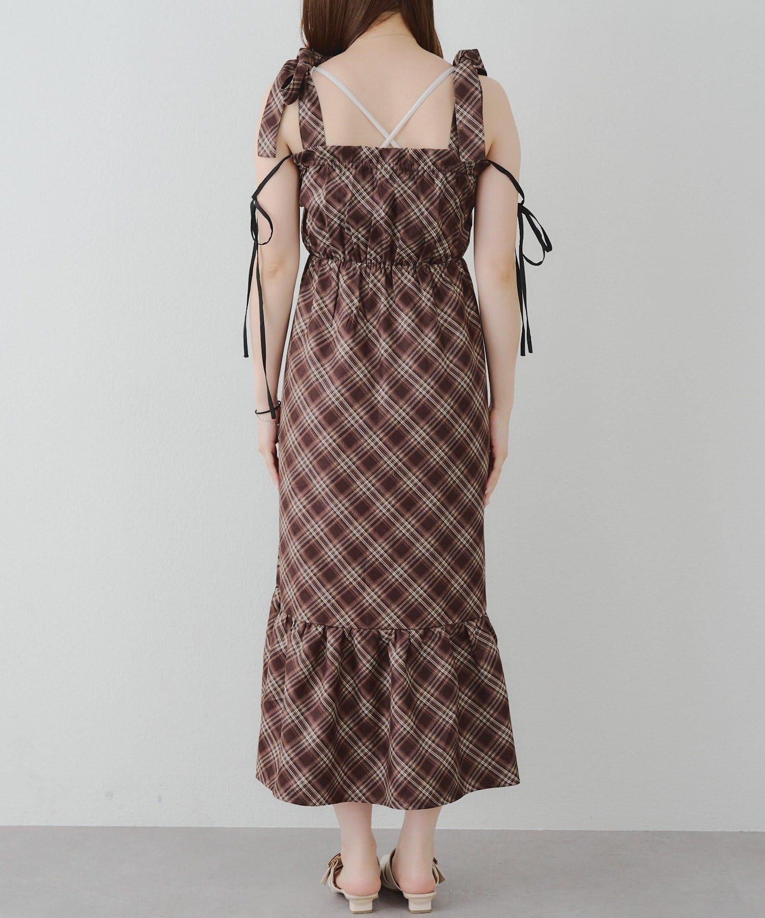 預約商品肩帶蝴蝶結褶皺連衣裙