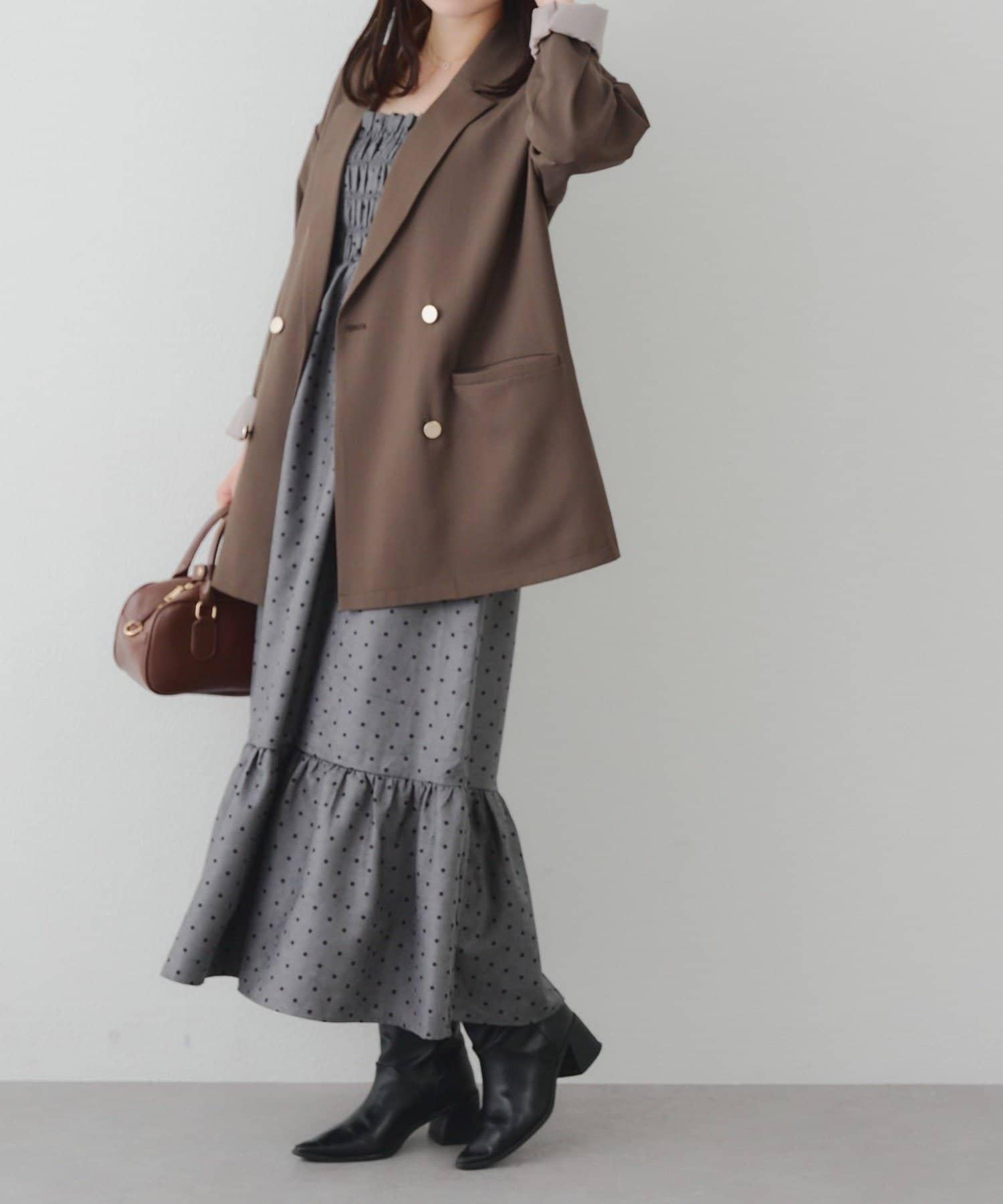 格紋、圓點圖案和素色組合營造出秋冬氛圍。