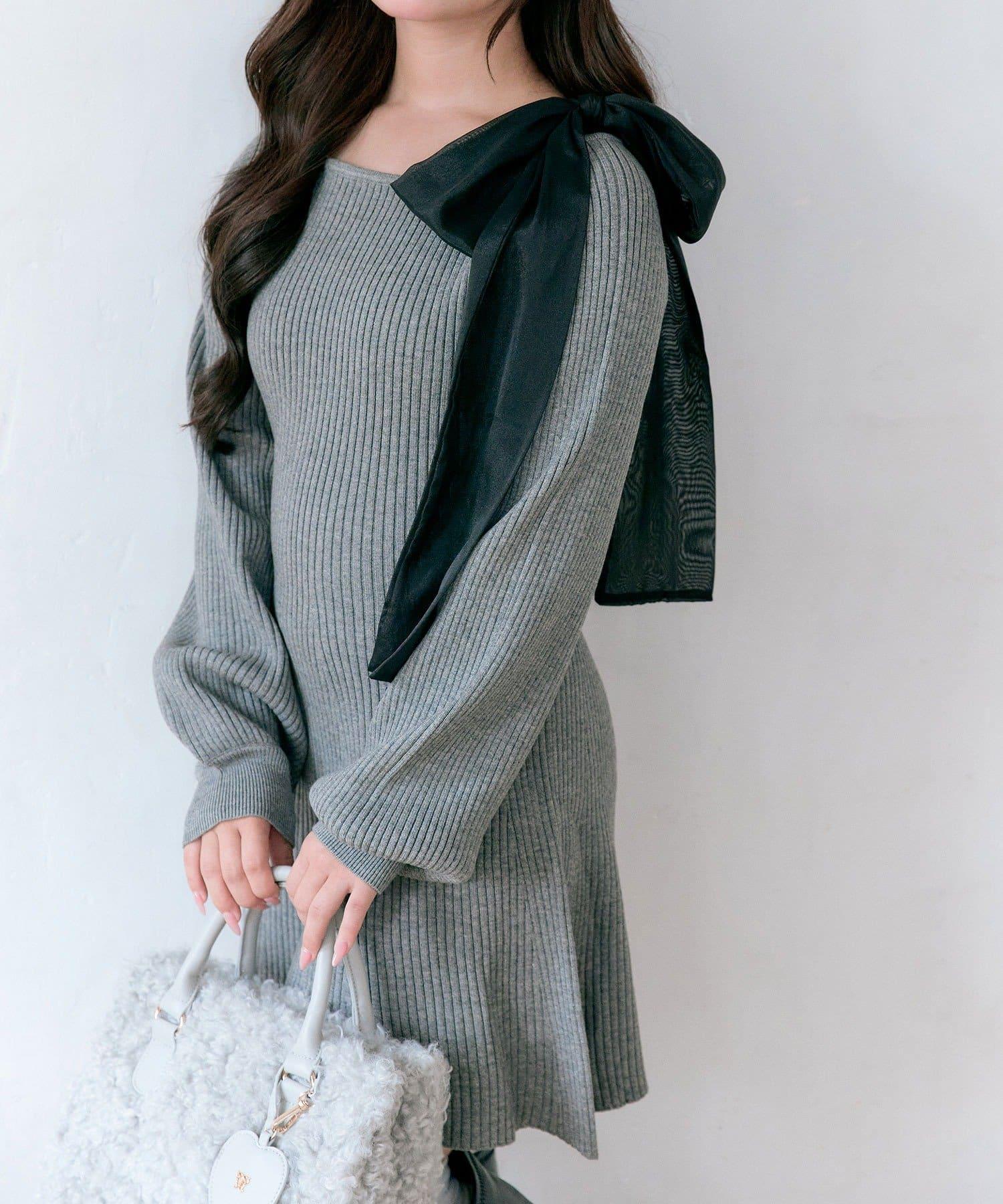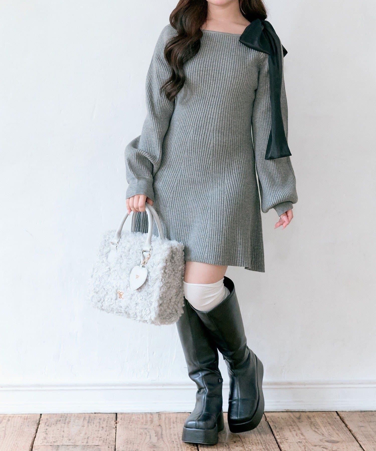 帥氣可愛的針織連身裙,肩部緞帶讓人心動不已。