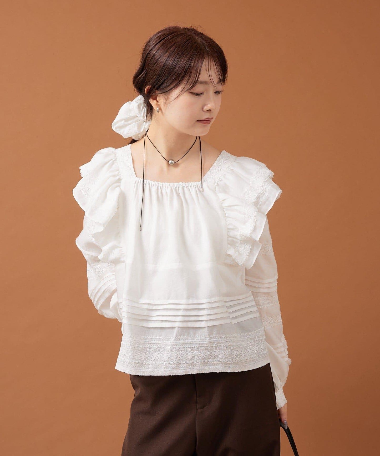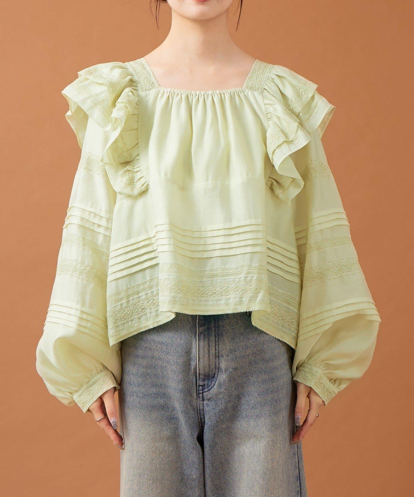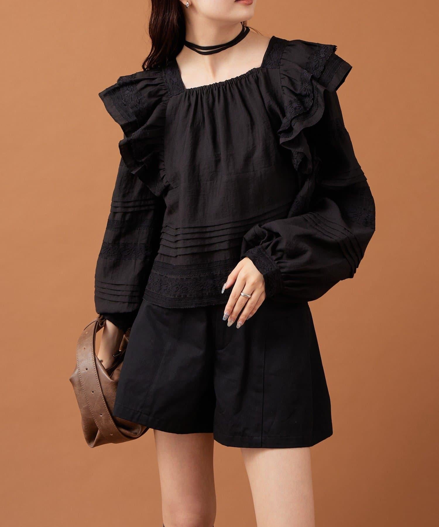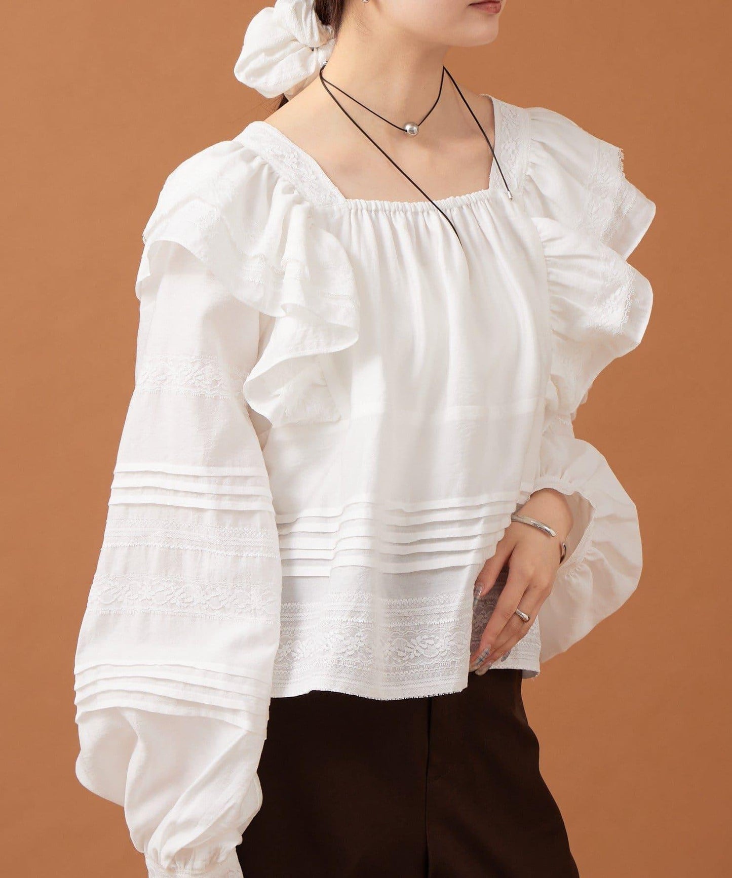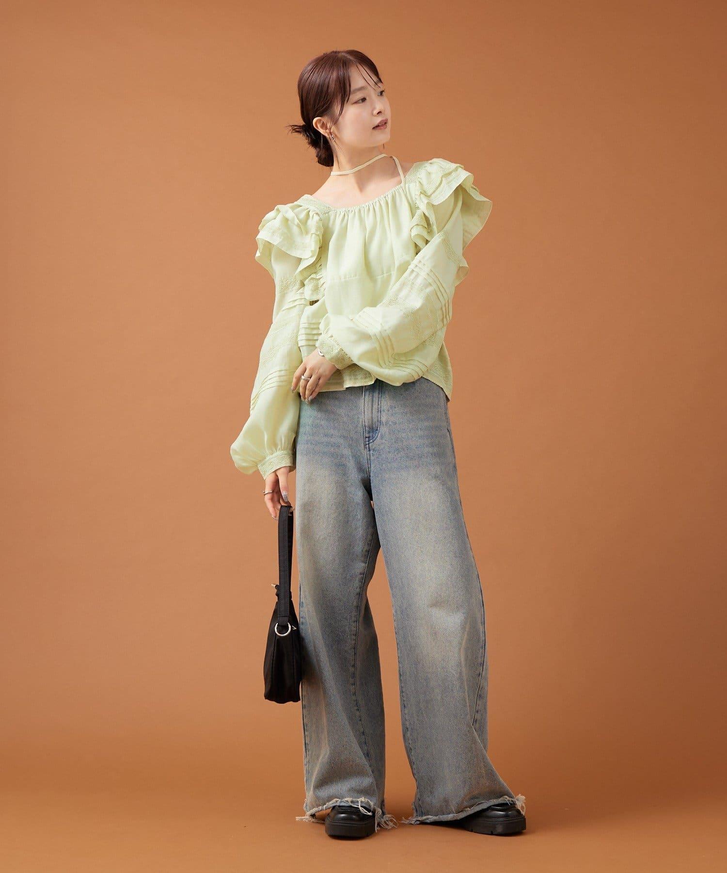 肩膀荷葉邊襯衫