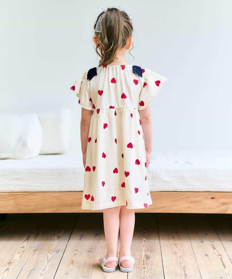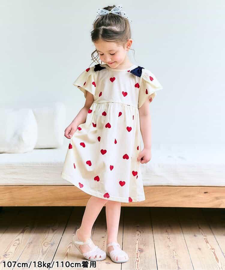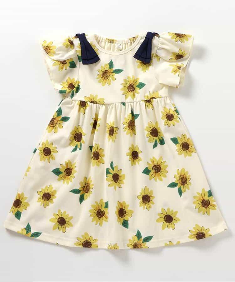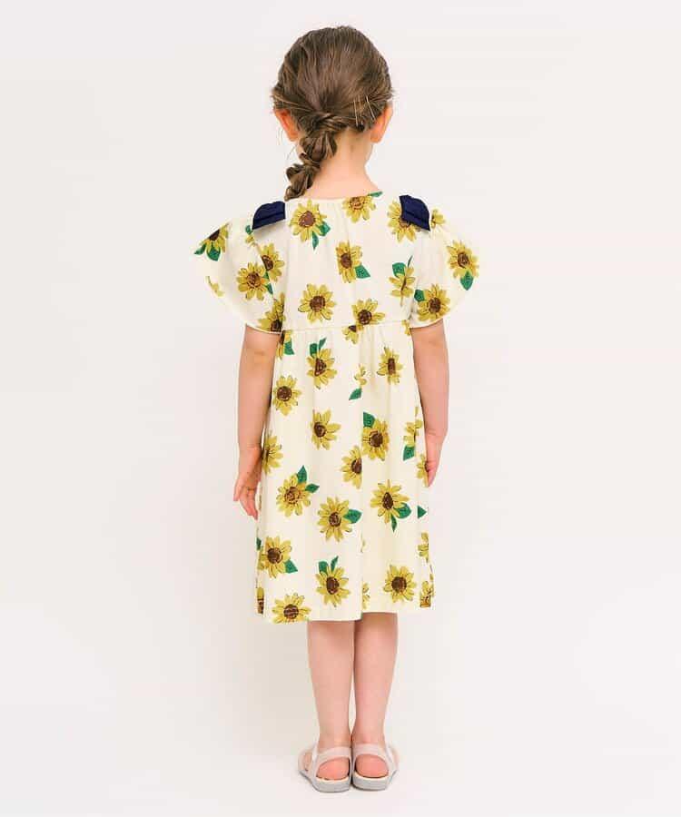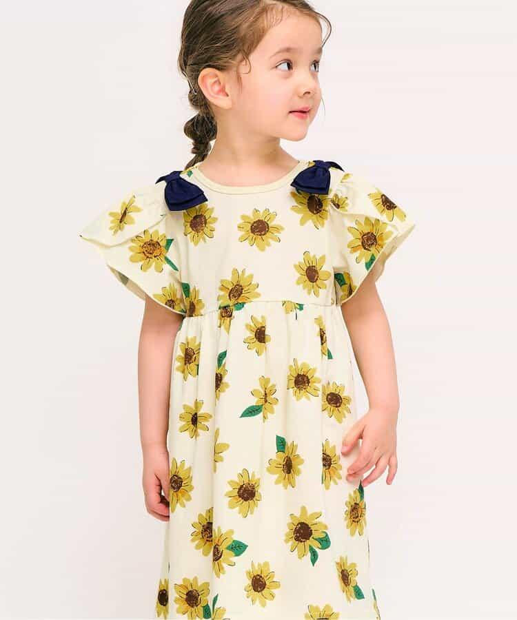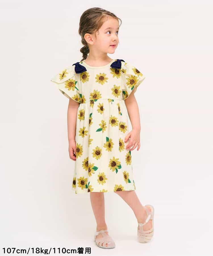 肩膀蝴蝶結花瓣袖女英雄連衣裙