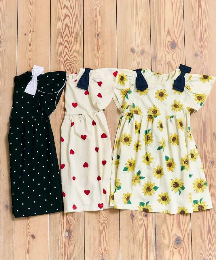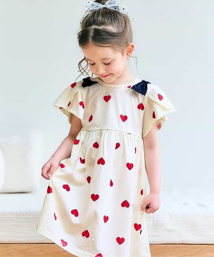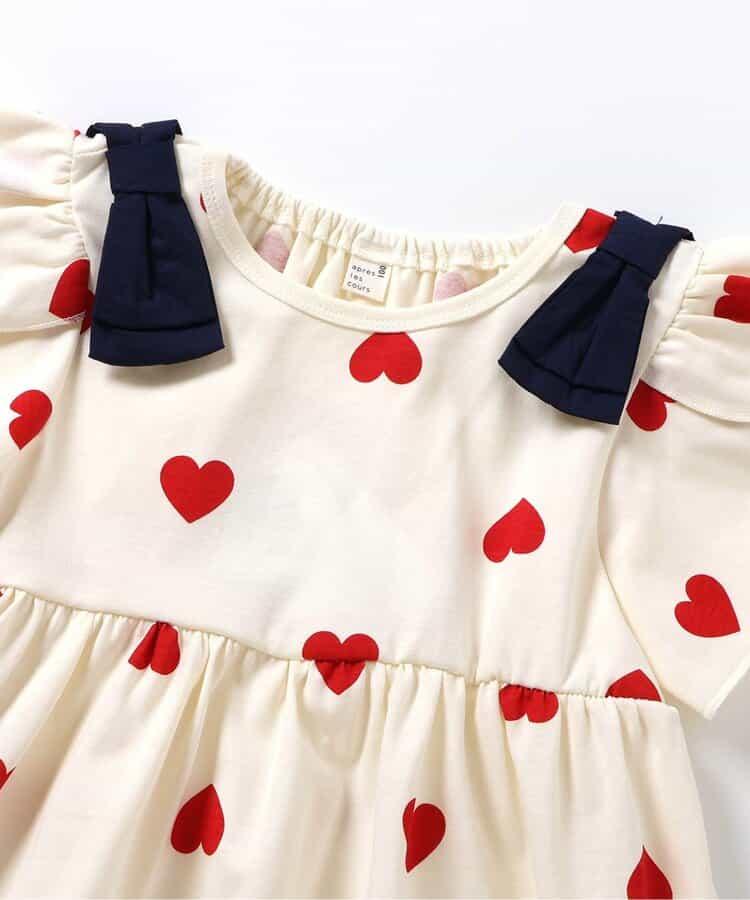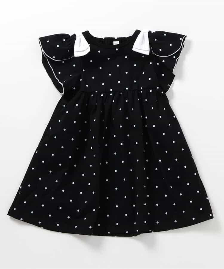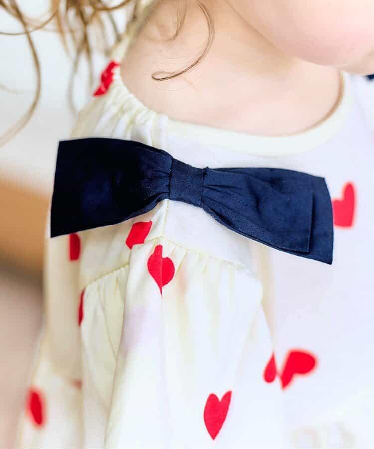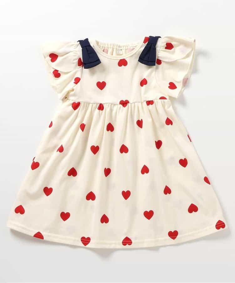 肩膀蝴蝶結花瓣袖女英雄連衣裙