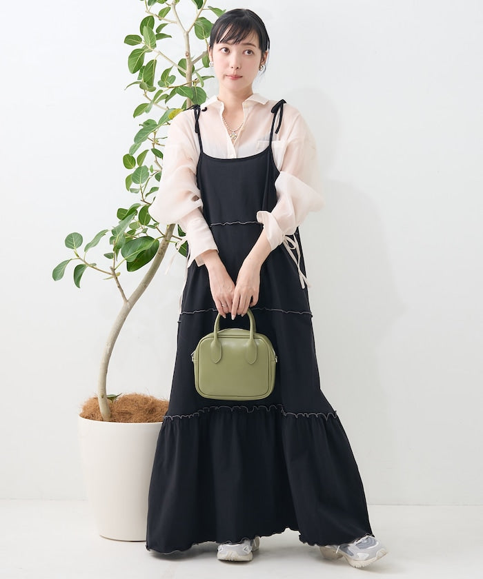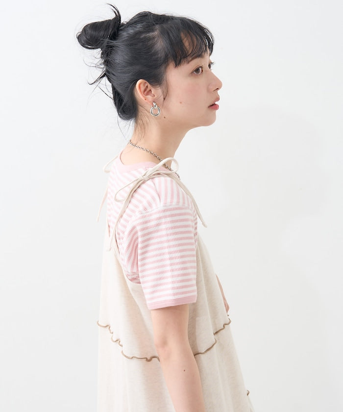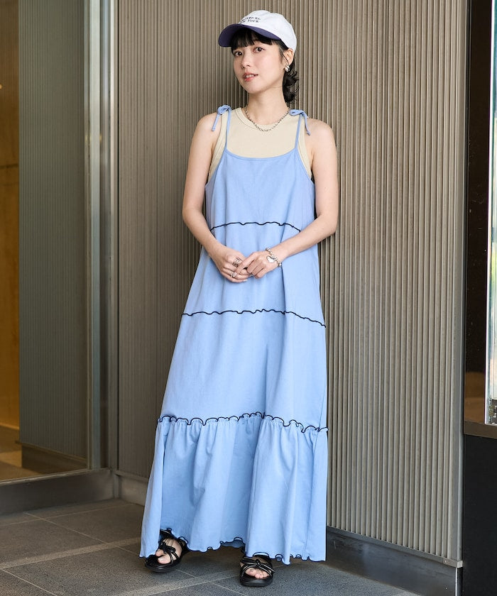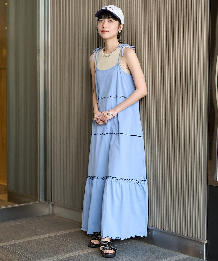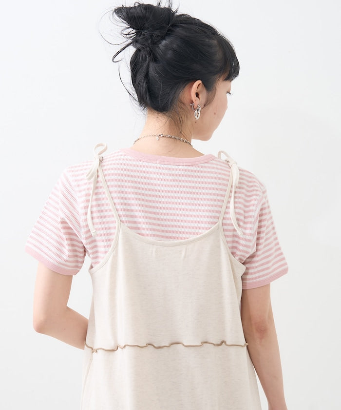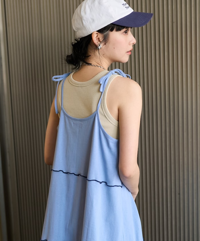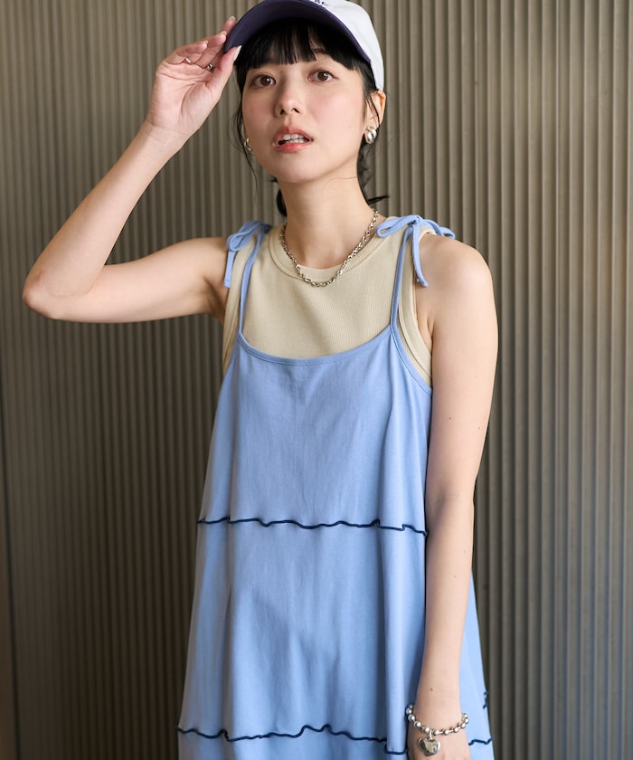 肩蝴蝶結 配色輕柔吊帶連衣裙