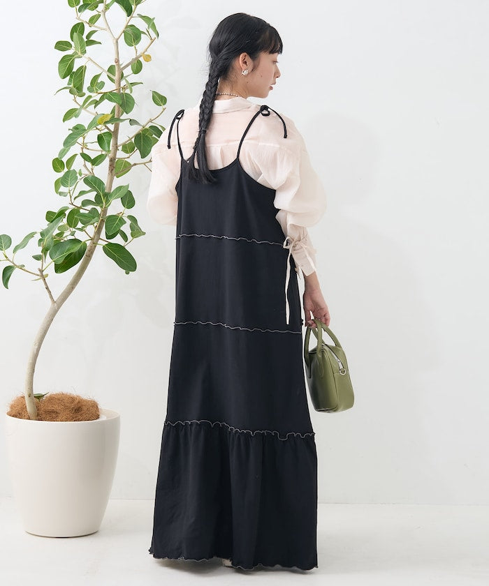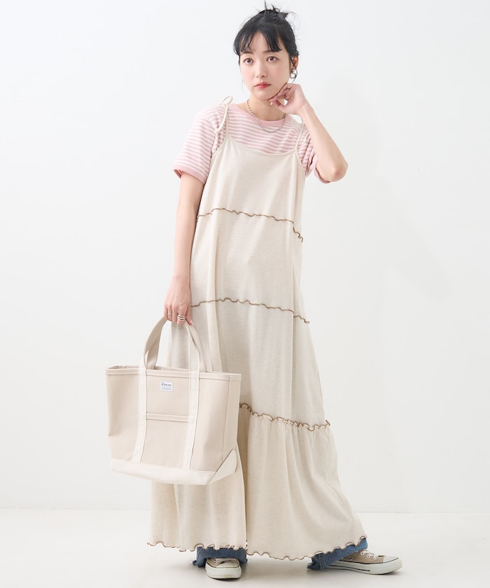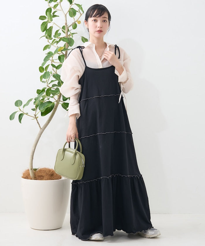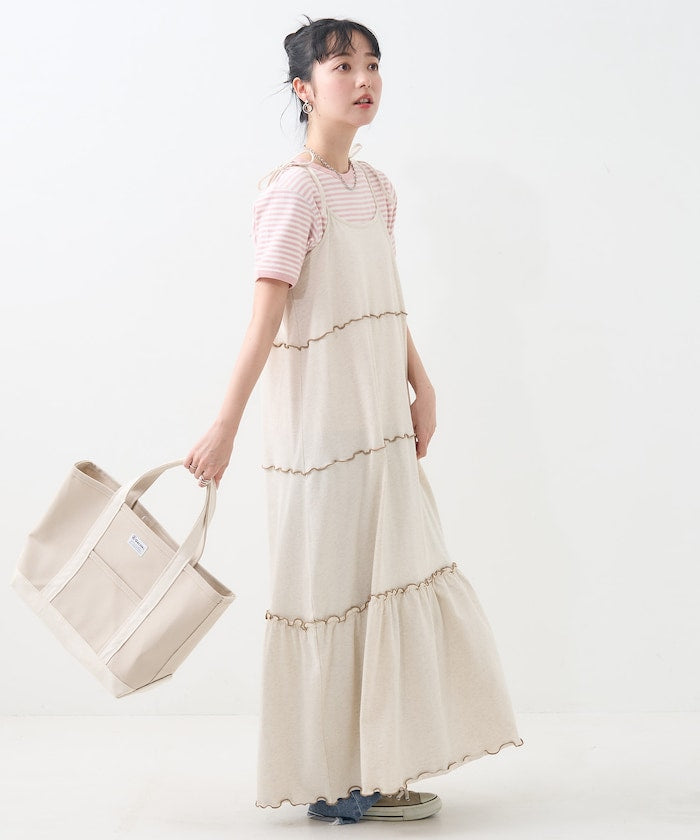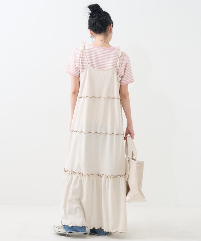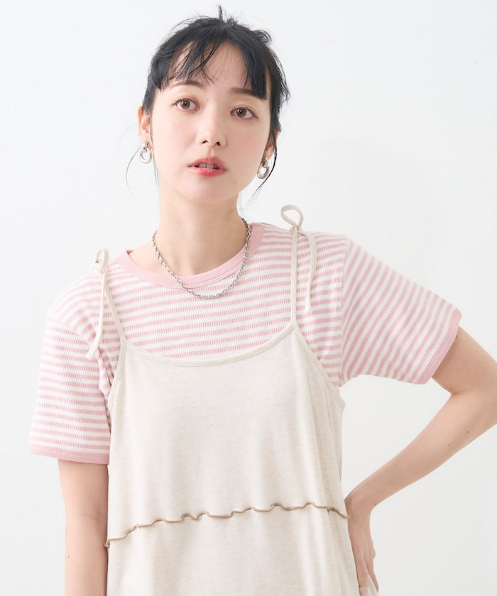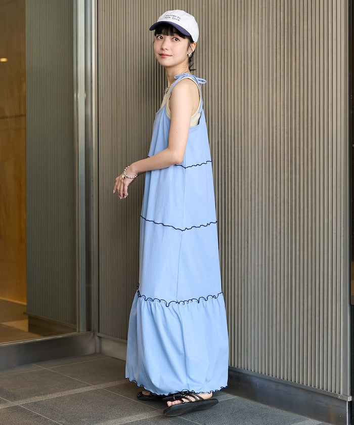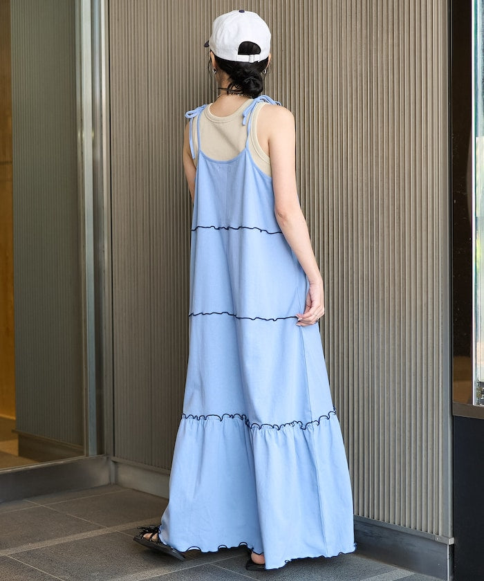 肩蝴蝶結 配色輕柔吊帶連衣裙