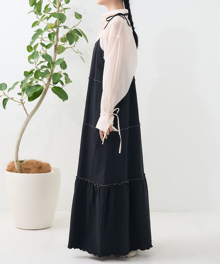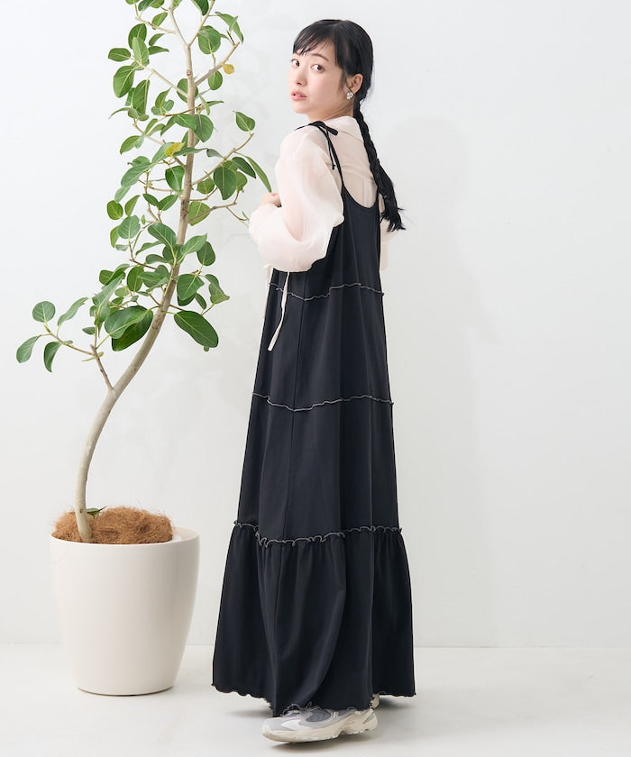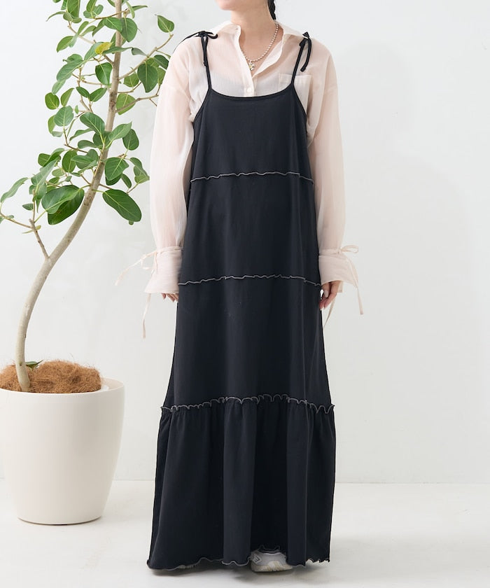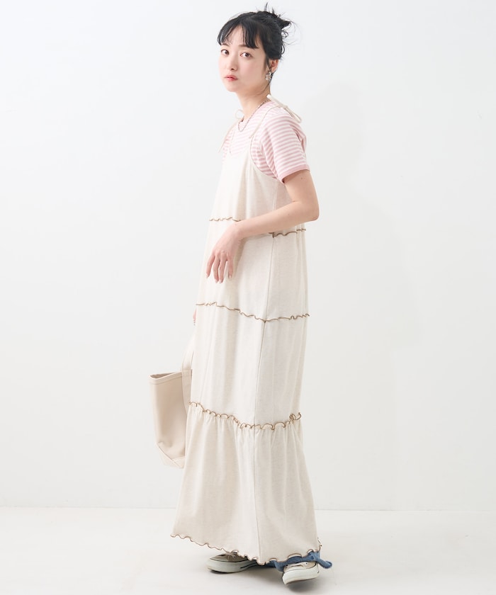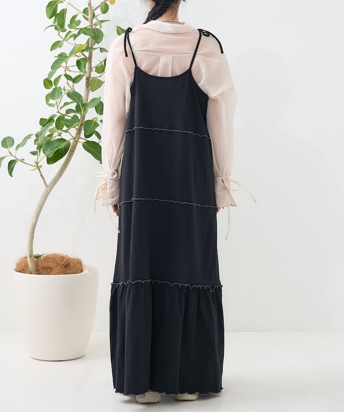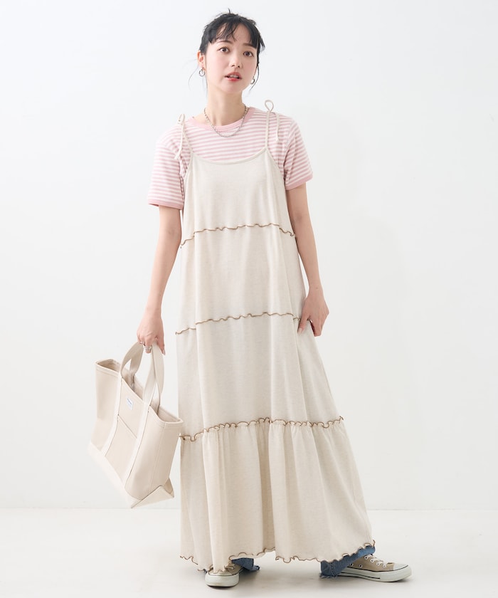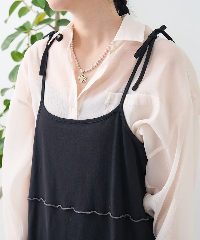 肩蝴蝶結 配色輕柔吊帶連衣裙